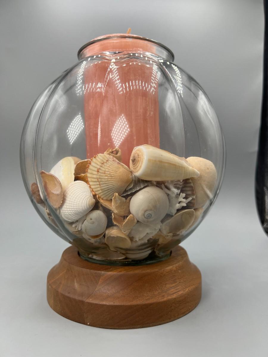 Nautical Seashell Beachwood Candle Glass Globe Modern Home Decor