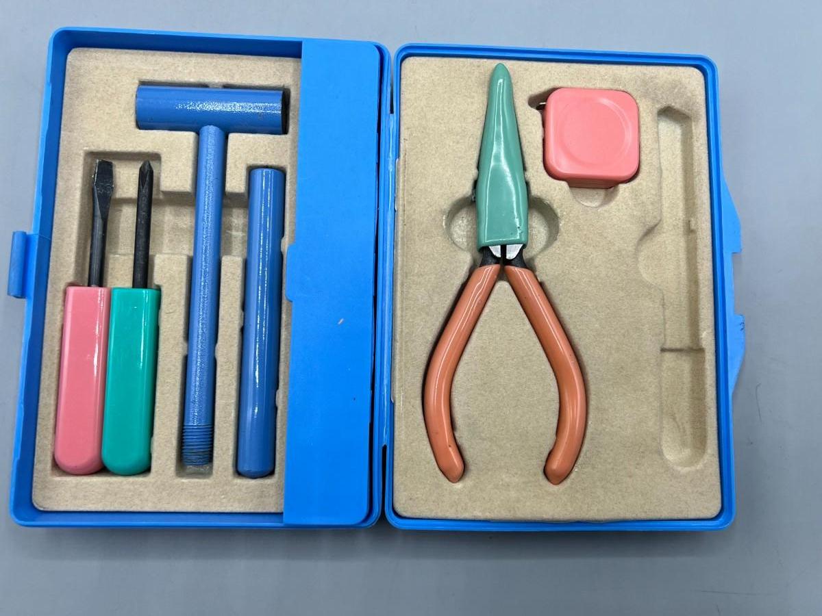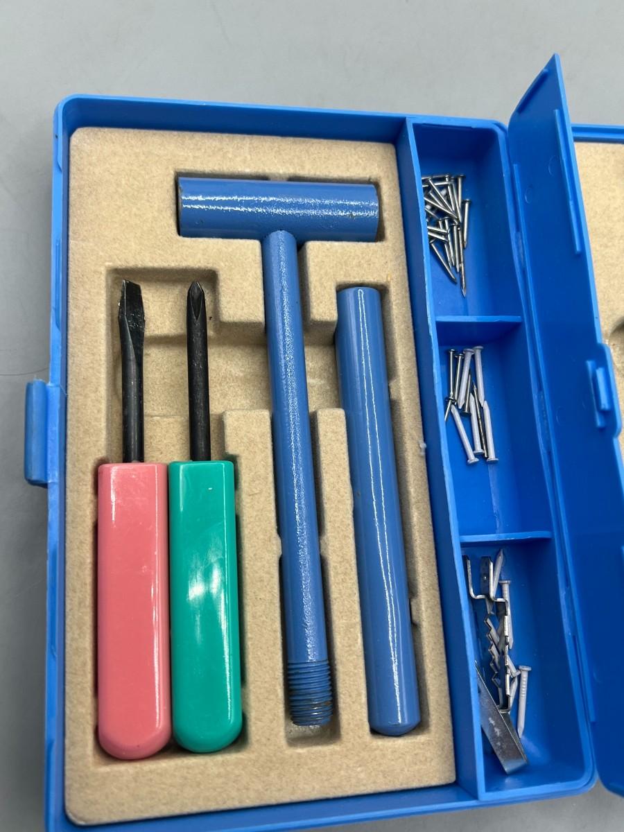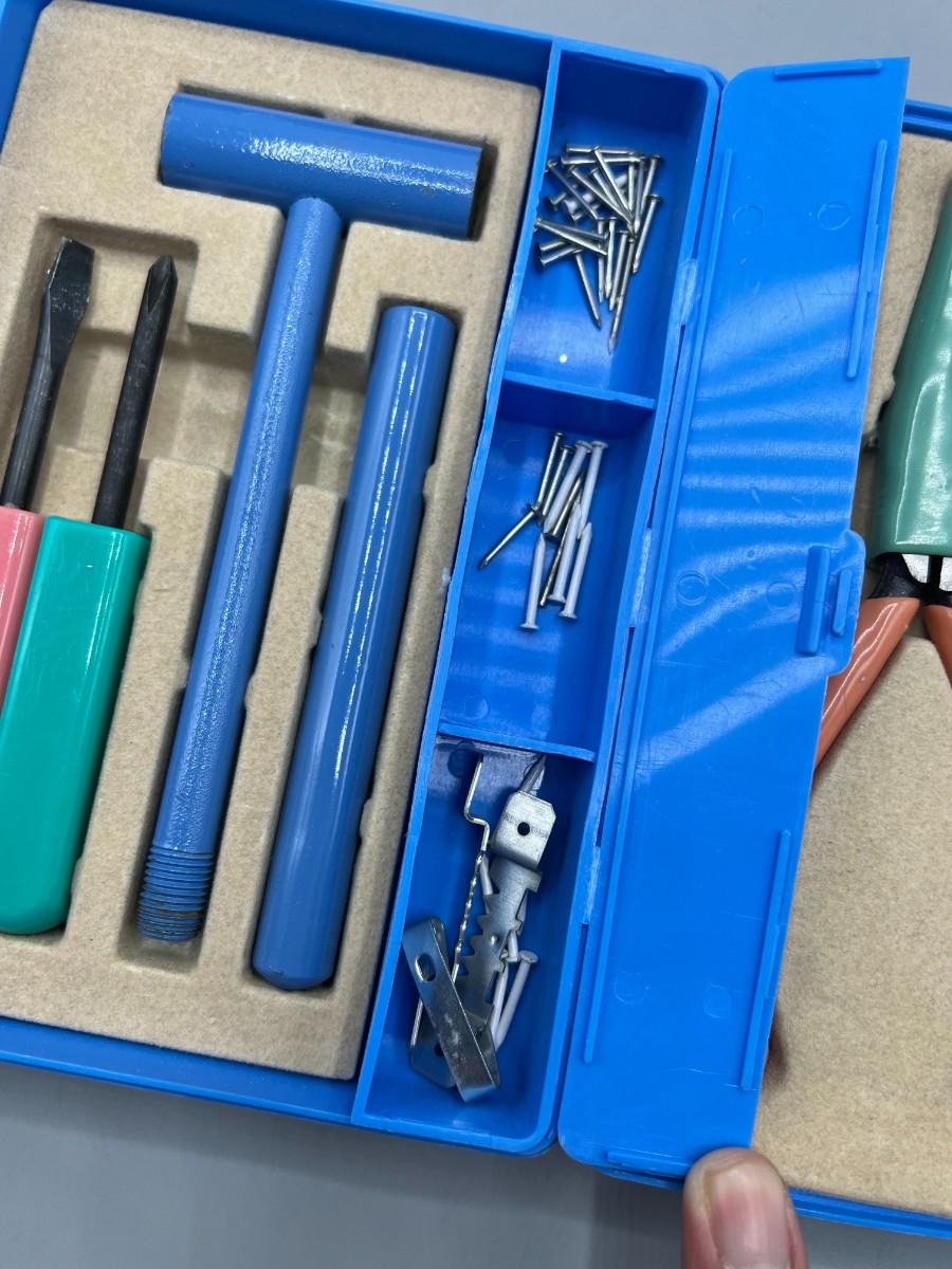 Pocket Size Tool Kit in Case with Small Hardware. Perfect for simple tasks. Does seem to be missing one item, unsure of what it may have been.