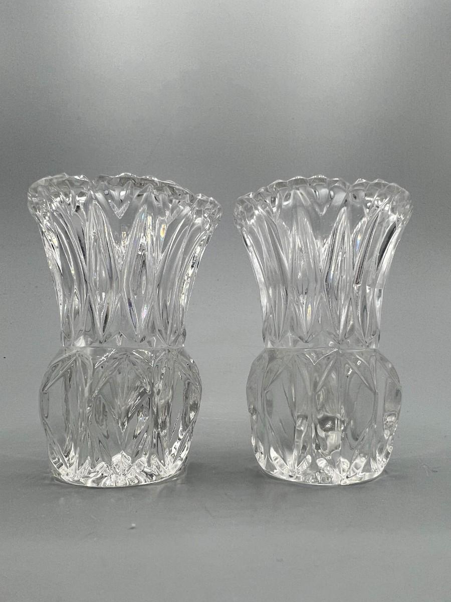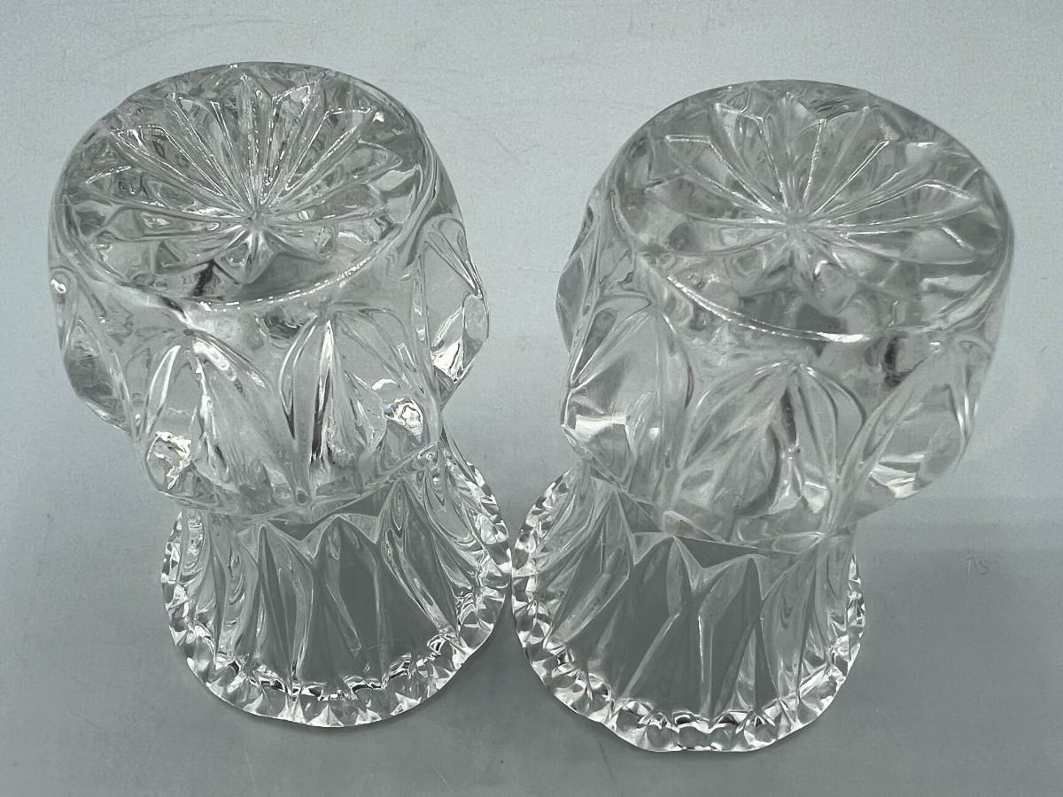 Pair of Vintage Crystal Glass Sawtooth Edged Toothpick Holders