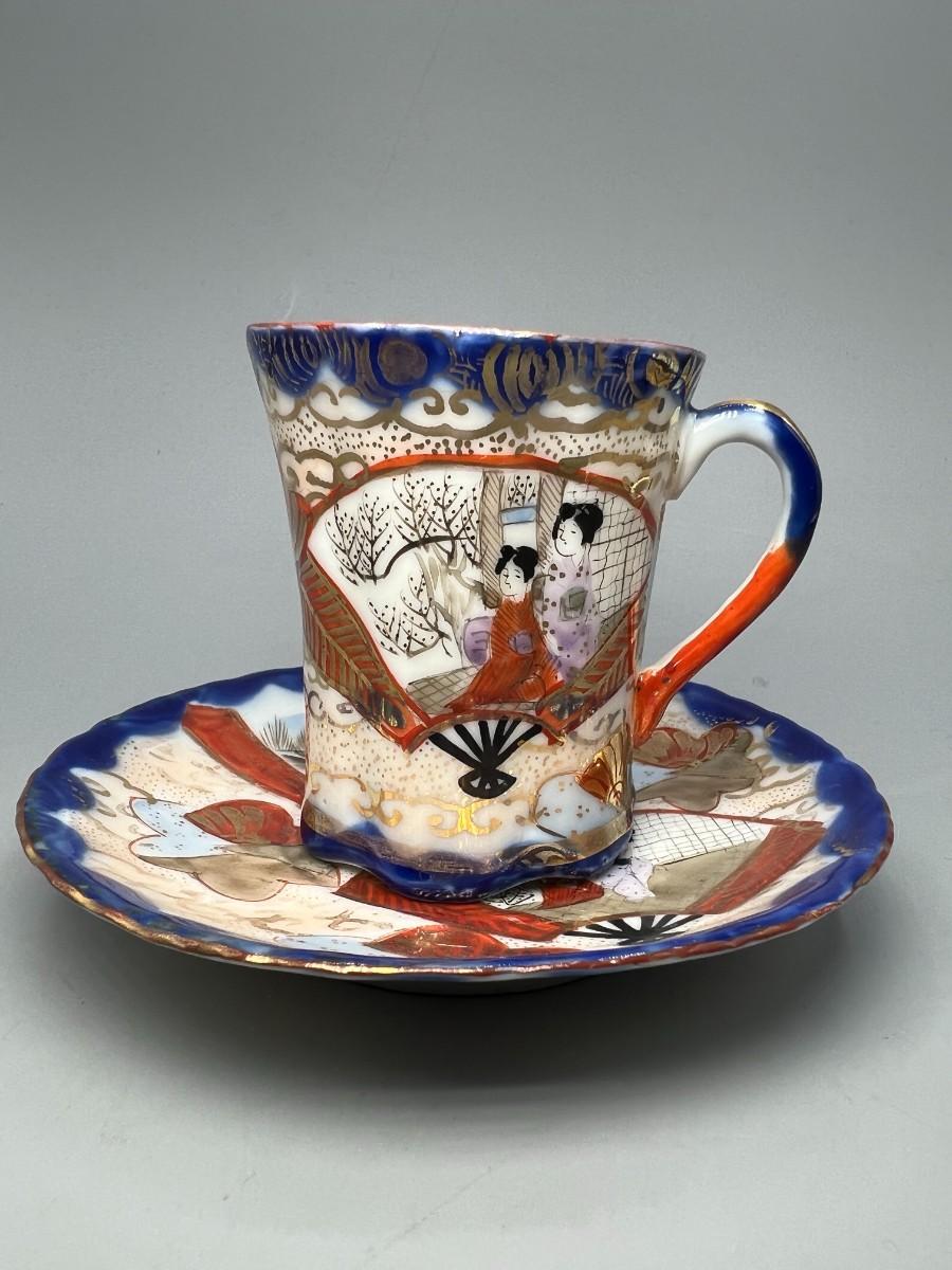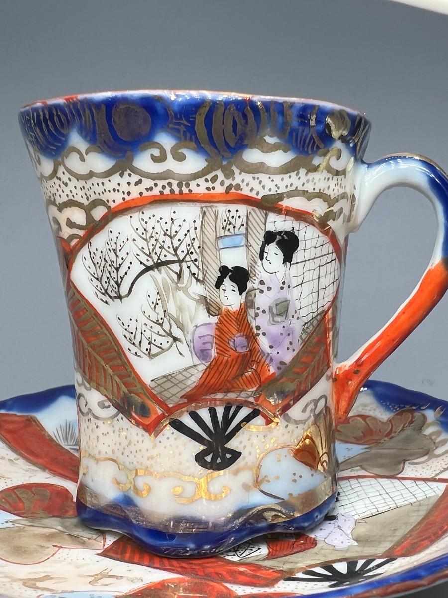 Vintage Japanese Porcelain Ornate Geisha Scenes Teacup & Saucer