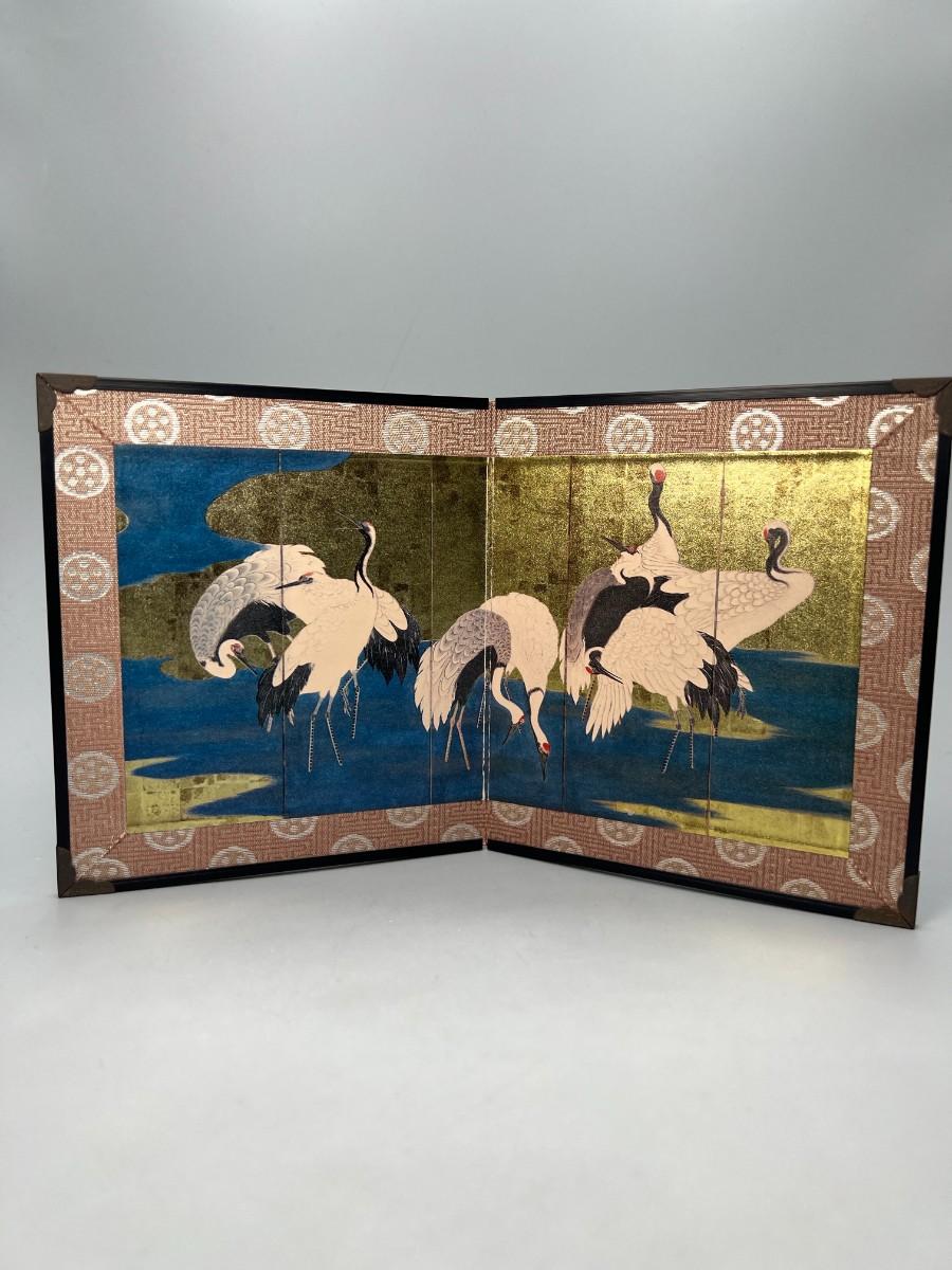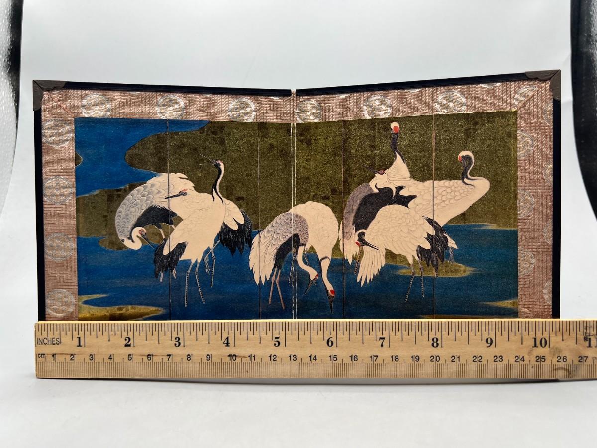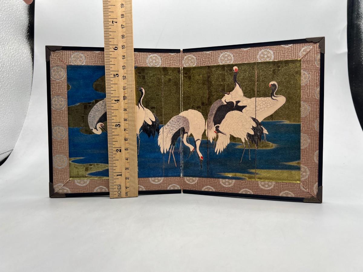 Vintage Japanese Crane 2 Panel Table Decor Miniature Screen