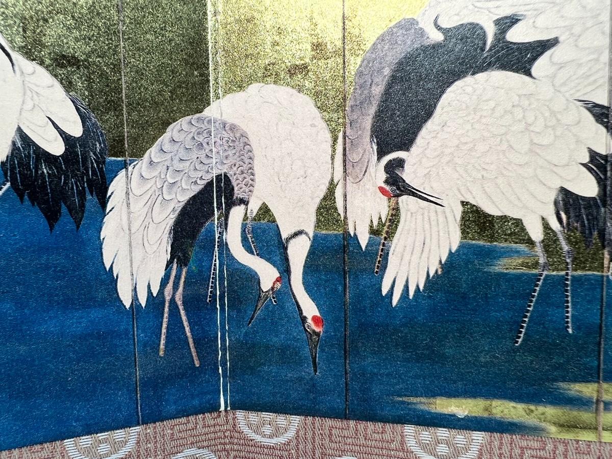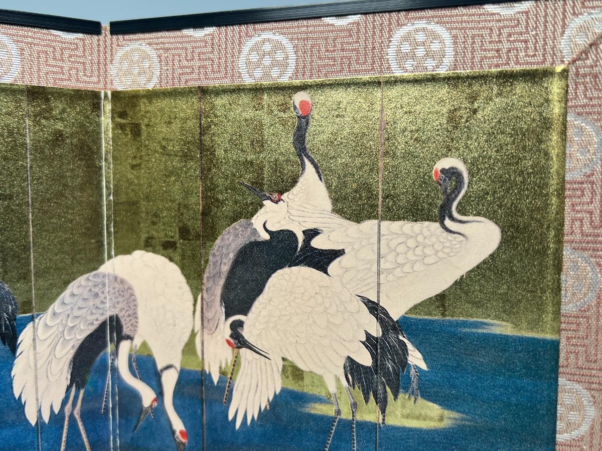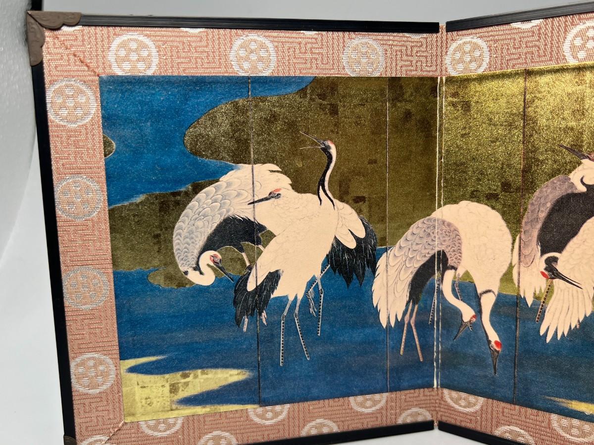 Vintage Japanese Crane 2 Panel Table Decor Miniature Screen