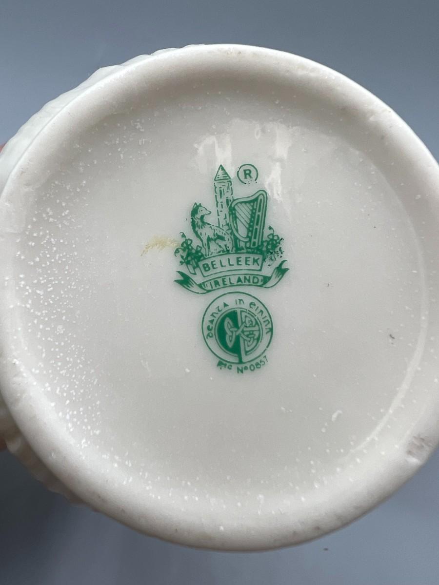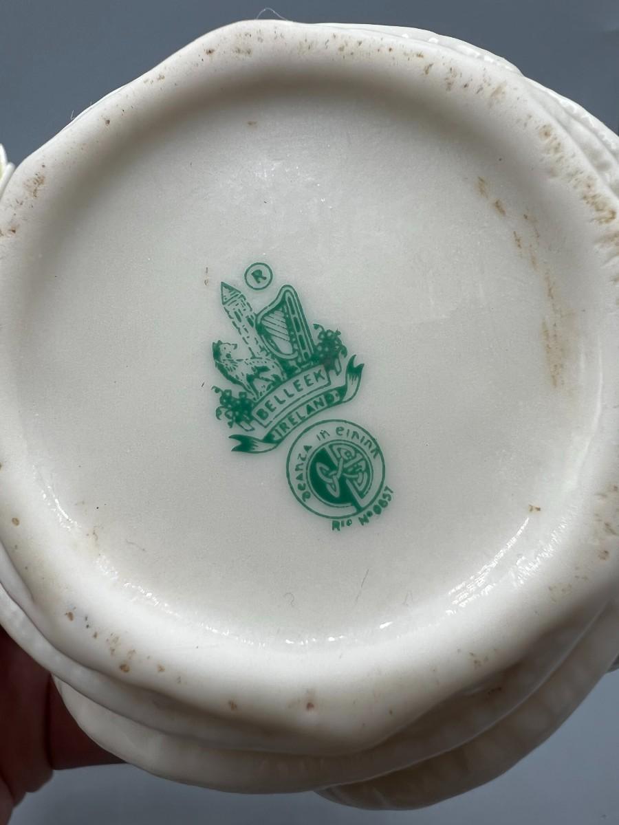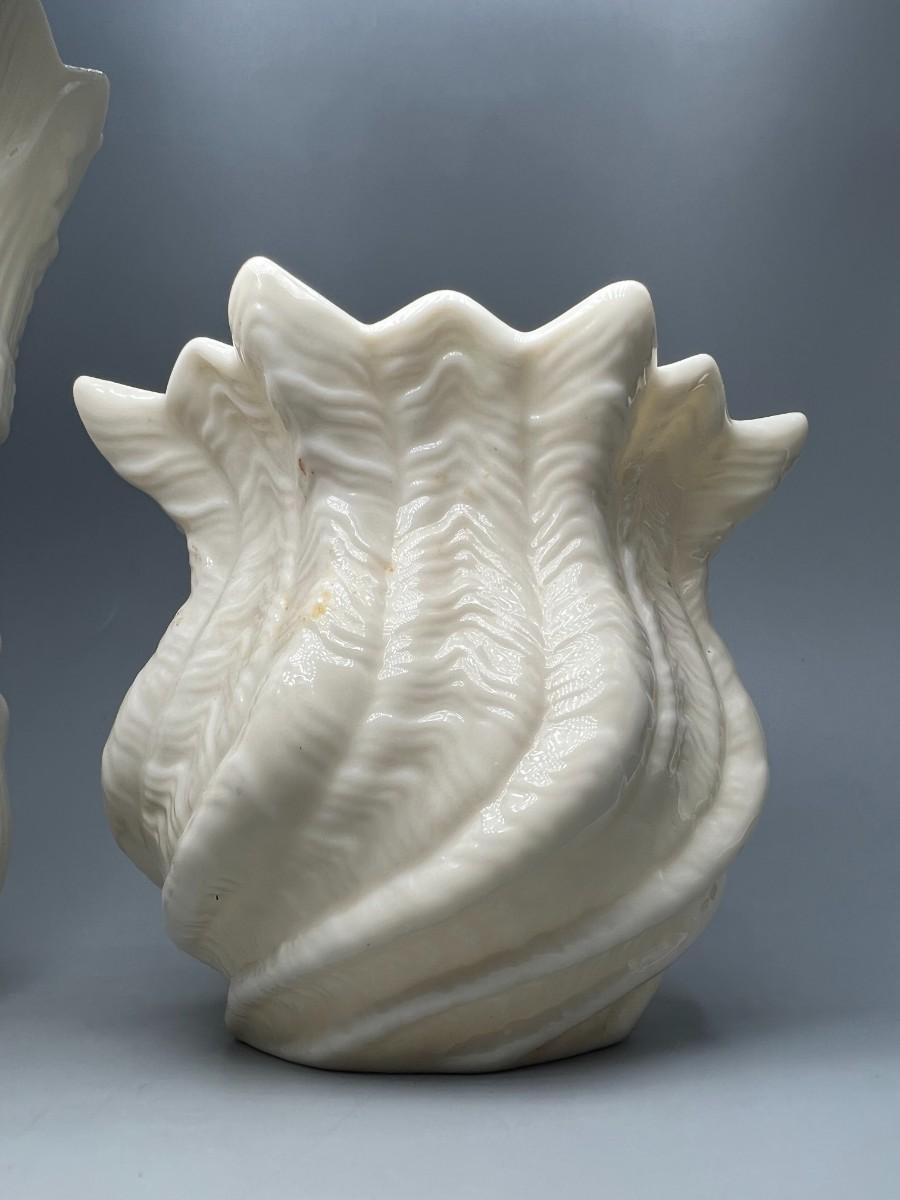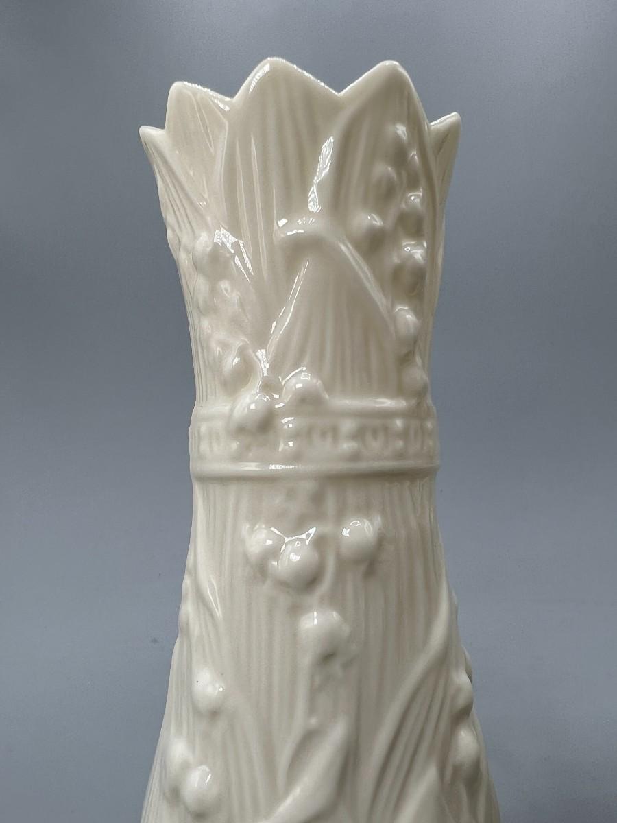 Vintage Irish Belleek Pottery Art Lily of the Valley Tall Vase & Classic Neptune Twisted Shell Flower Pot