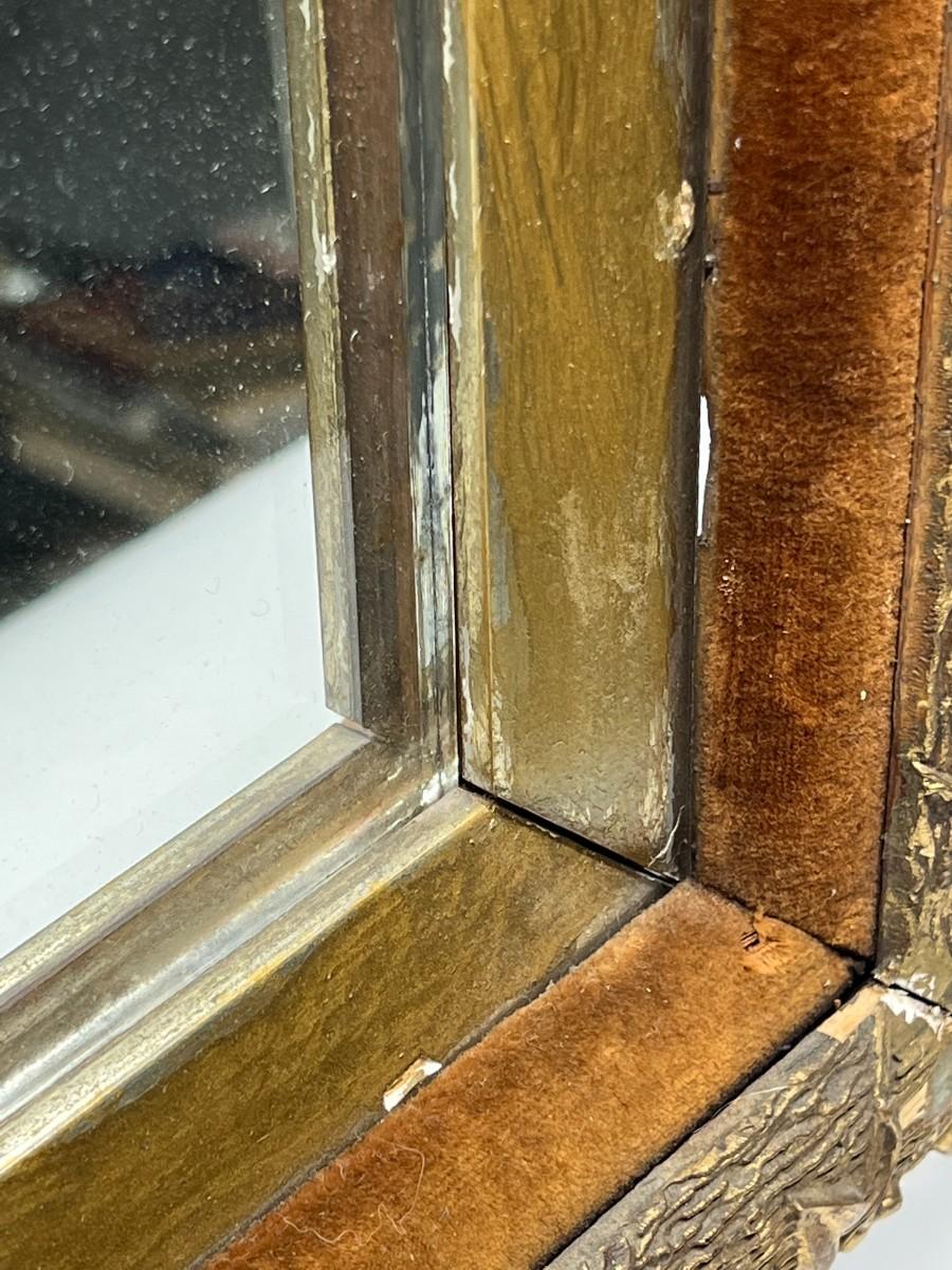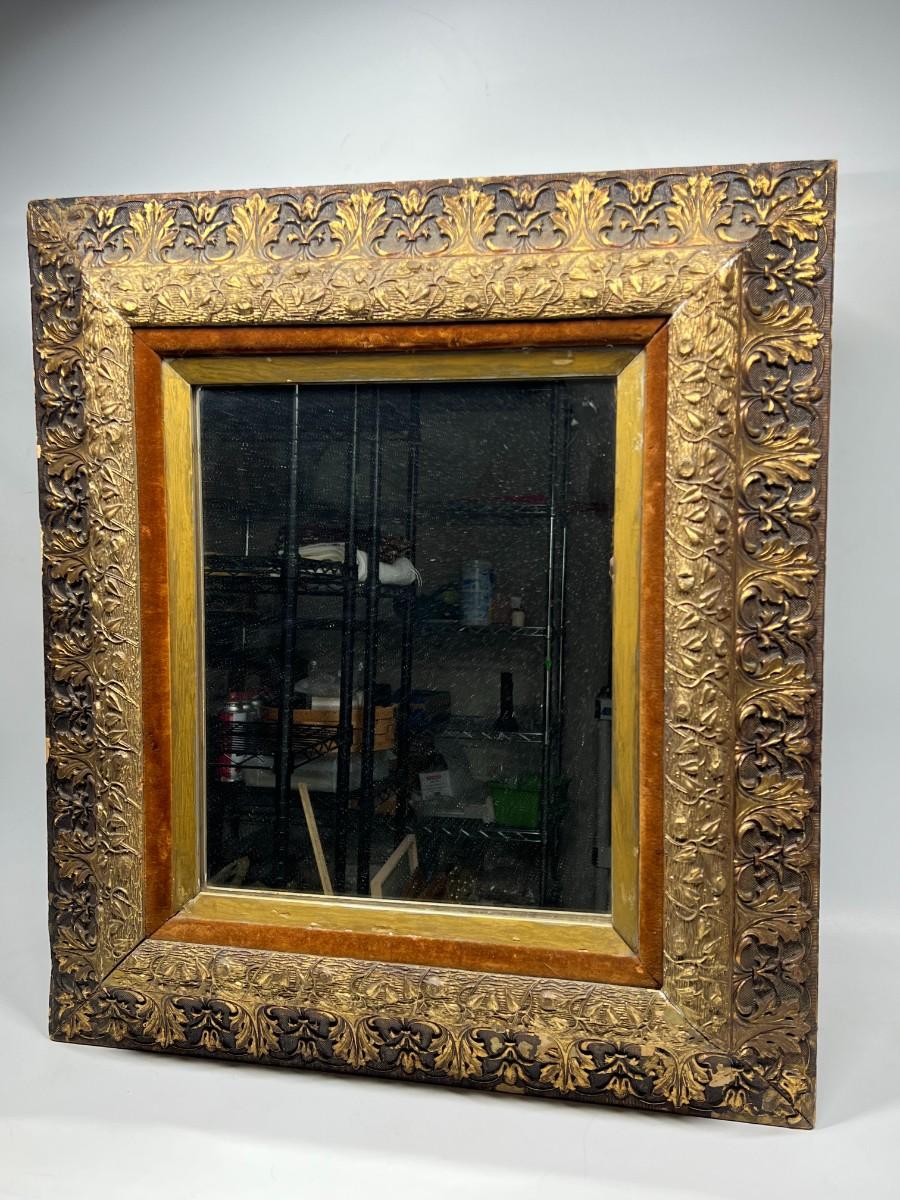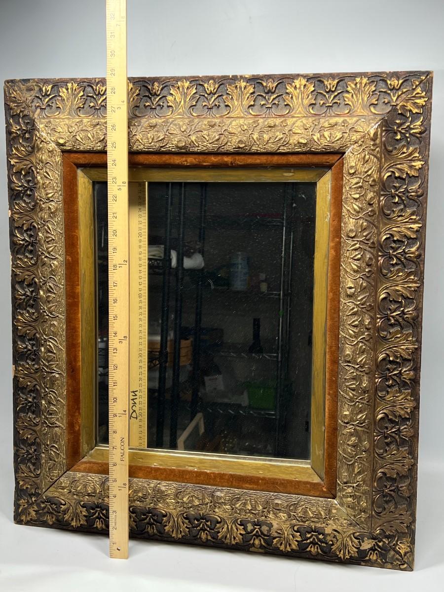 Large Vine and Scroll Pattern Wide Framed Hanging Wall Mirror. Good vintage condition. About 29"x26" size, Frame is 5" wide.