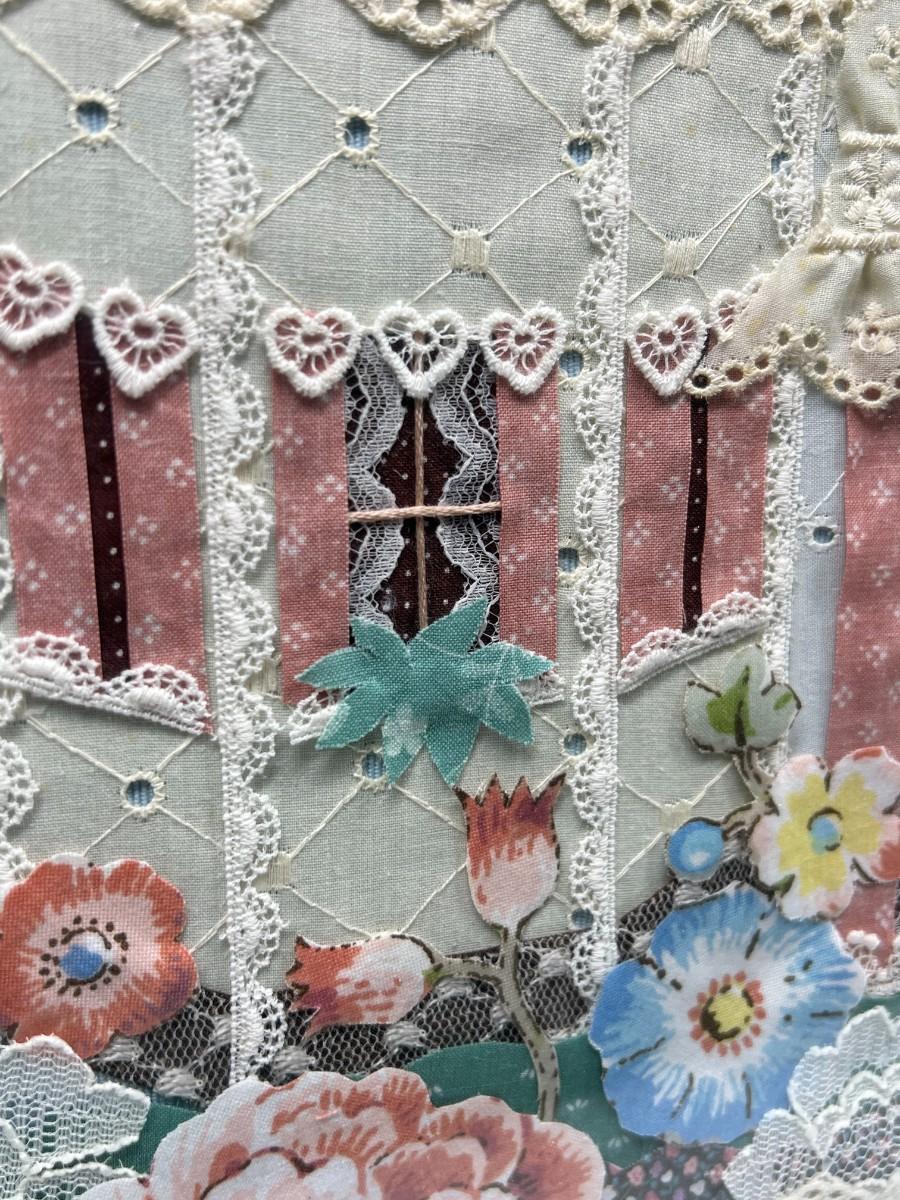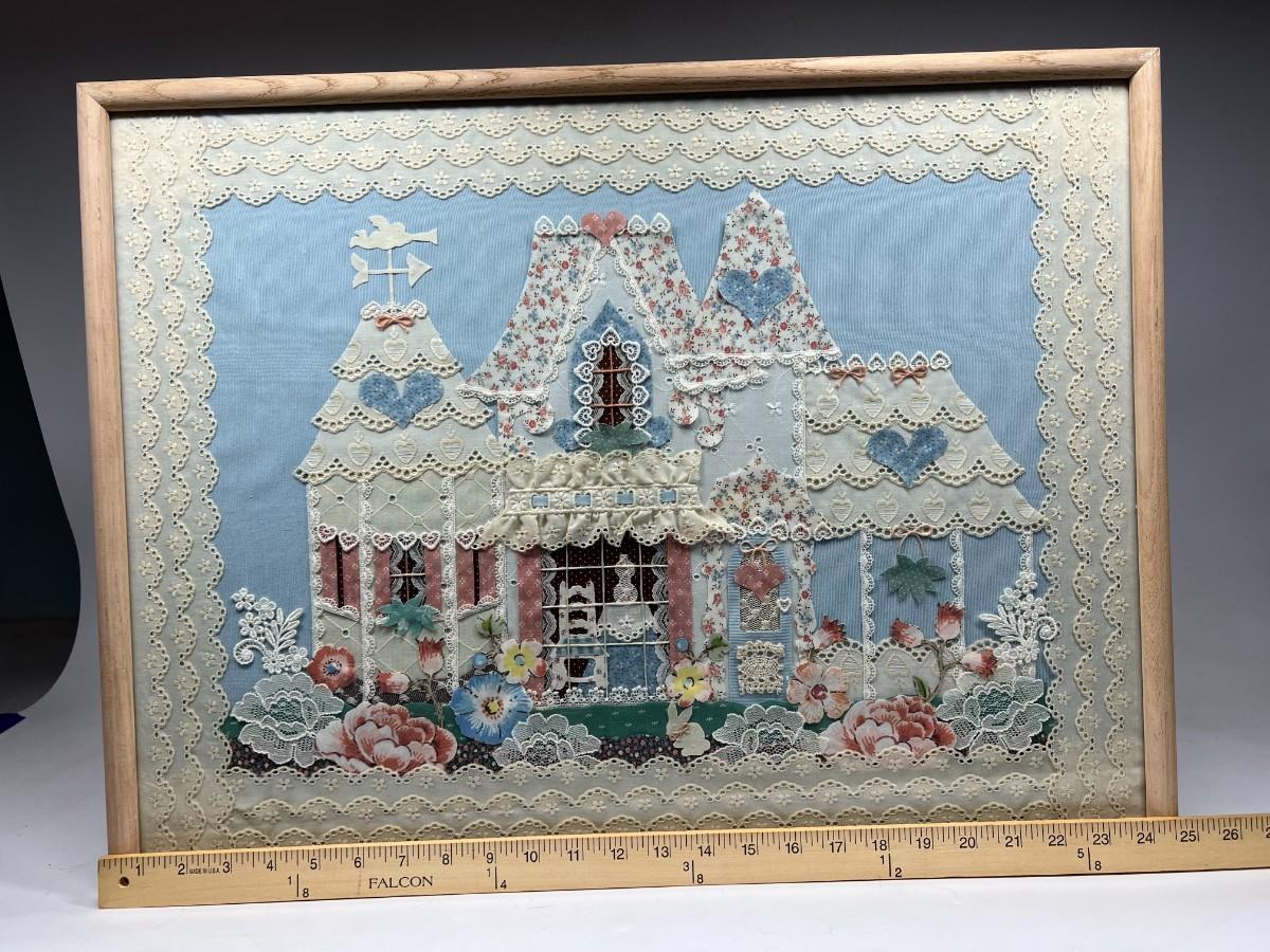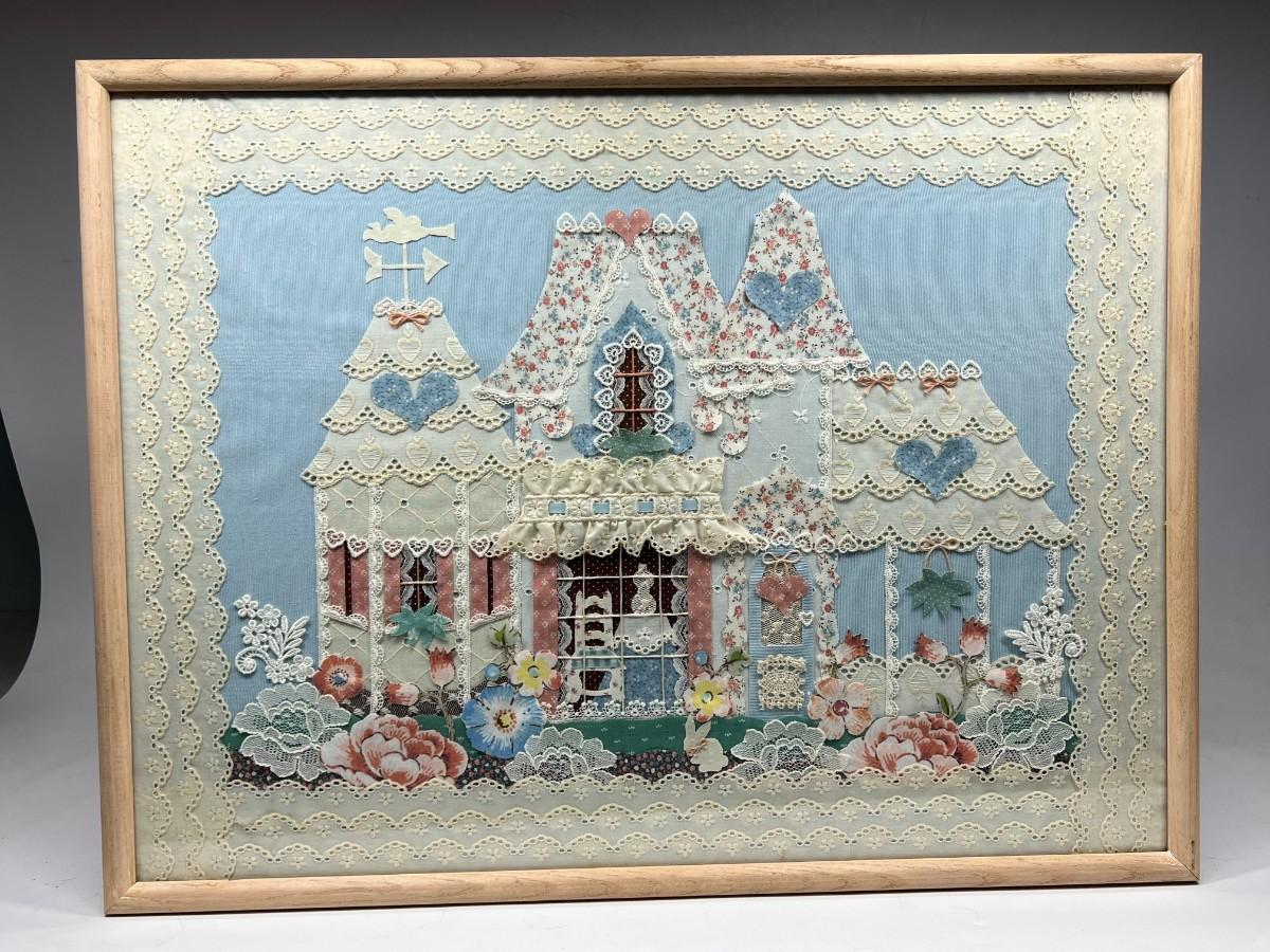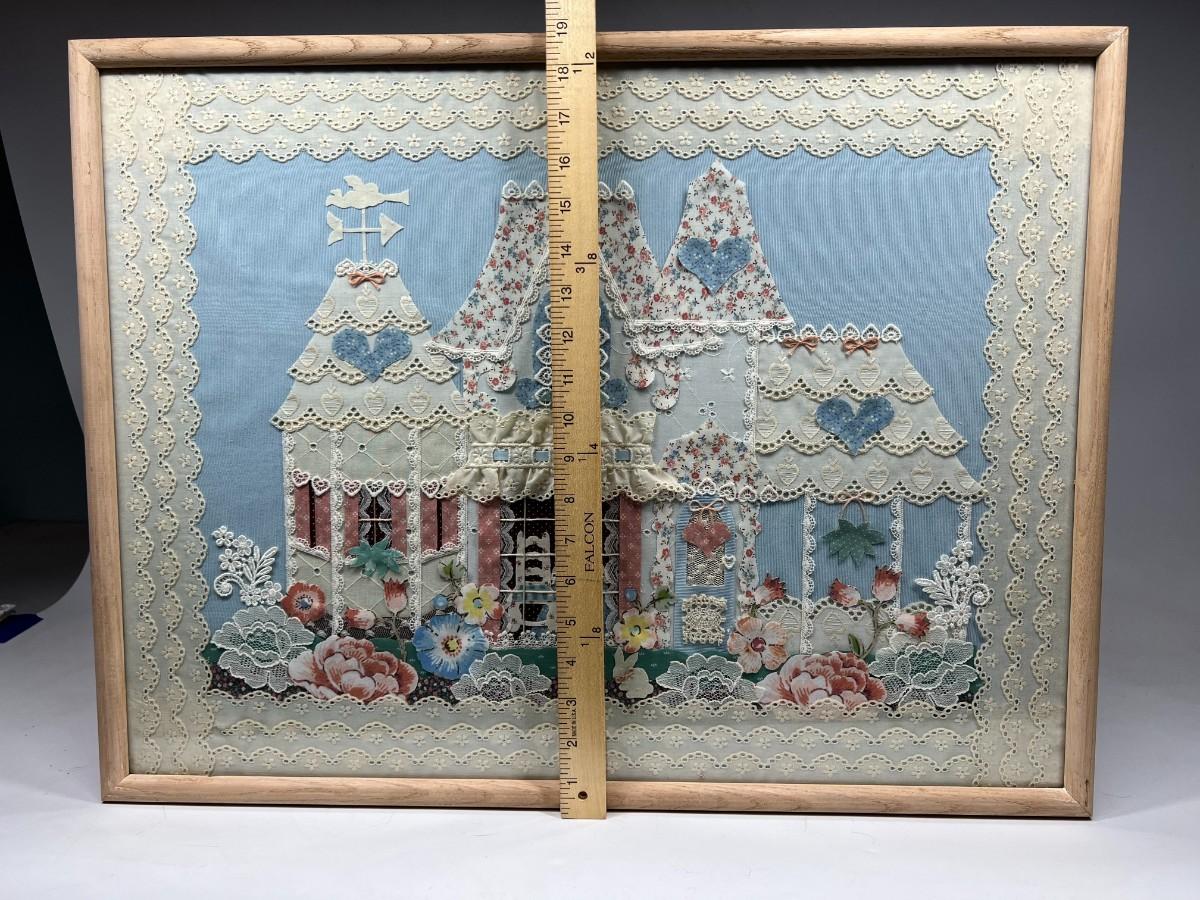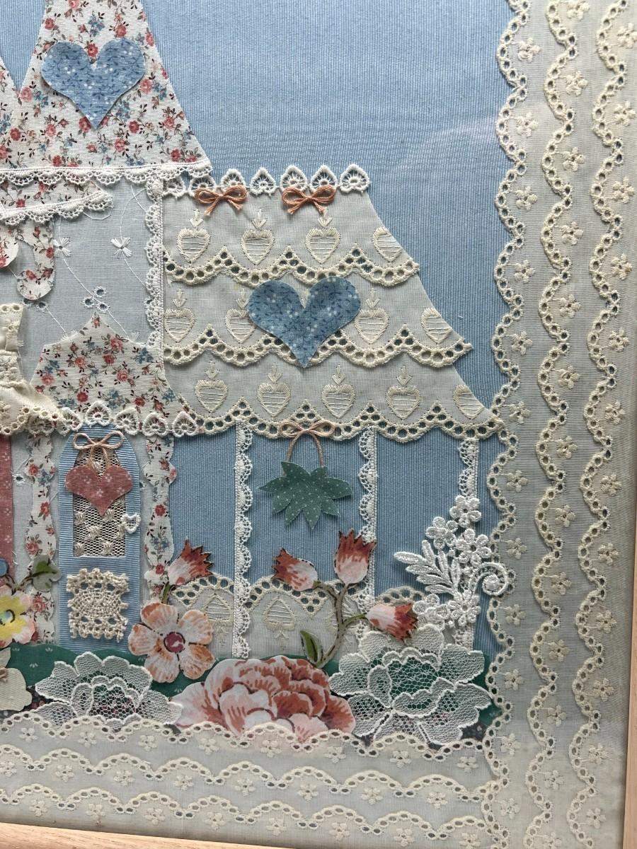 Vintage Cottagecore Shabby Chic Fabric Applique Lace Art