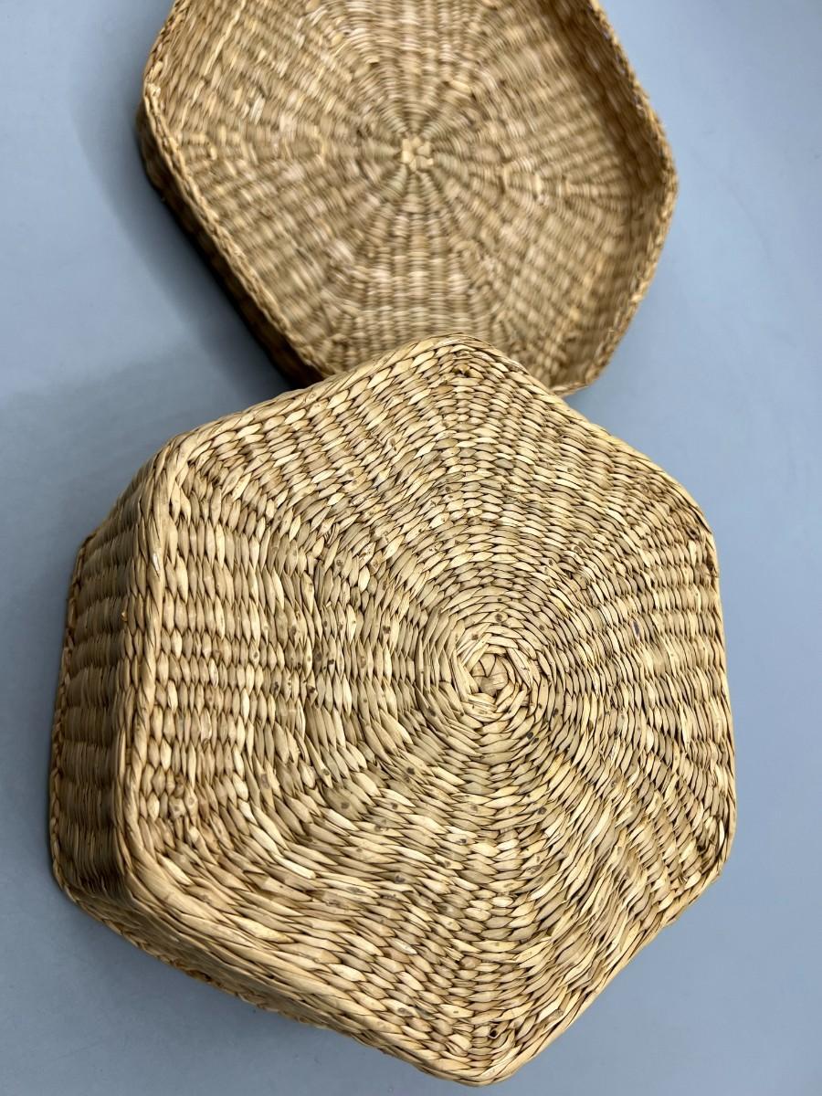 Small Natural Fiber Woven Straw Fiber Trinket Box with Lid