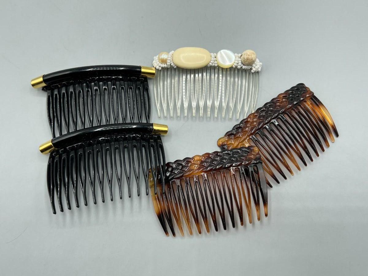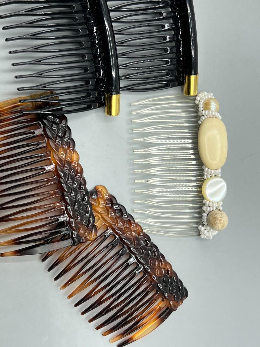 Lot of 5 Plastic Hair Comb Accessories. In good condition. Two matching sets and a single comb.