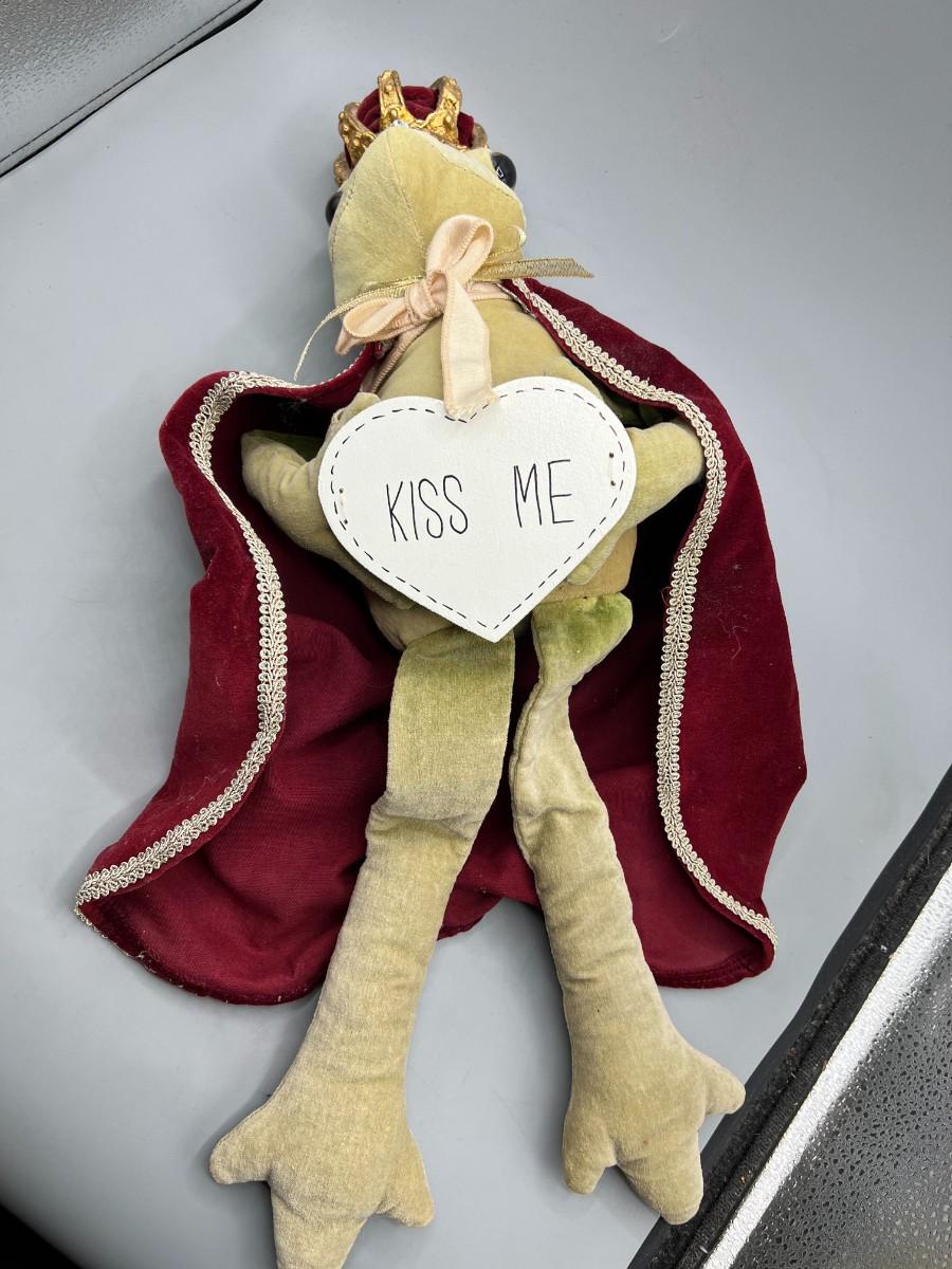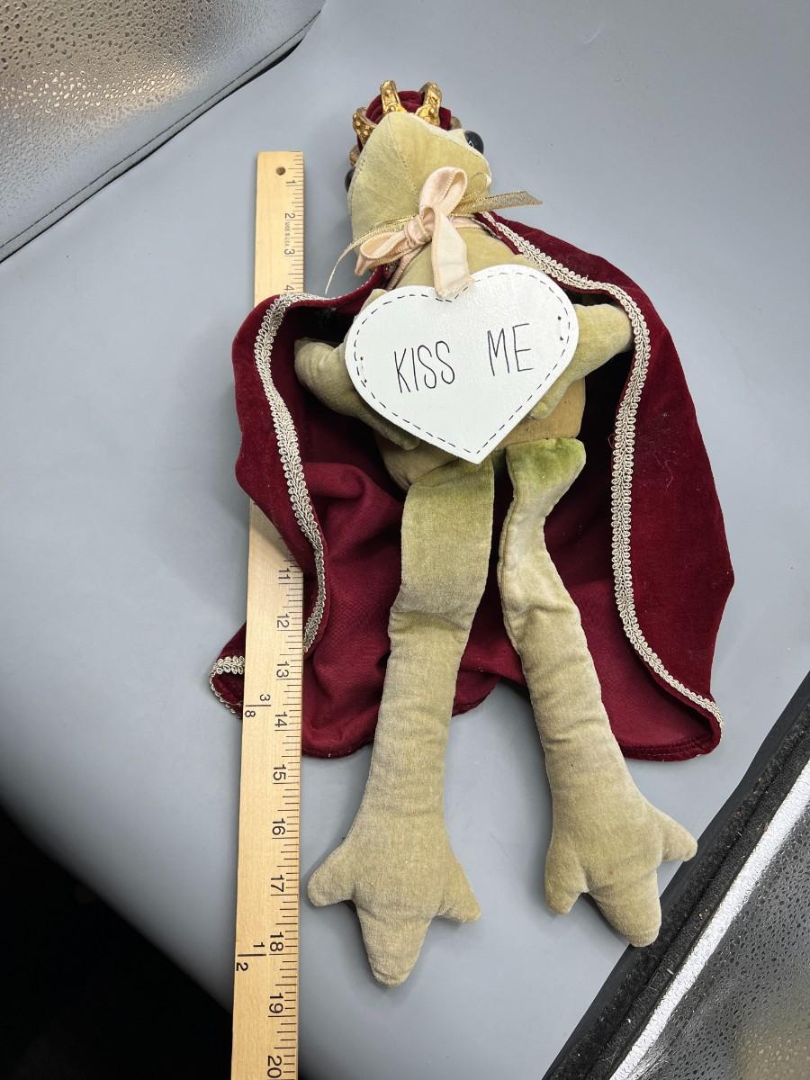 Plush Frog Prince Kiss Me Stuffed Animal Romantic Valentine's Day Gift. In displayed condition, may be a little dusty.