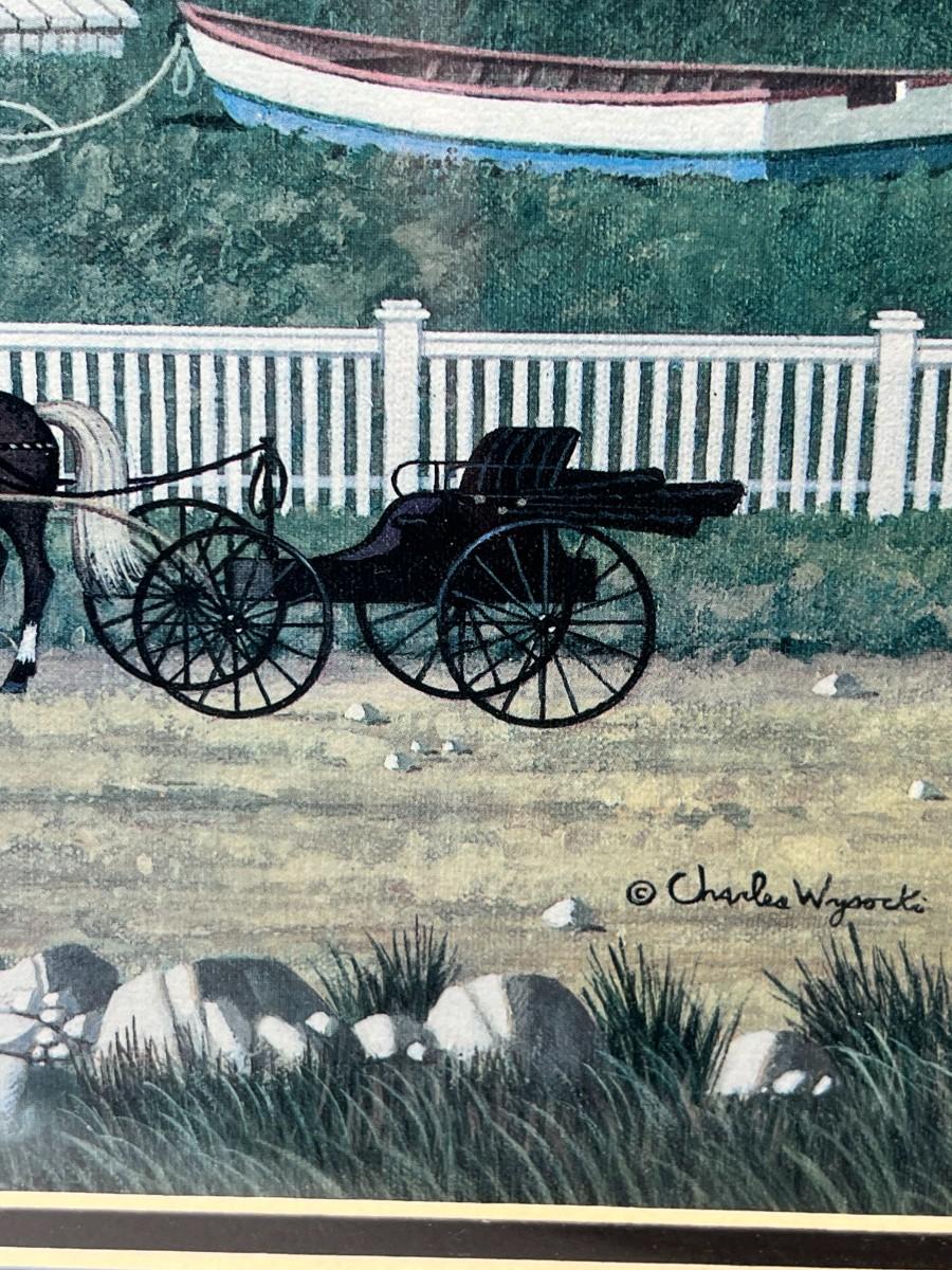 Pair of Charles Wysocki Amish Farm Town Framed Art Prints. In good condition. About 21x19 size.