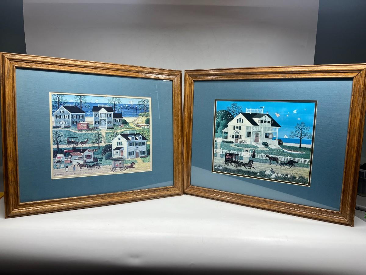 Pair of Charles Wysocki Amish Farm Town Framed Art Prints