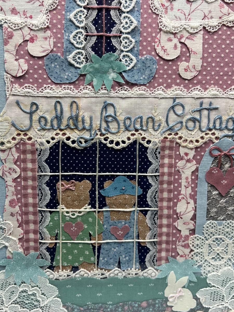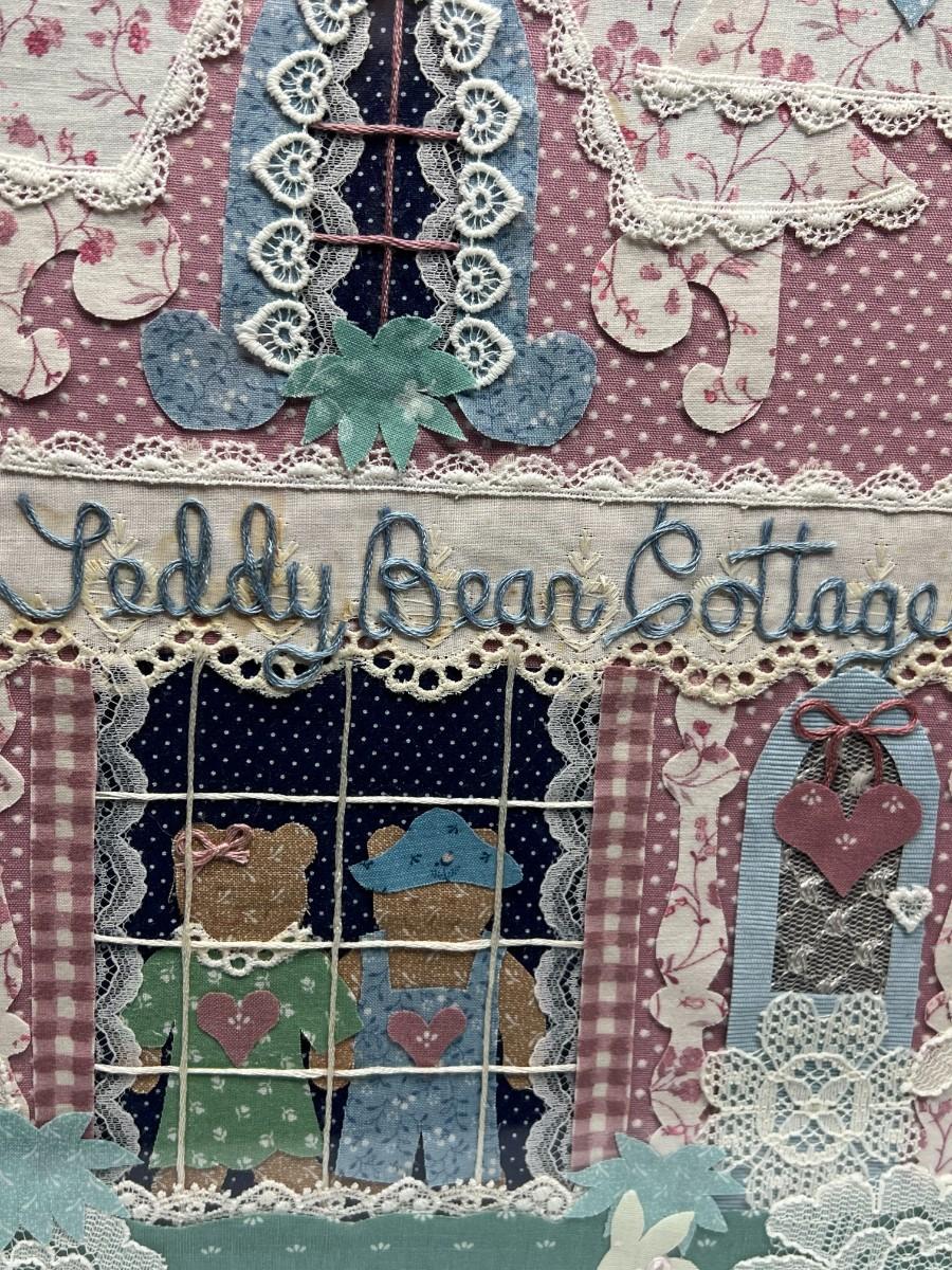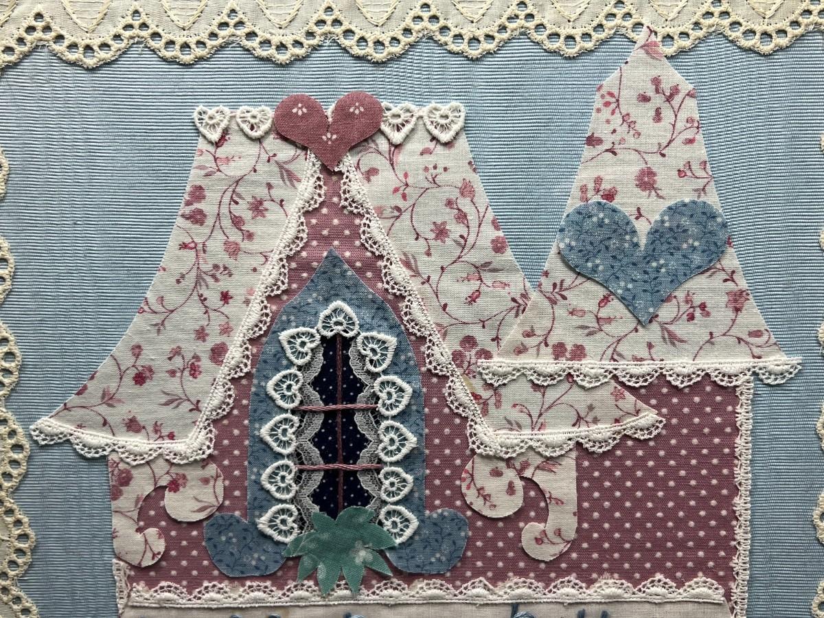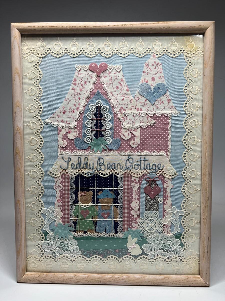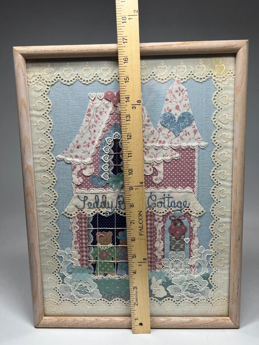 Vintage Retro Cottagecore Shabby Chic Fabric Lace Applique Framed Art