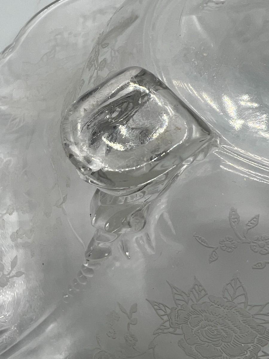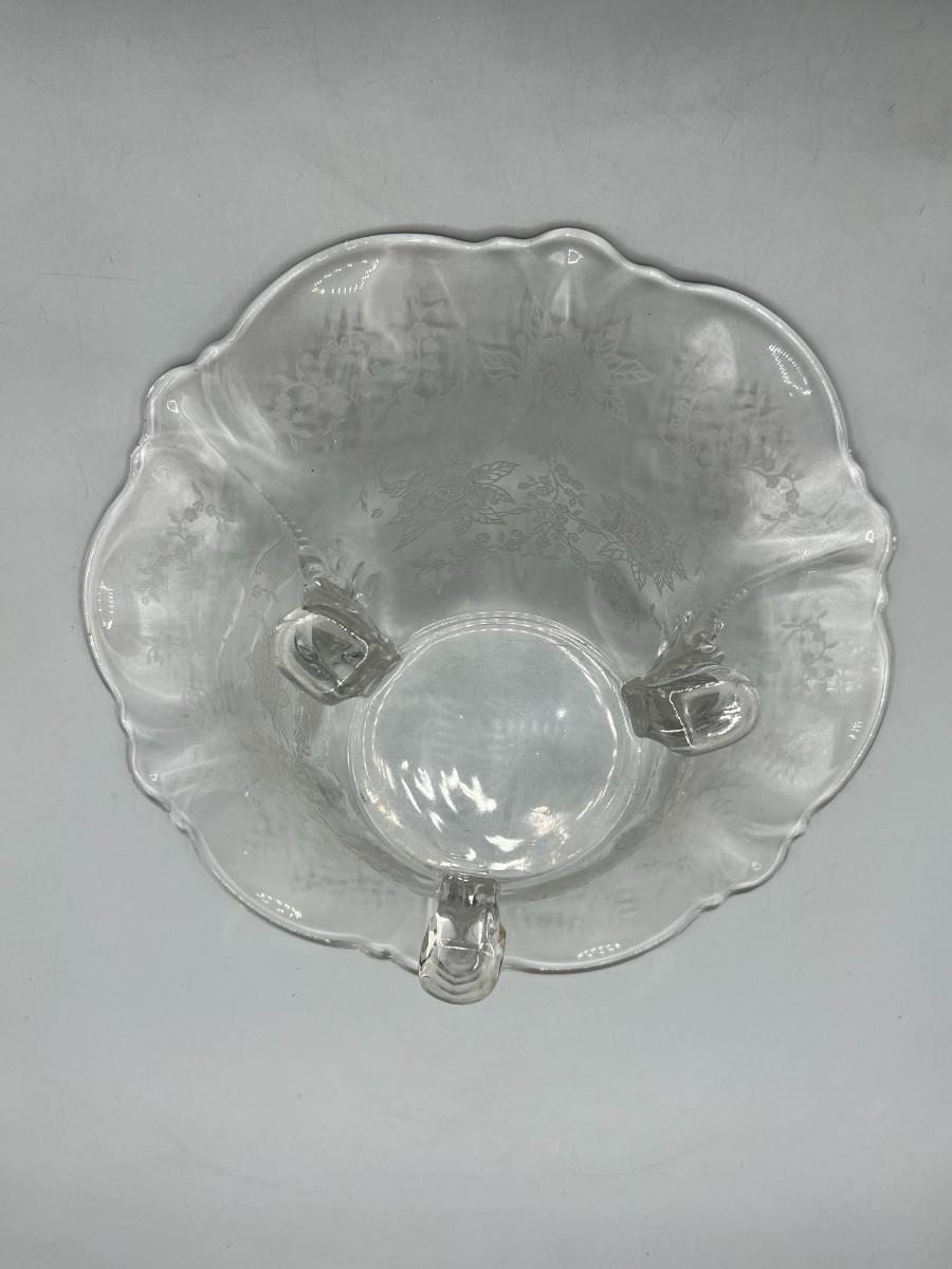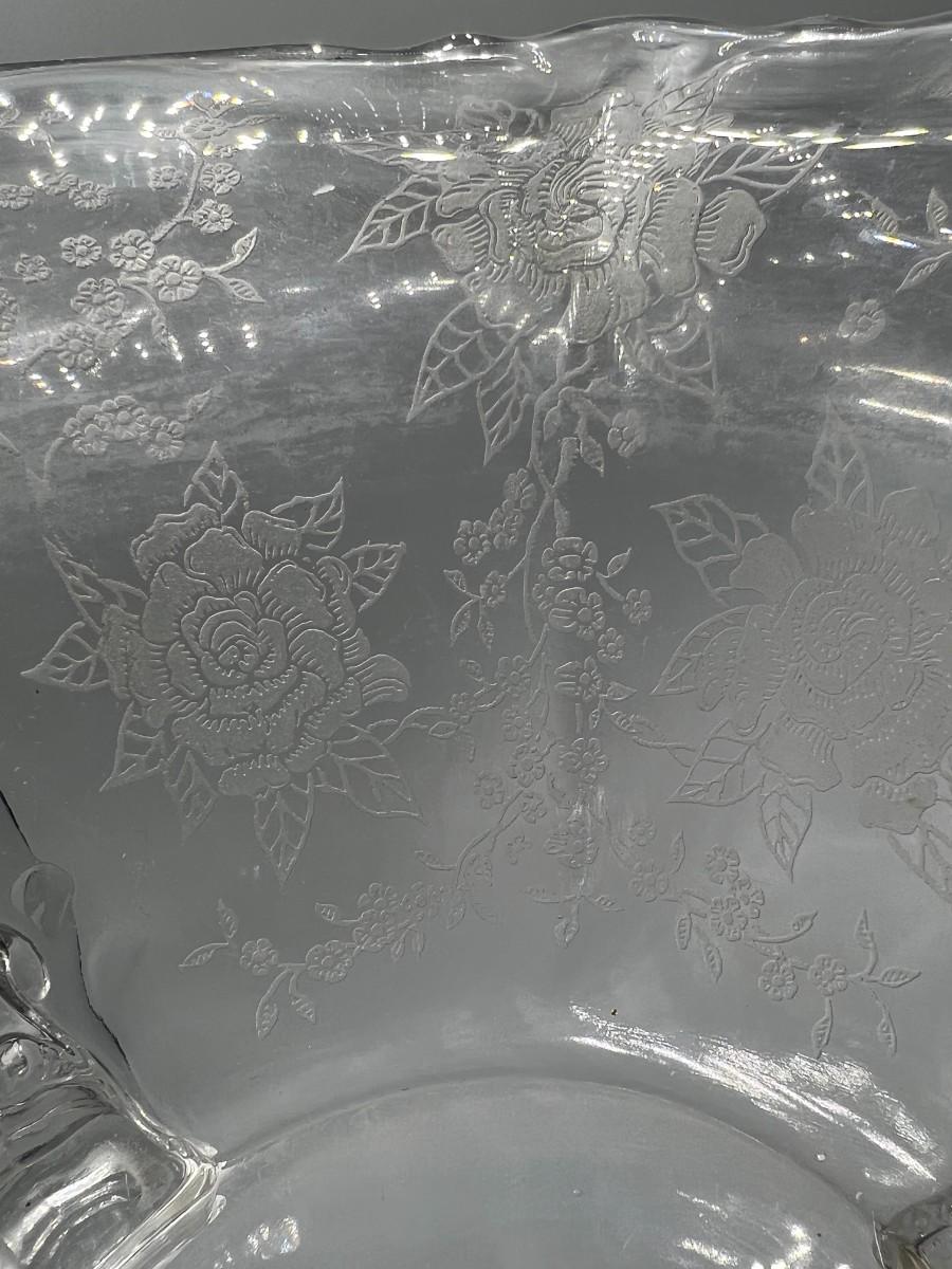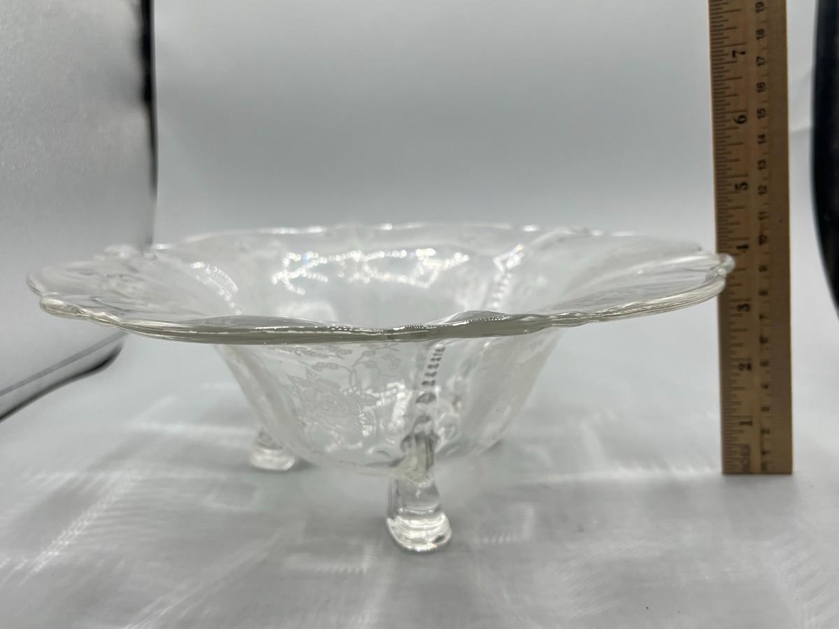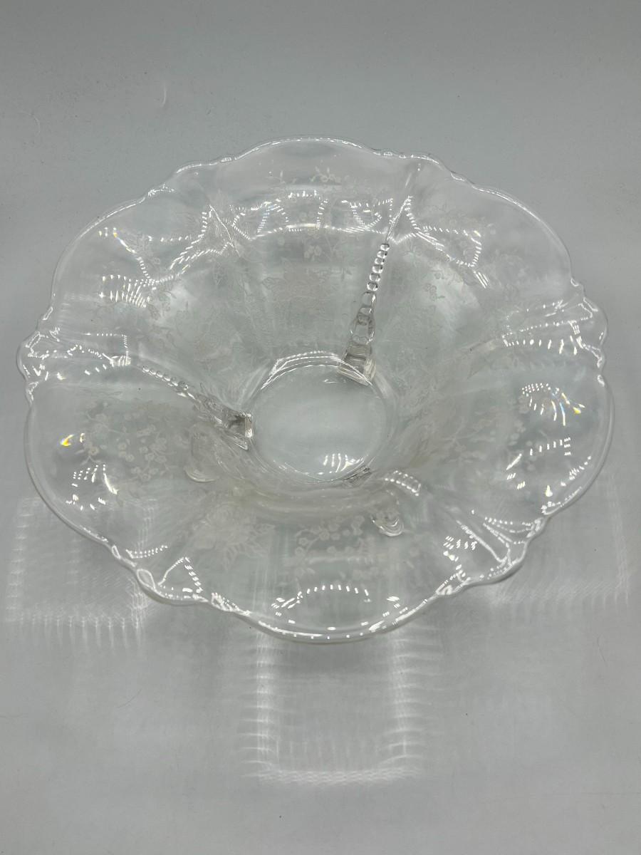 Vintage Fostoria Footed Floral Etched Console Bowl. In good condition. 11" diameter.