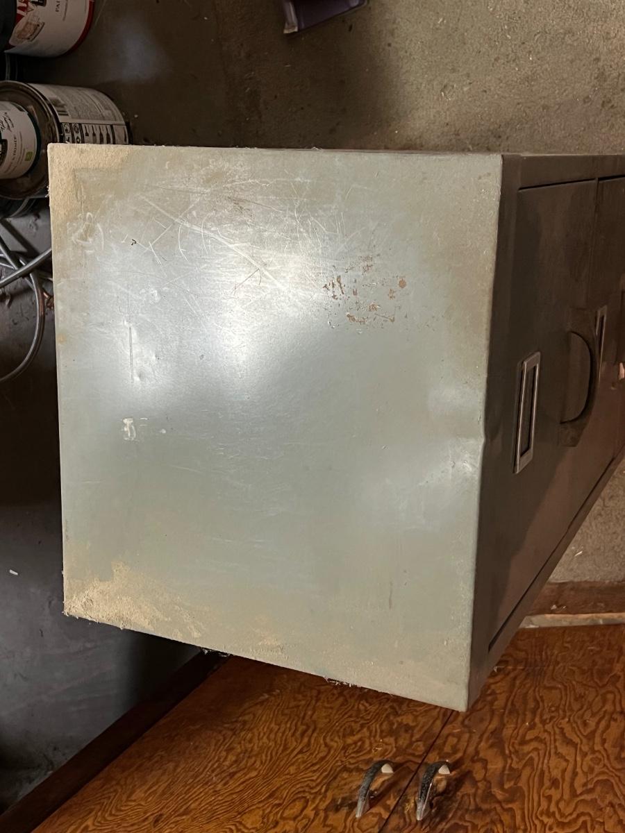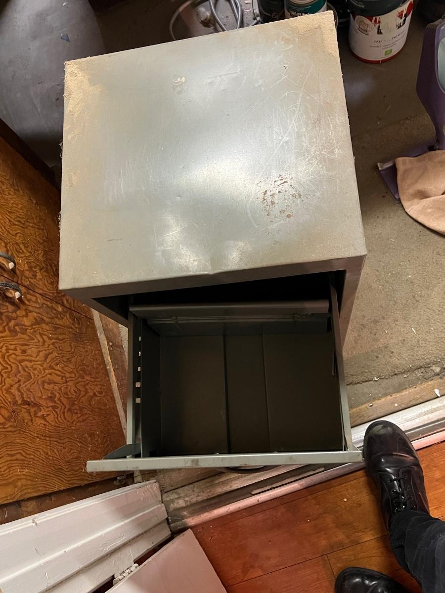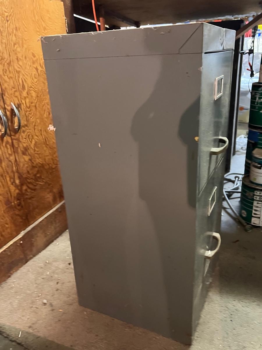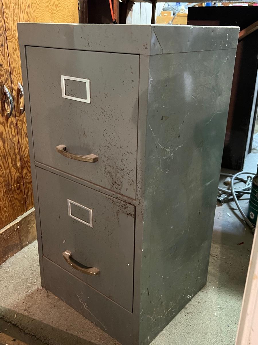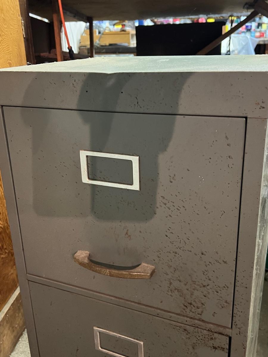 Two Drawer Metal Filing Cabinet. In used condition.