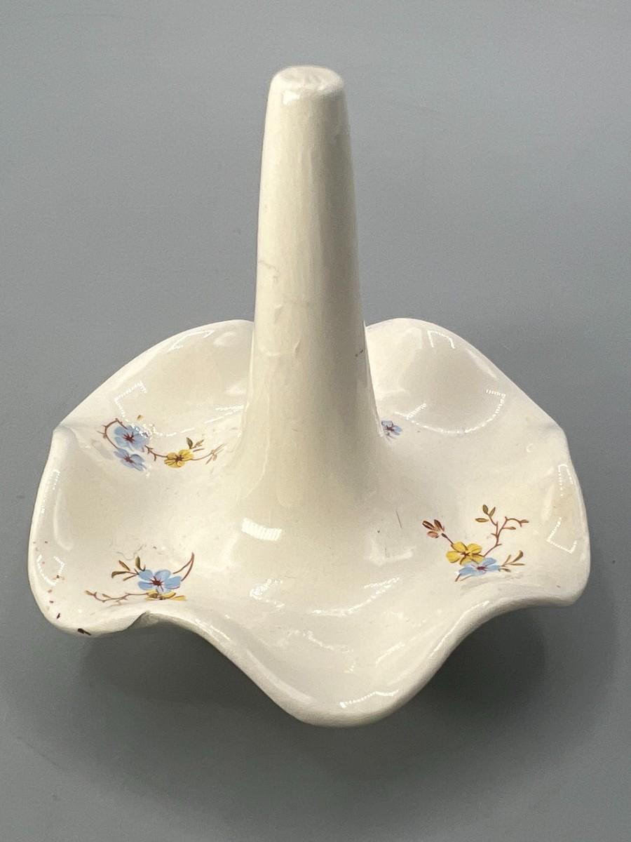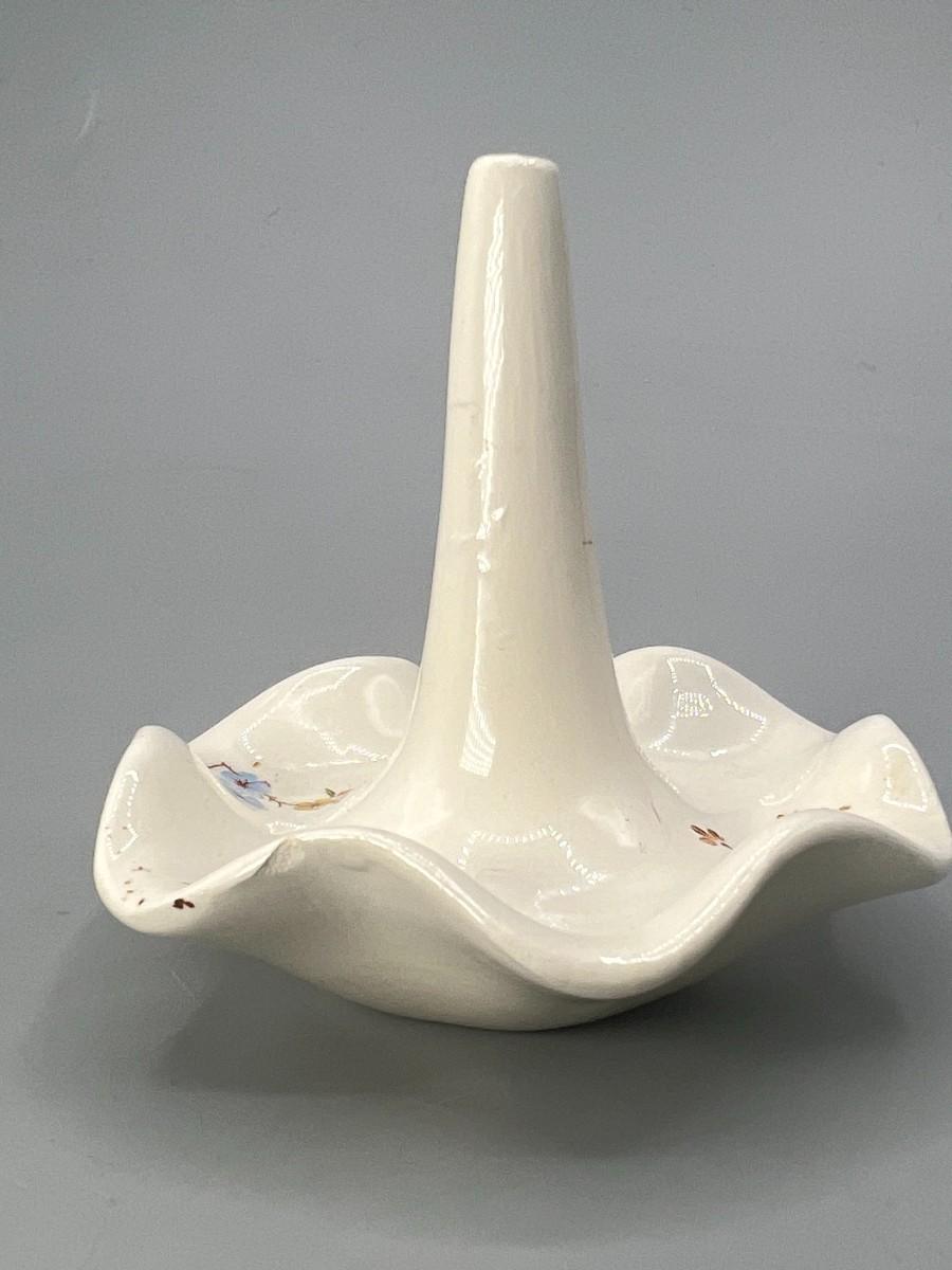 VIntage Ceramic Petite Flower Cottage Core Ruffle Jewelry Ring Stand