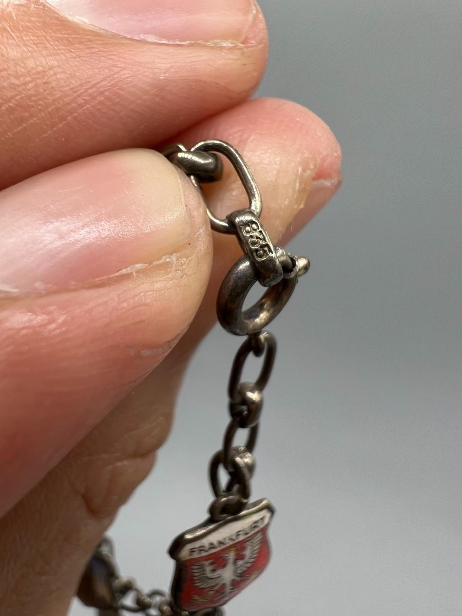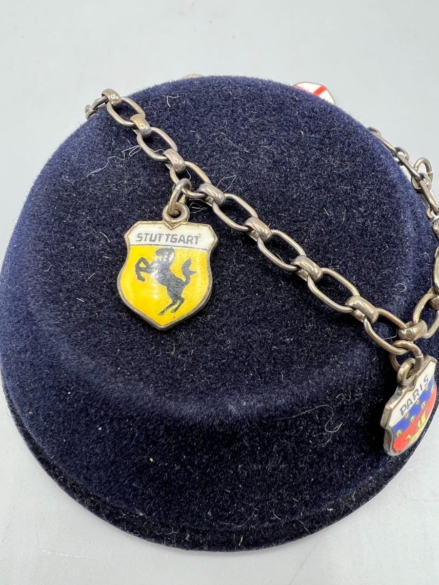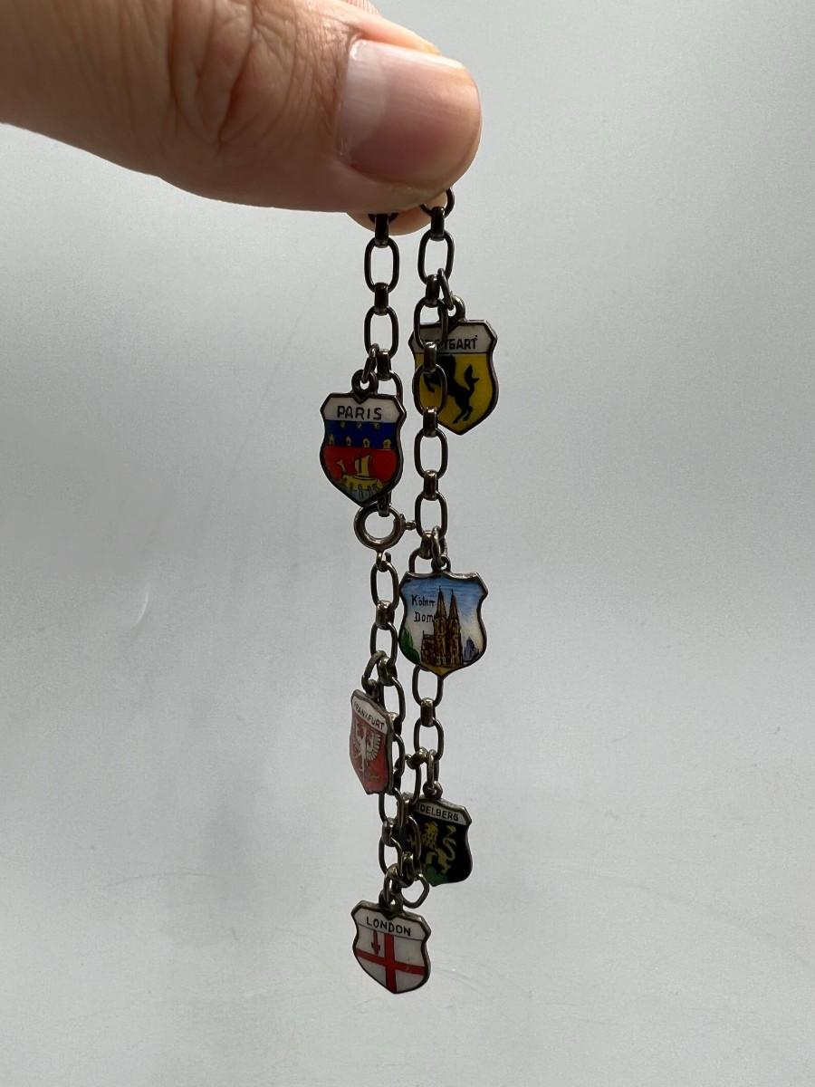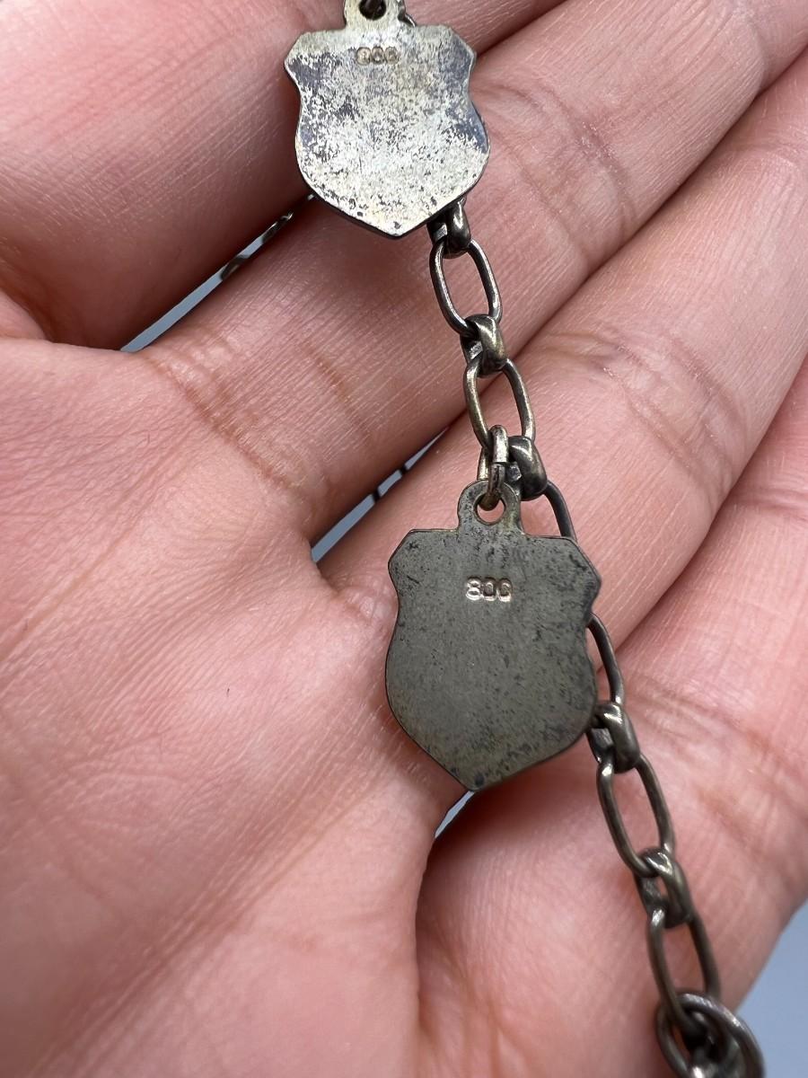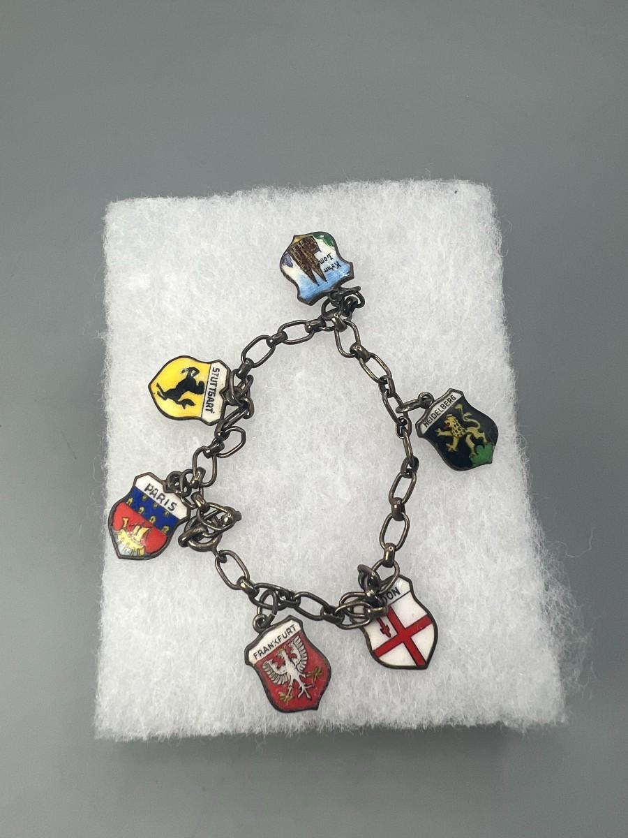Vintage Sterling Silver Enamel European German Shield Crests Gothic Cathedral Charm Bracelet
