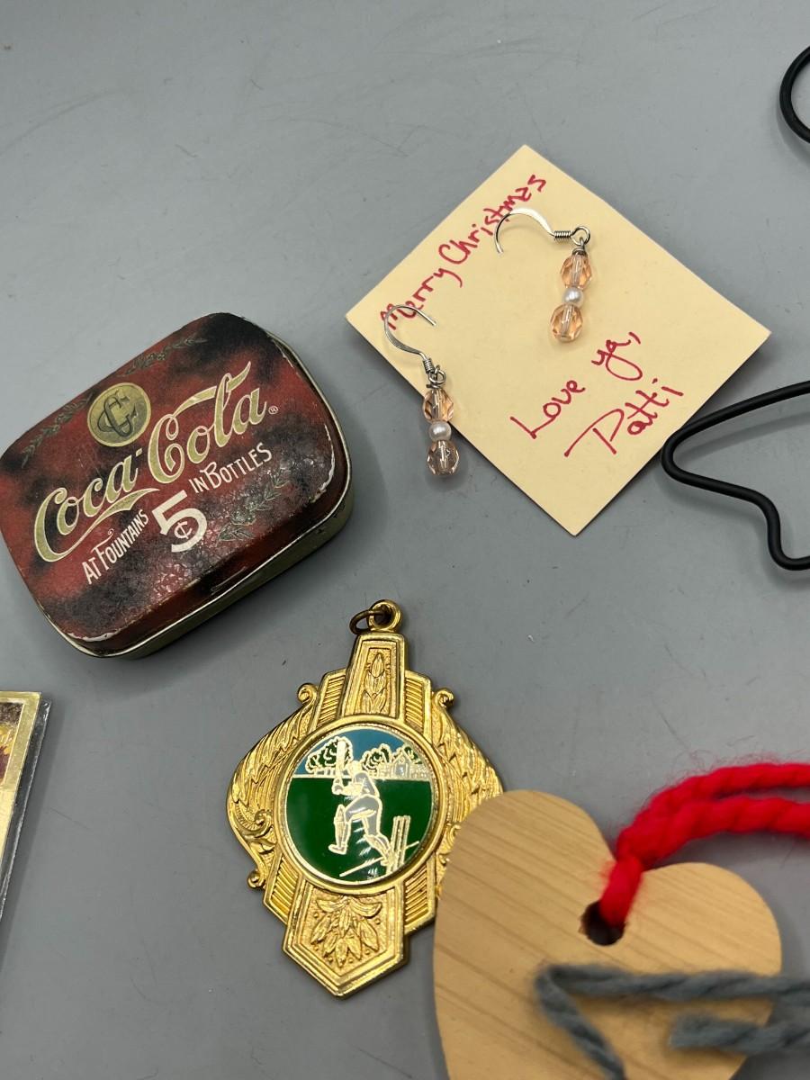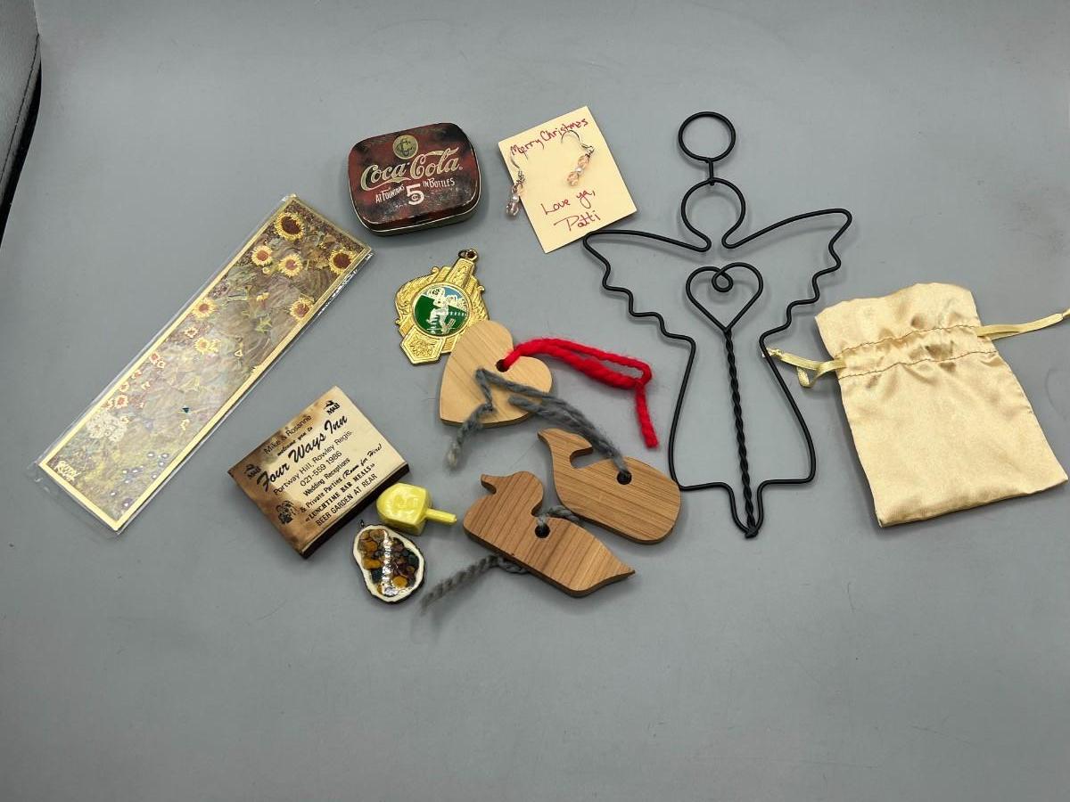 Lot of Retro Miscellaneous Trinkets Bookmark, Coca-Cola Tin, & More