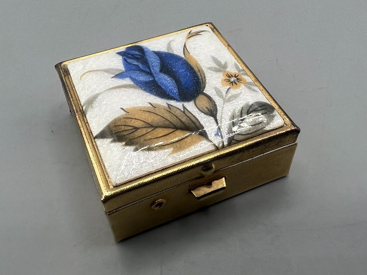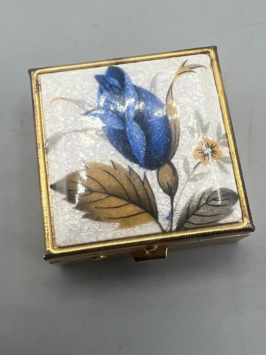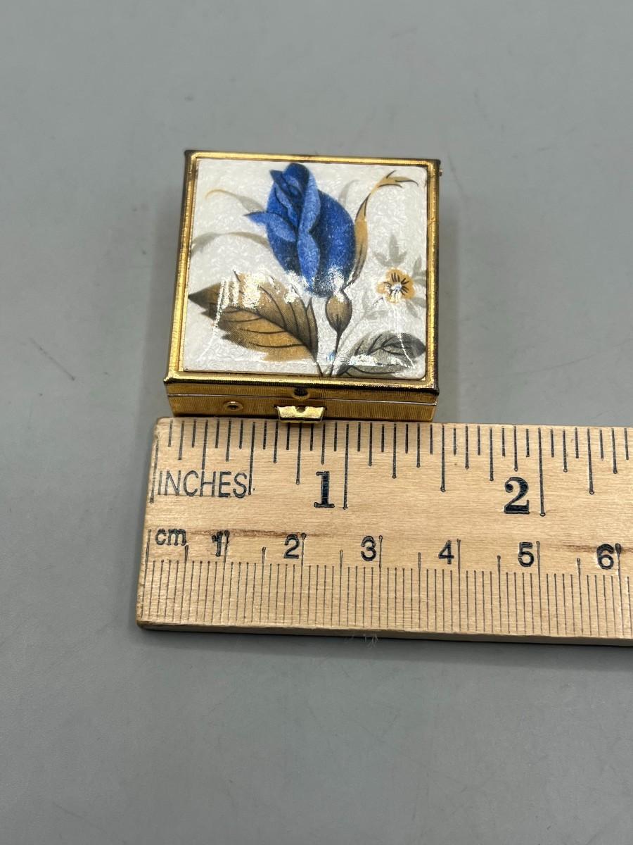 Small Blue Rose Flower Trinket Snuff Box