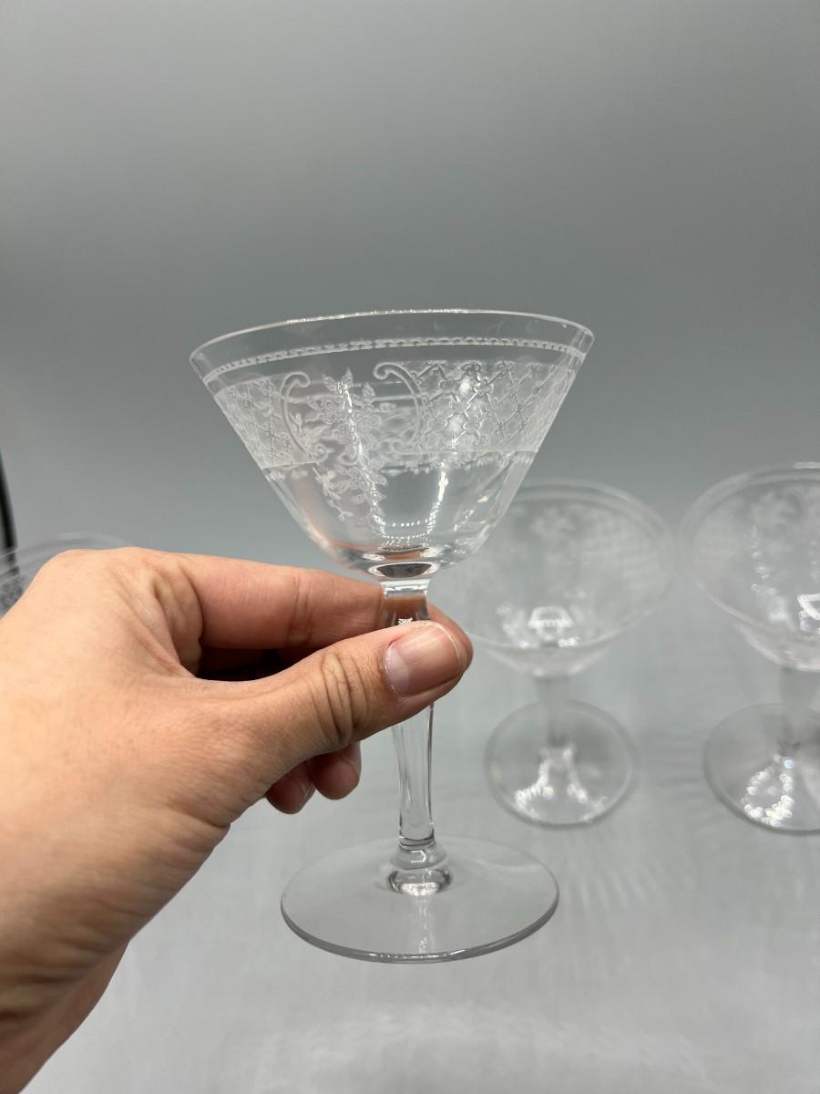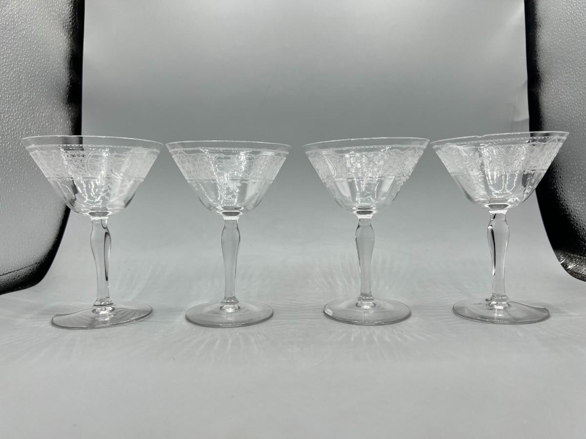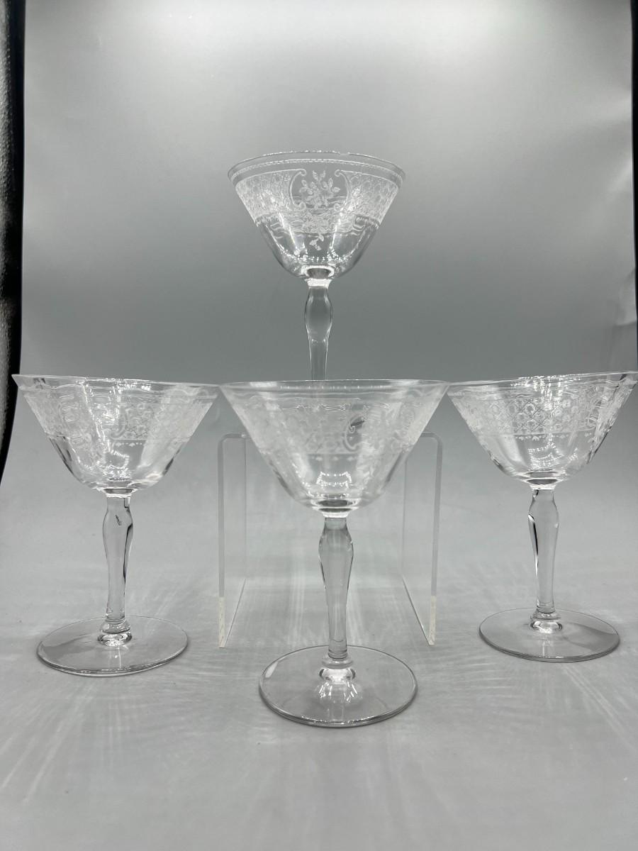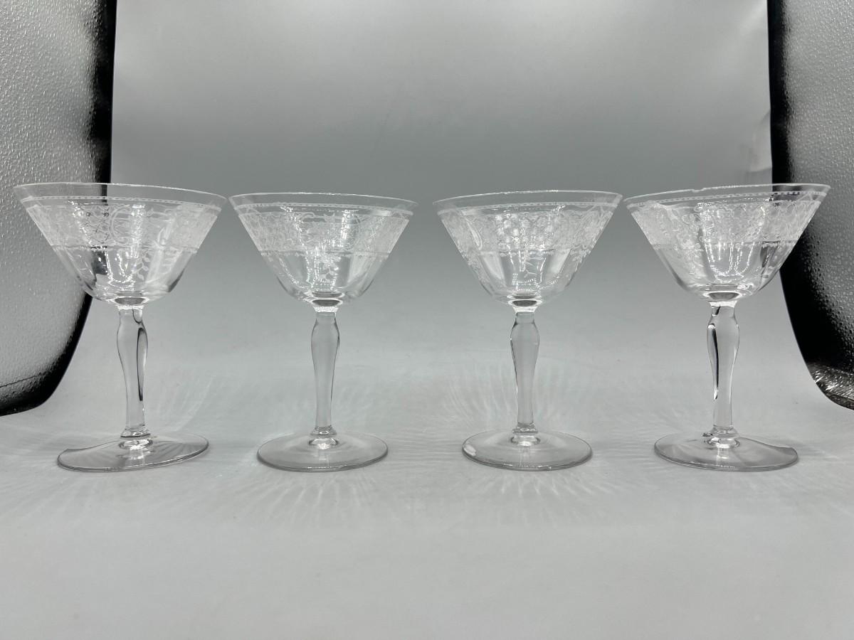 Set of 4 Vintage Etched Champagne Wine Glasses