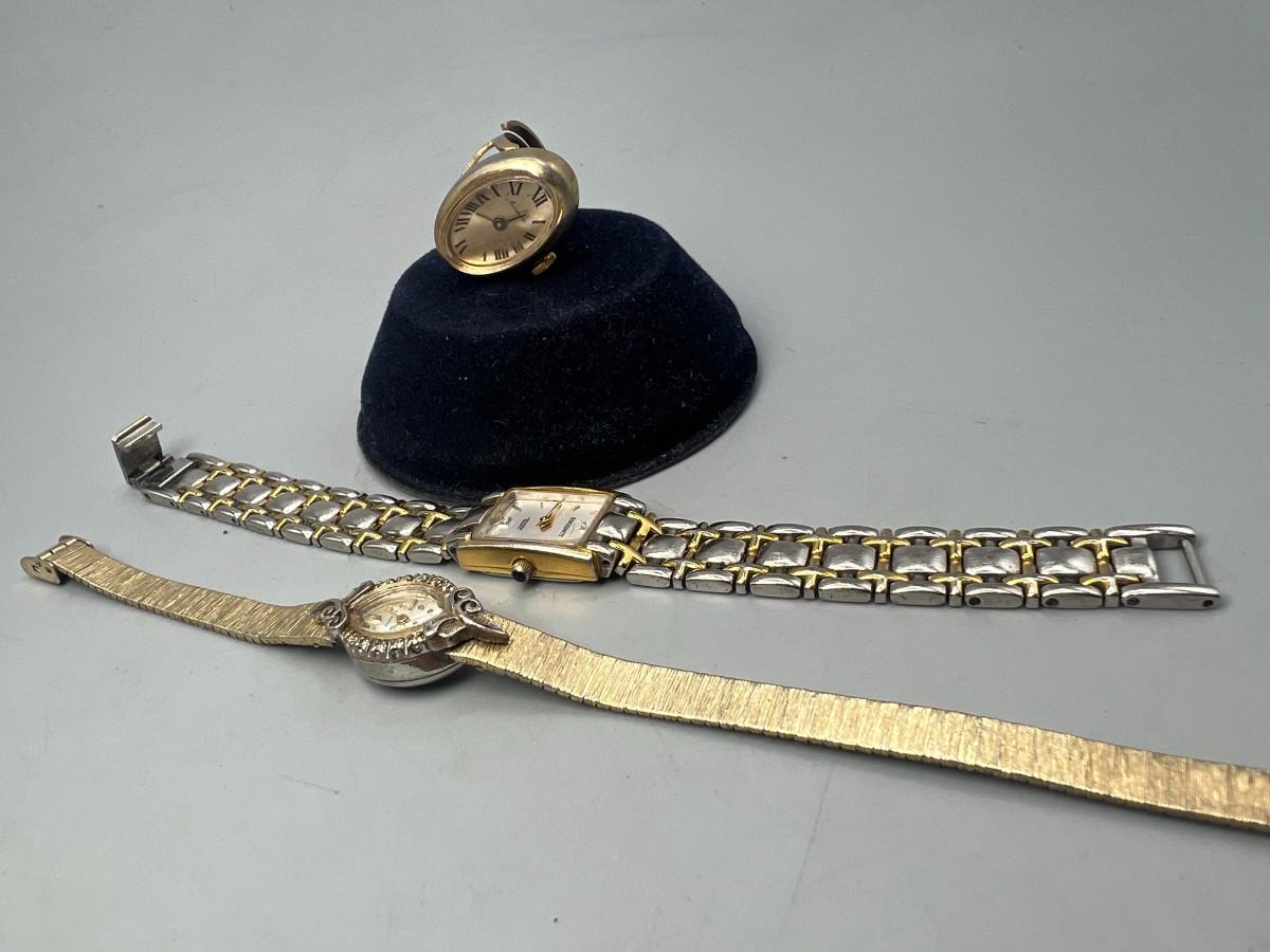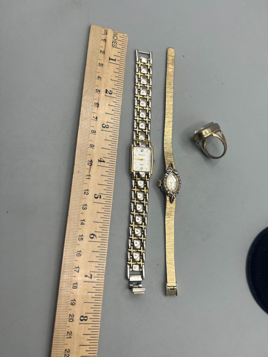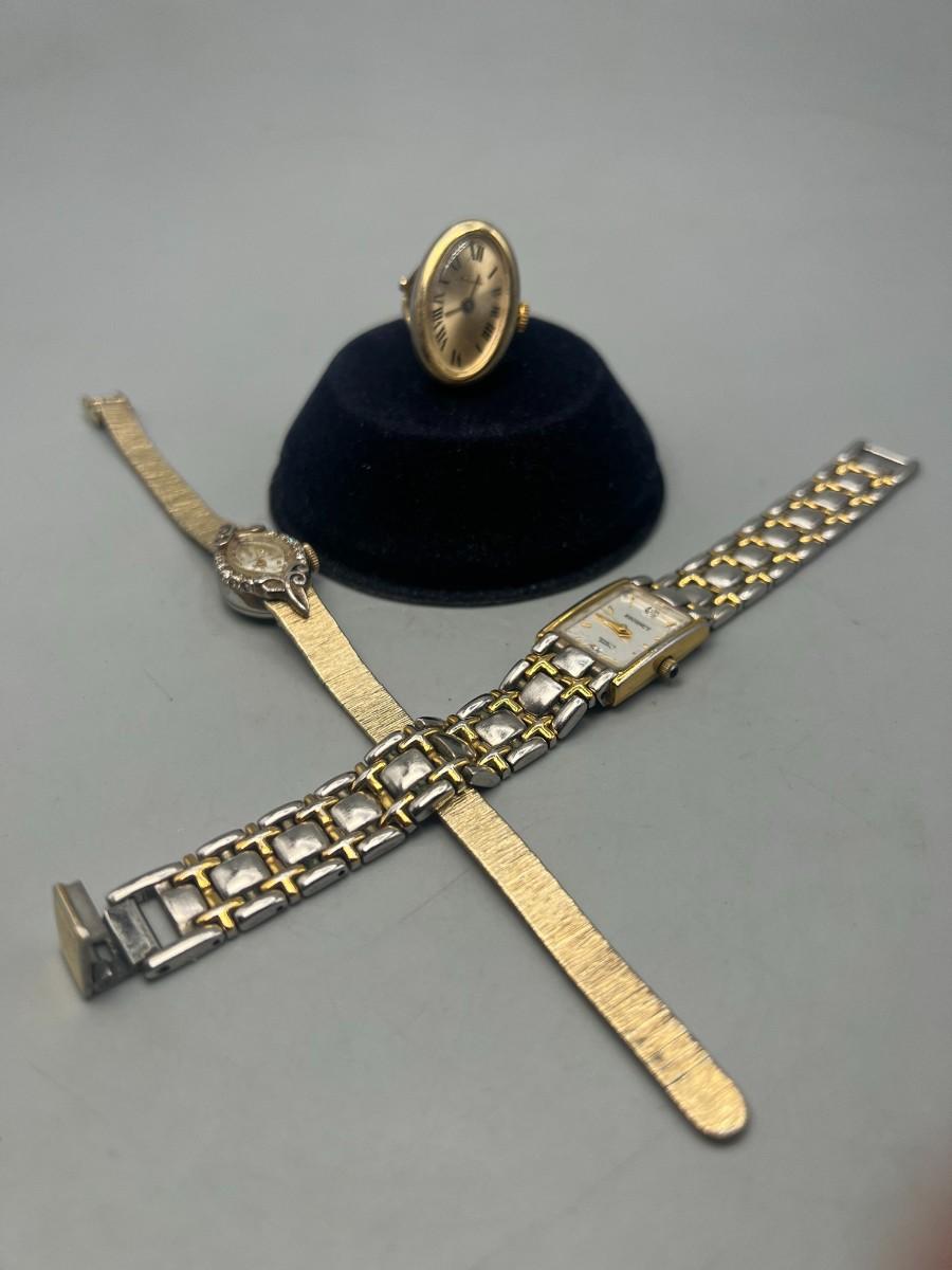 There is some wear to both of the watches, but there is no significant damage to the ring watch and is in overall fair condition. None of the watches are running. Check pictures for more details and for sizing.
