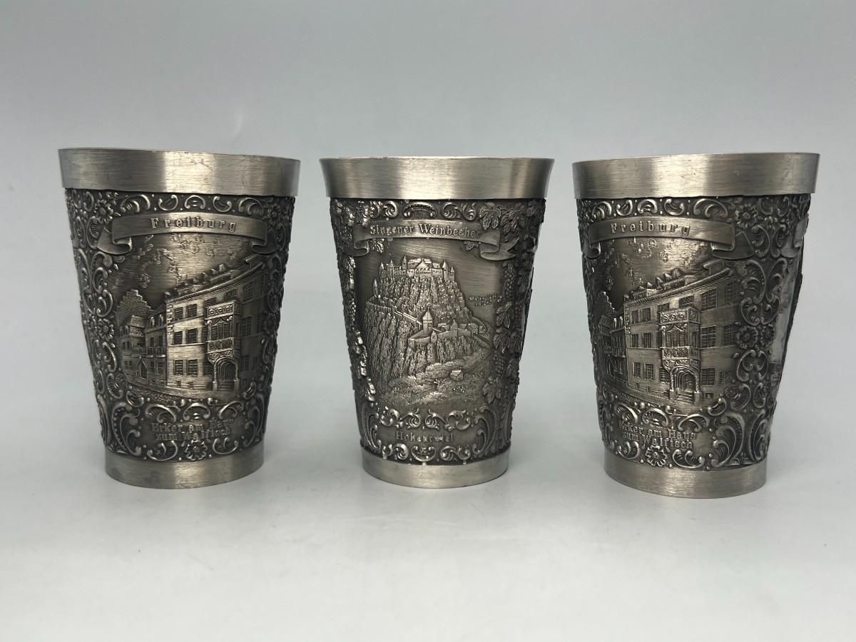 Lot of Vintage Zinn Becker Stuttgart & Wertzinn Design Stuttgart German Memorabilia 95% Pewter Wine Cups