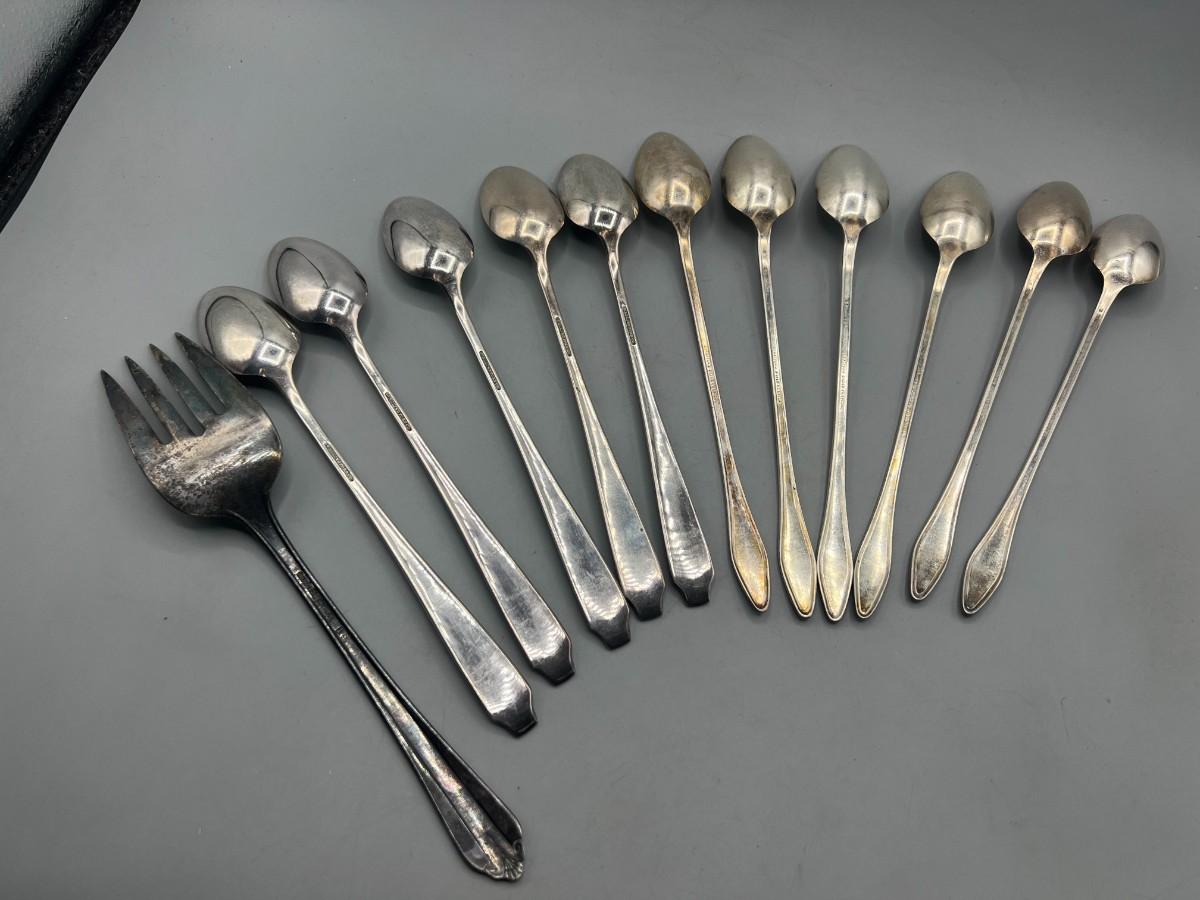 Vintage Lot of Stratford Silver Co Special, Wallin G Ford Co, & Stratford Silver Plate Long Spoons & Serving Fork