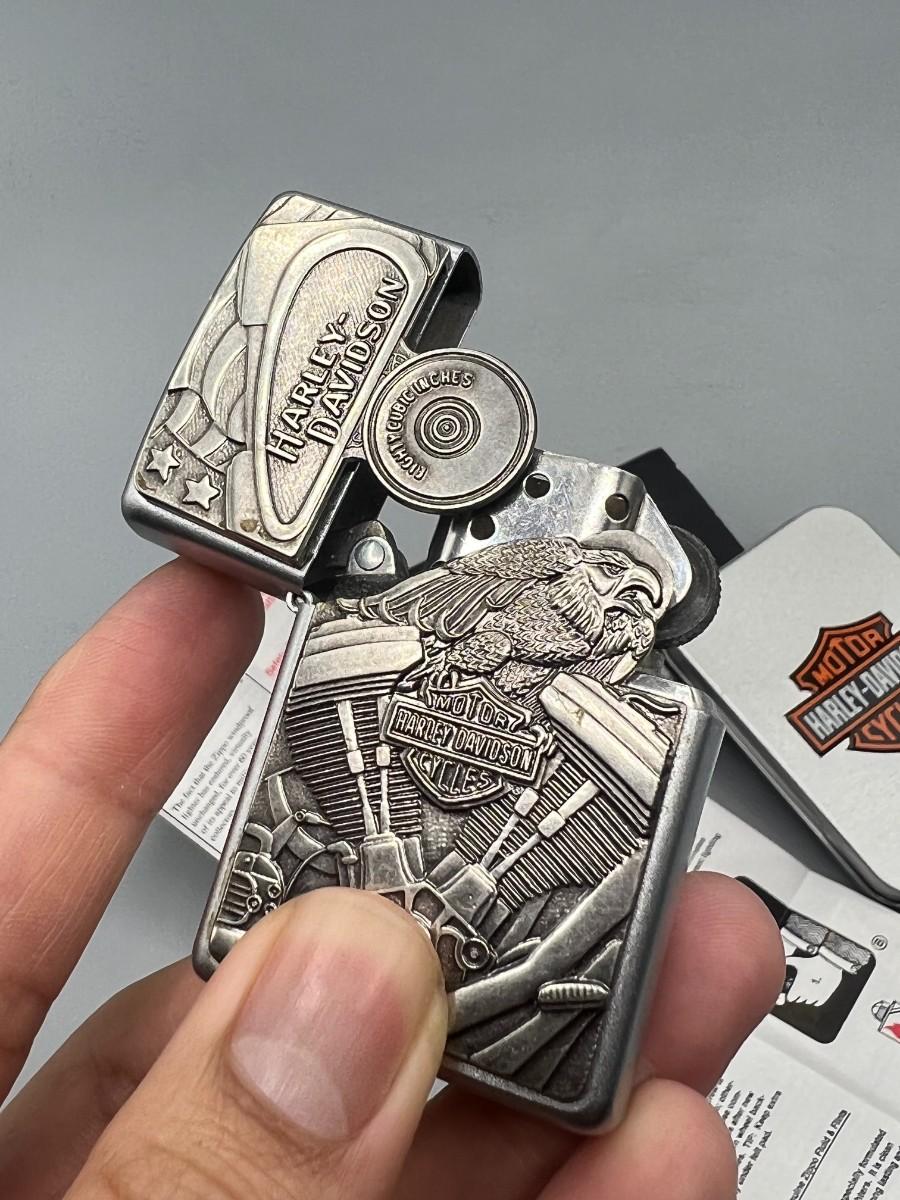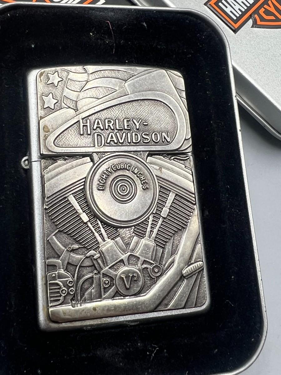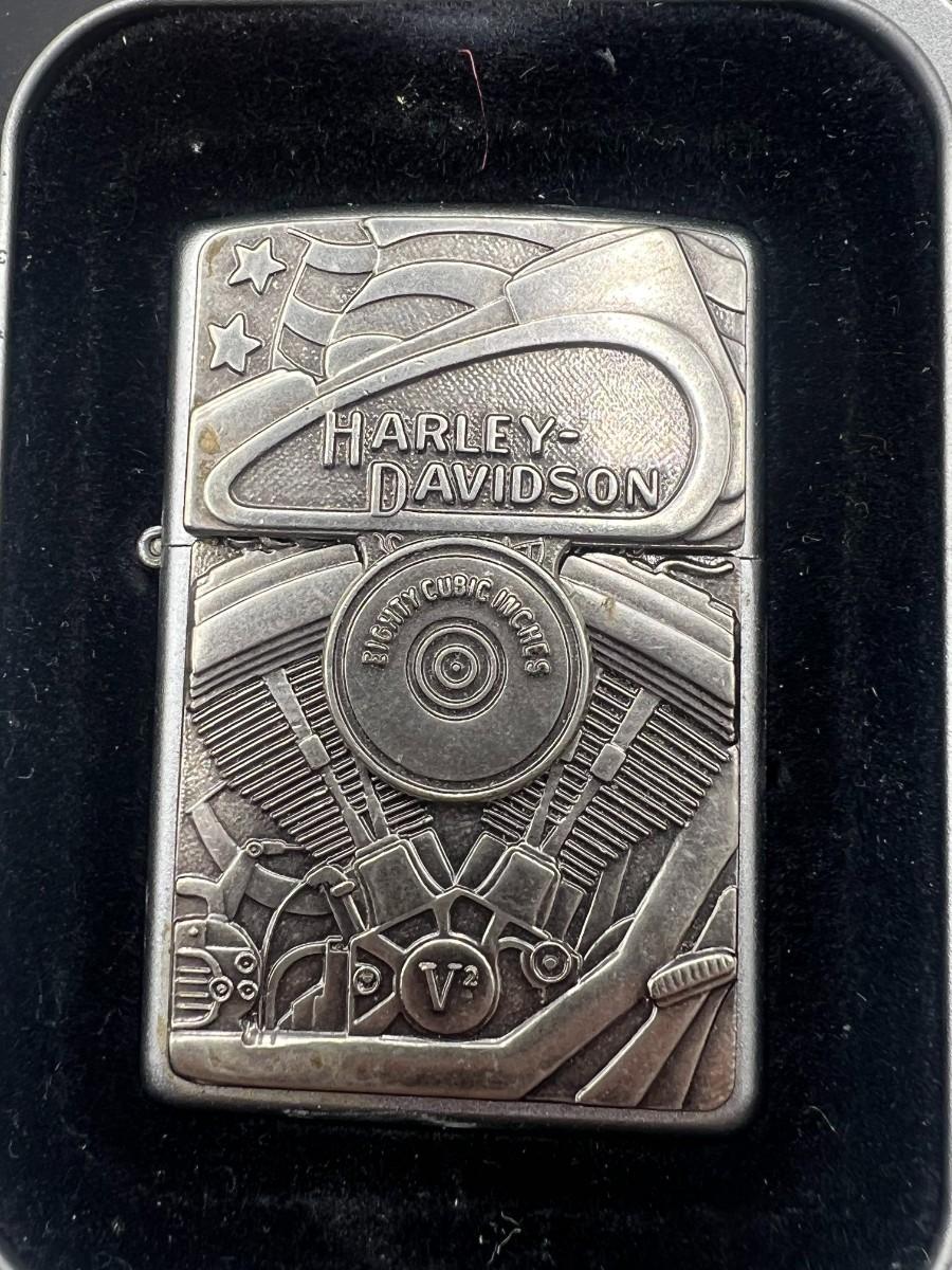 Retro Collectible Zippo Harley Davidson Emblem Lighter Motor Flag & Eagle with Case