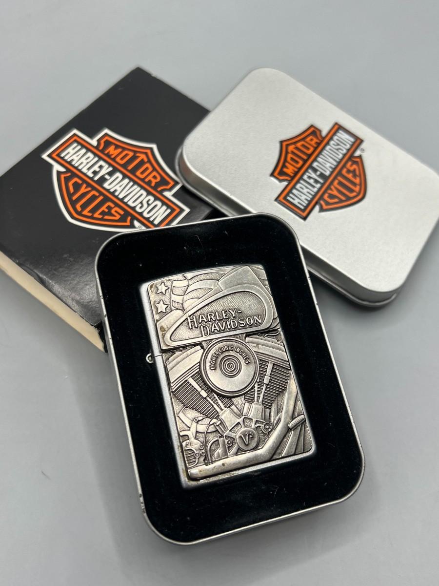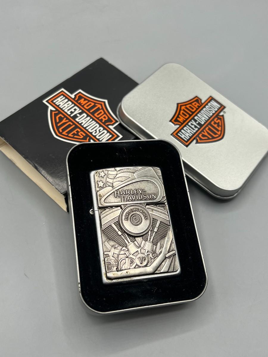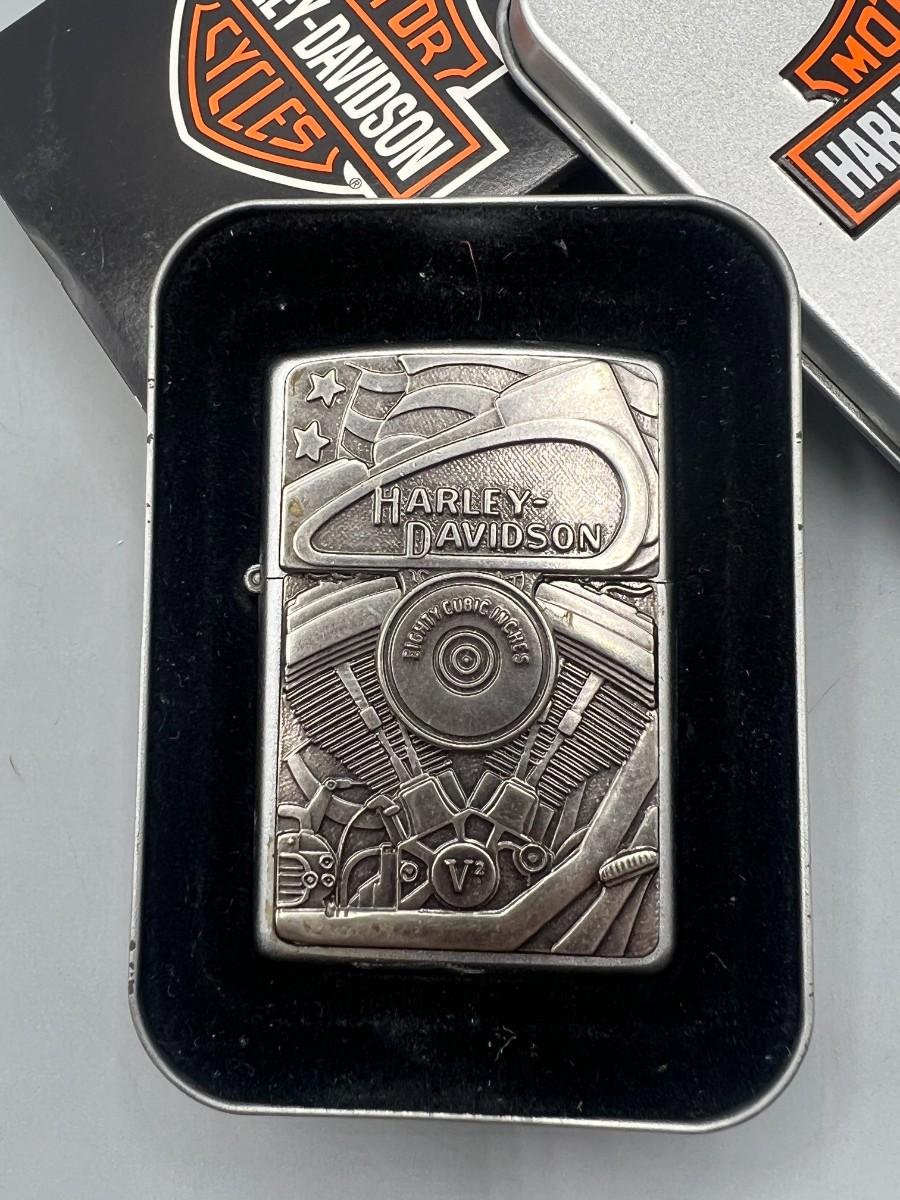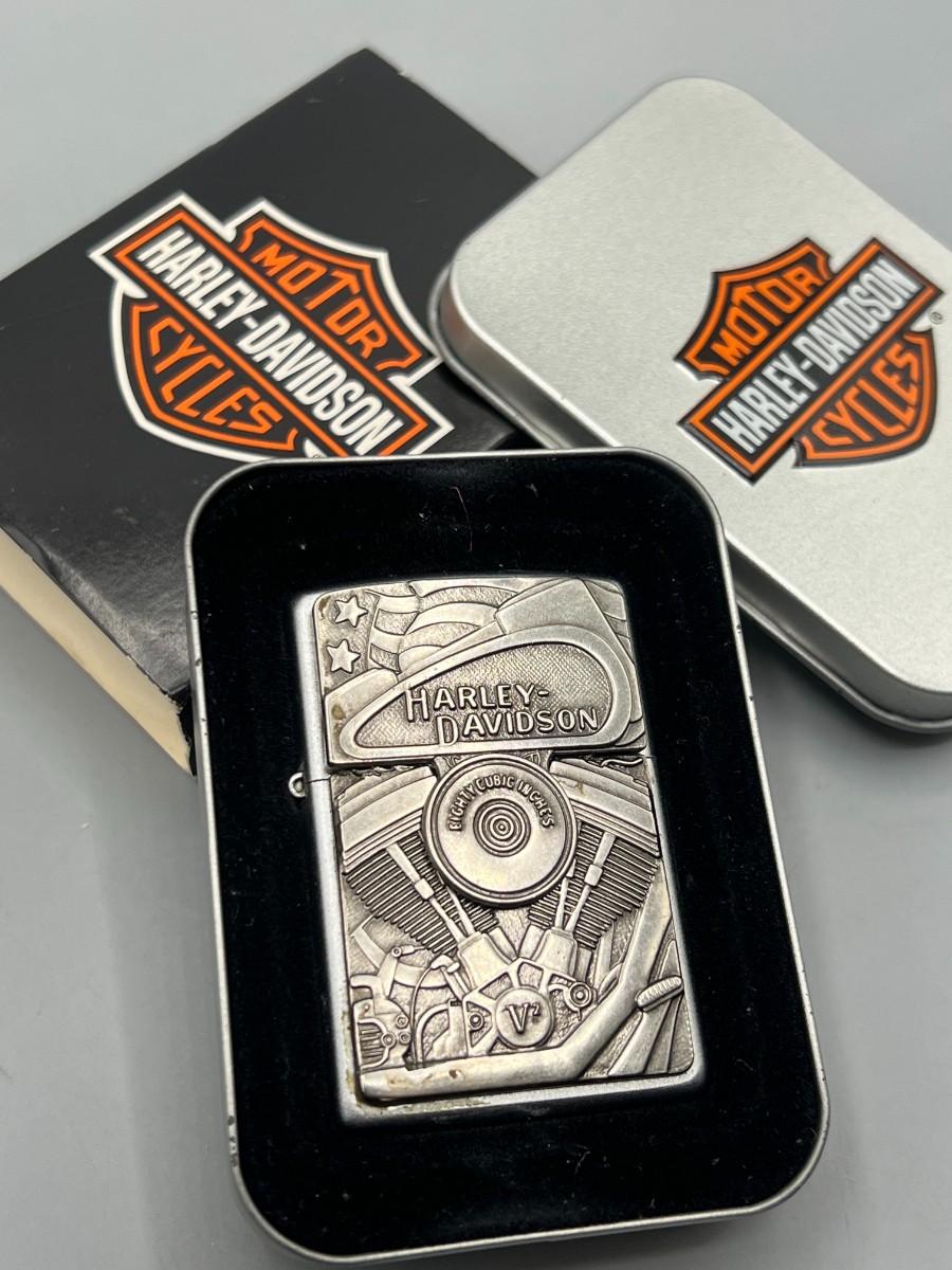 Retro Collectible Zippo Harley Davidson Emblem Lighter Motor Flag & Eagle with Case
