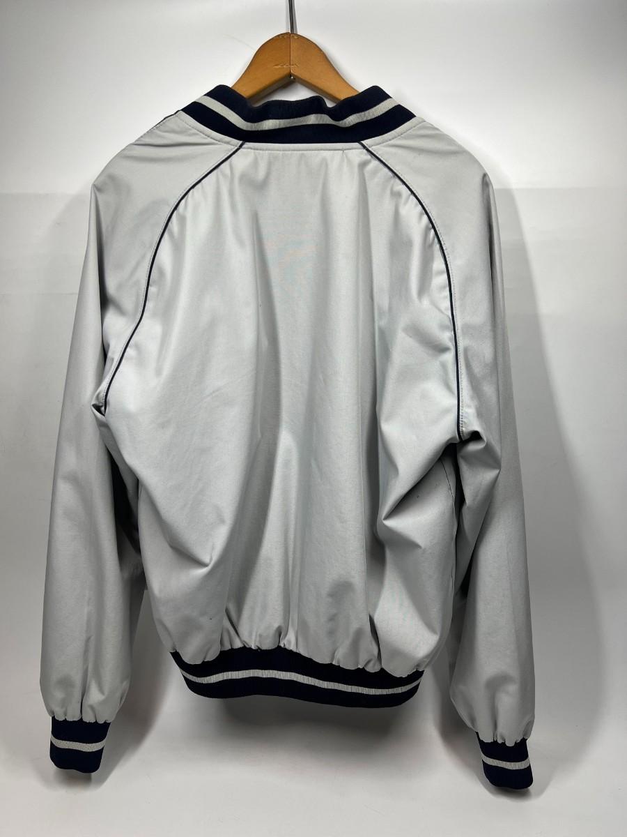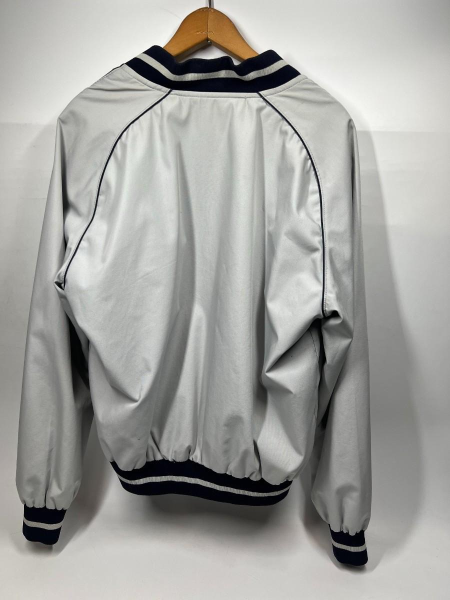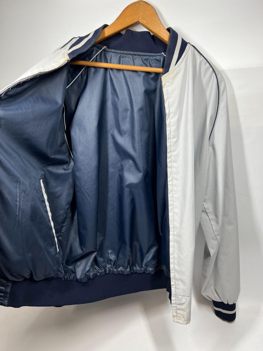 There are some signs of wear, but there is no significant rips or tears and is in overall good wearable or collectible condition. The jacket is about a size Medium, check pictures for more details.