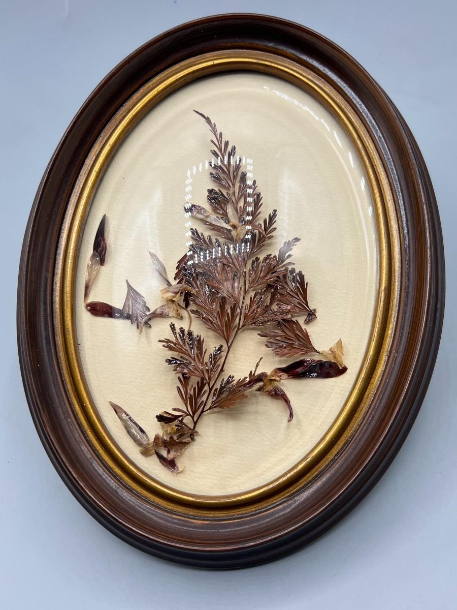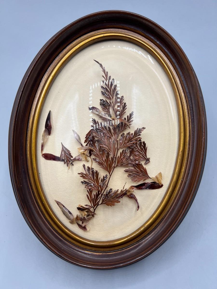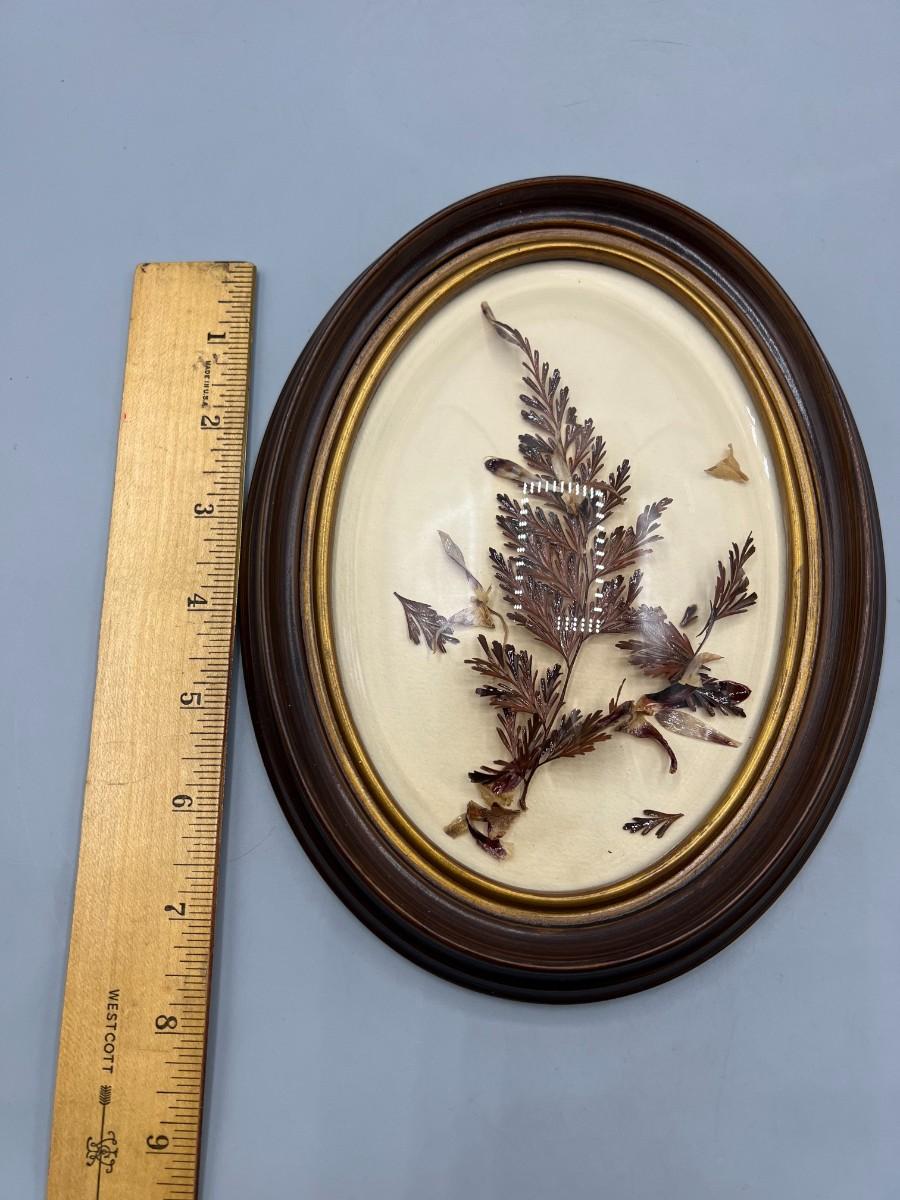 Retro Framed Petrified Hawaiian Orchid Art Piece Loose Leafs