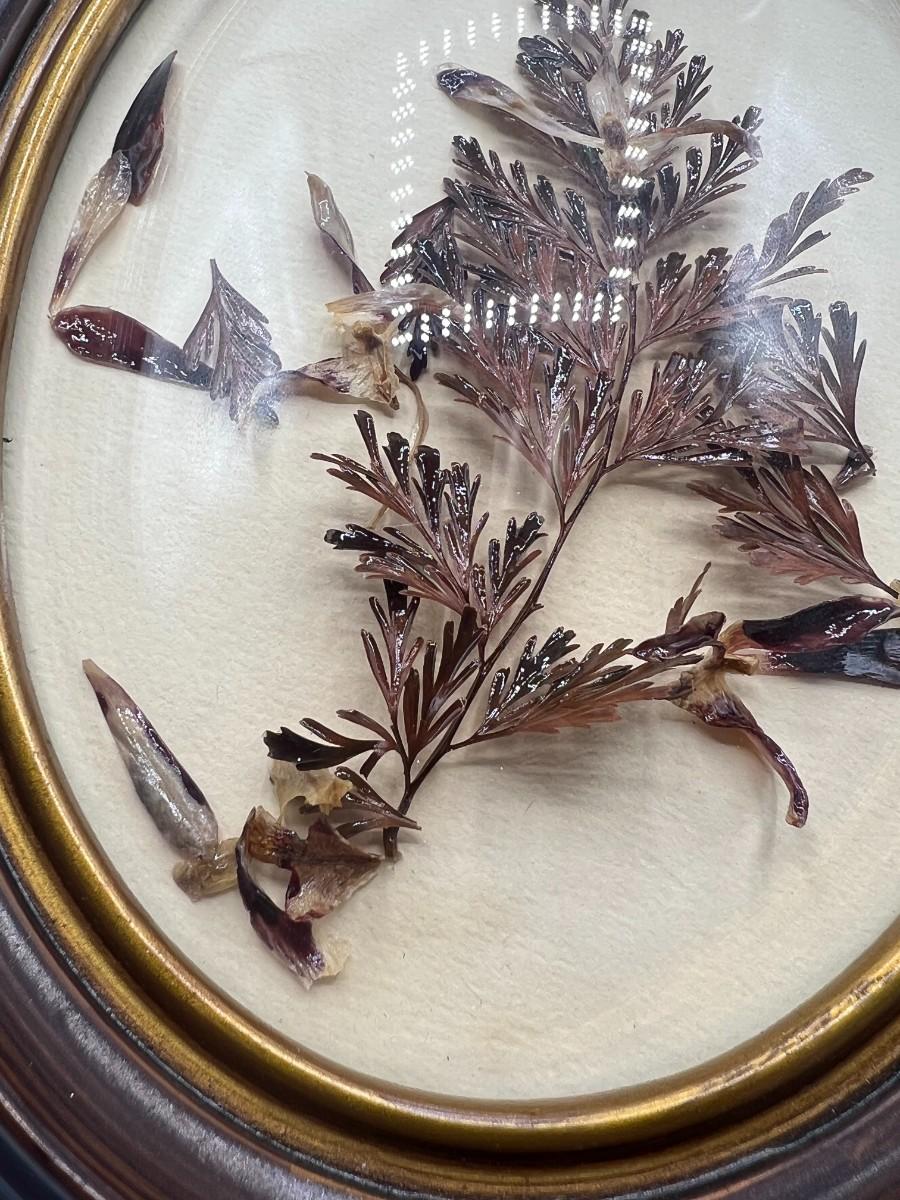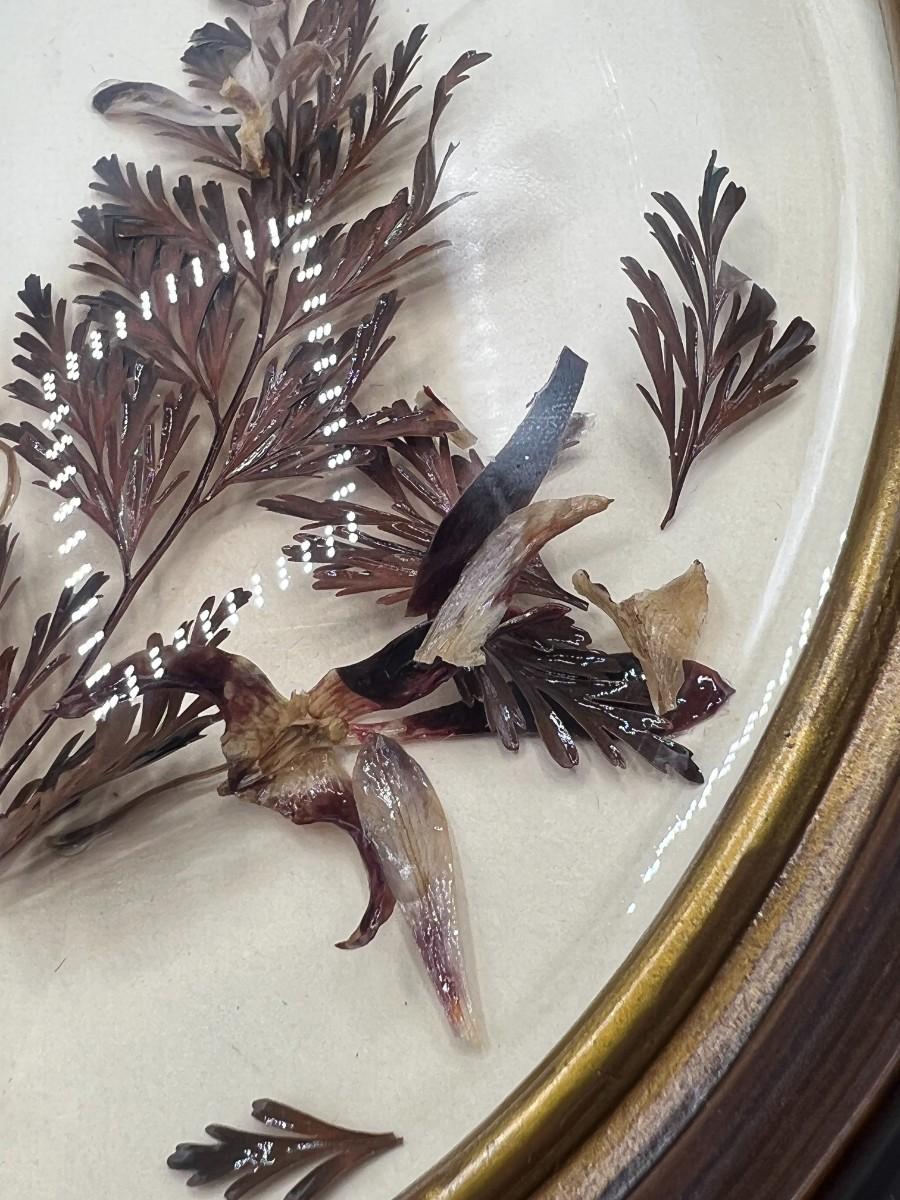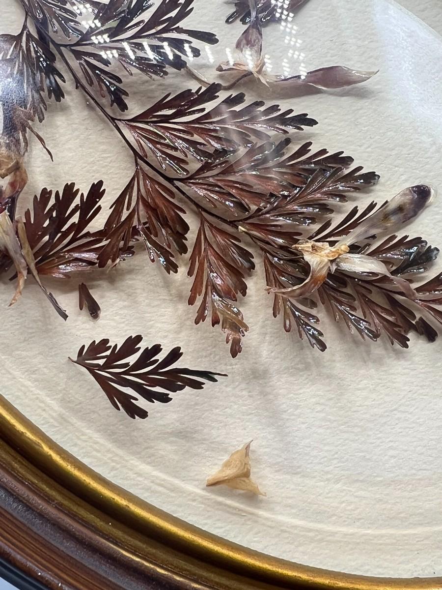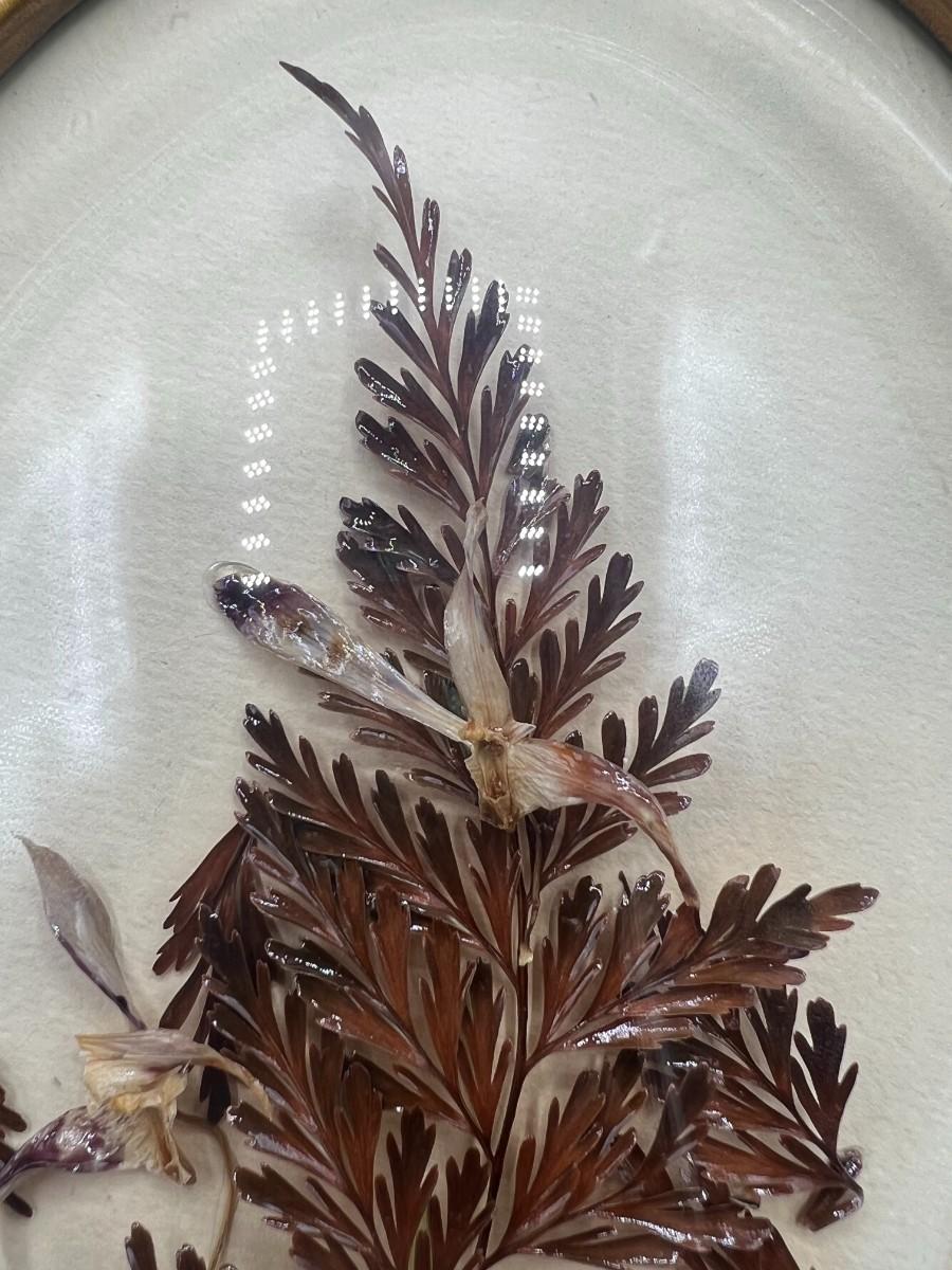 Retro Framed Petrified Hawaiian Orchid Art Piece Loose Leafs