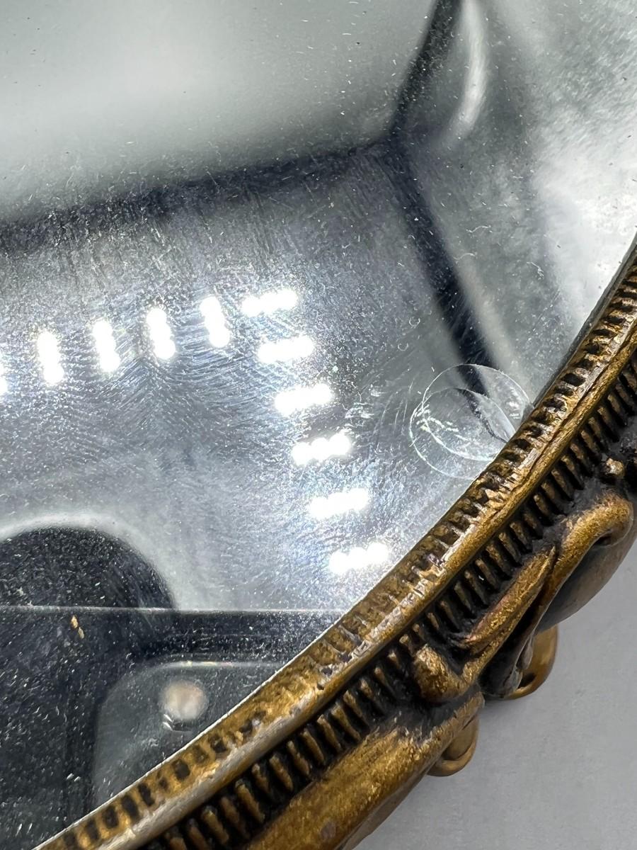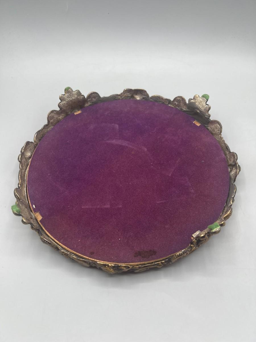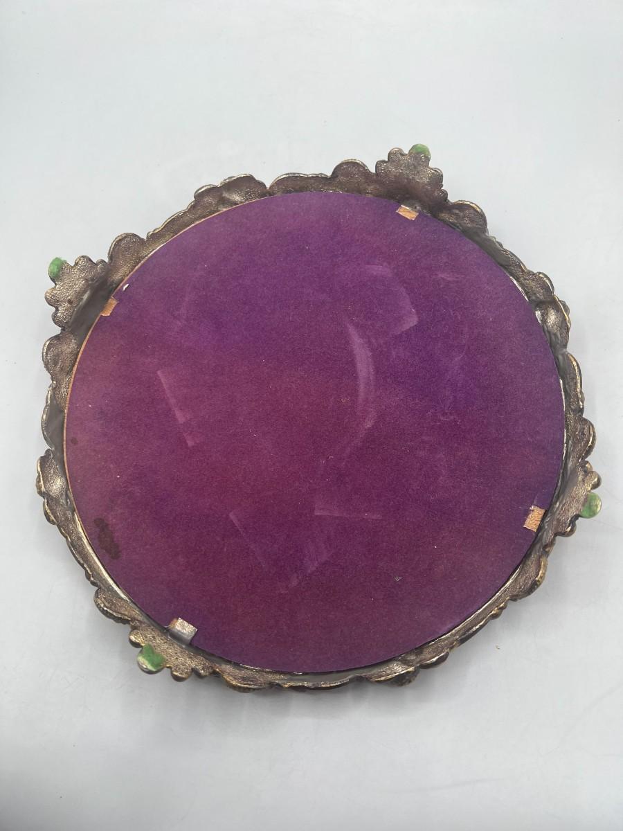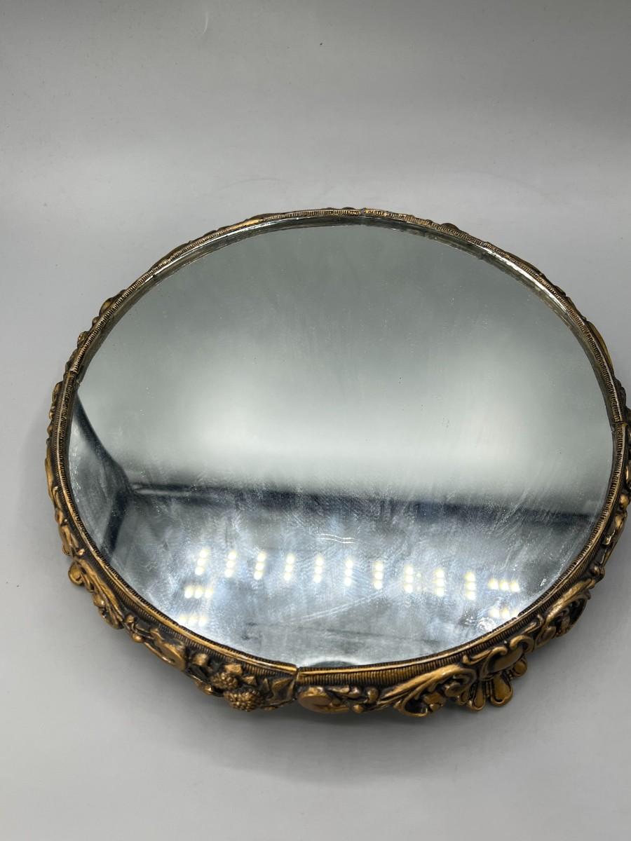 Vintage Hollywood Regency Victorian Mirrored Footed Perfume Vanity Makeup Tray. In vintage condition, some light signs of use. Beautiful art nouveau details to the base. About 10" diameter.