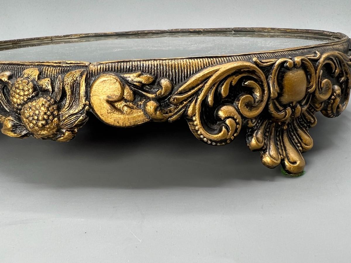 Vintage Hollywood Regency Victorian Mirrored Footed Perfume Vanity Makeup Tray