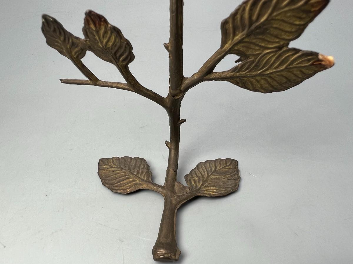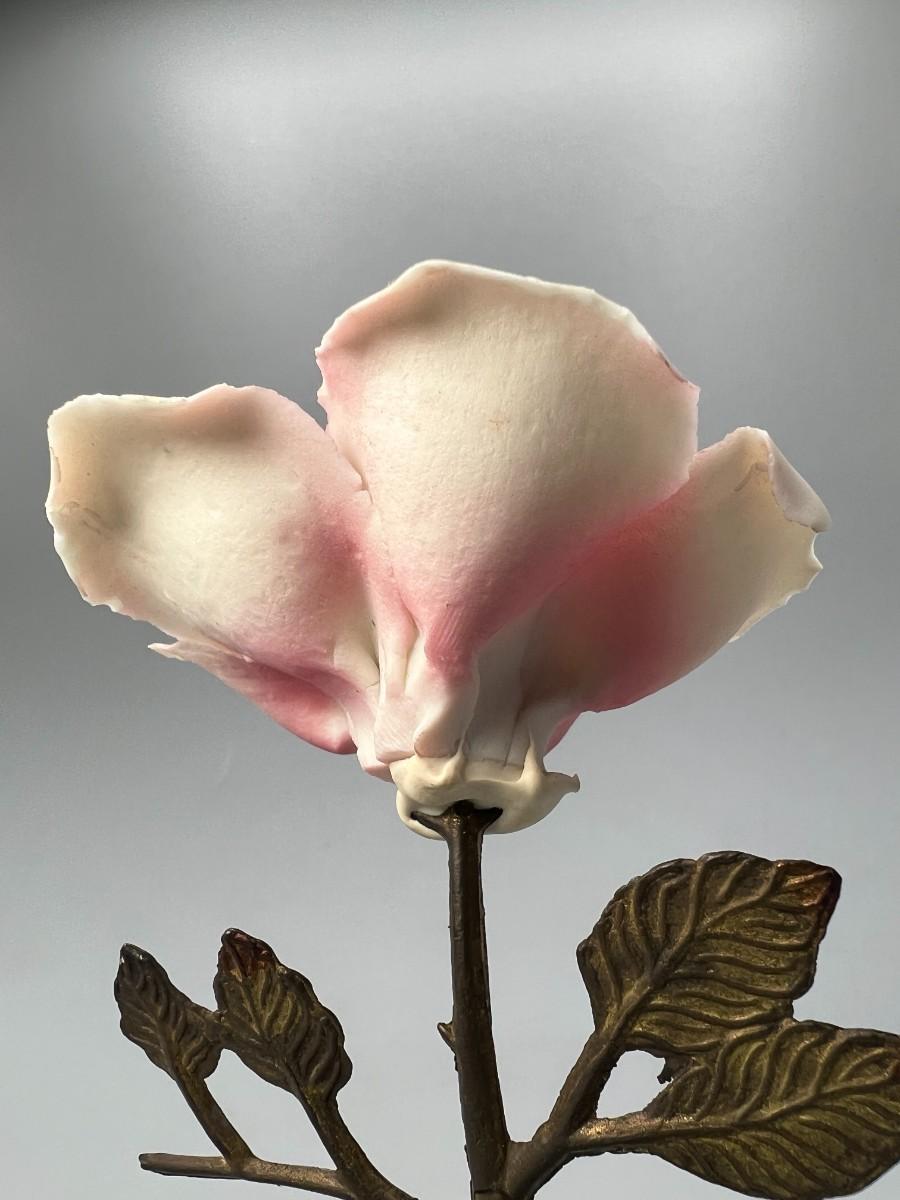 Vintage Brass and Porcelain Capodimonte Pink Rose Figurine