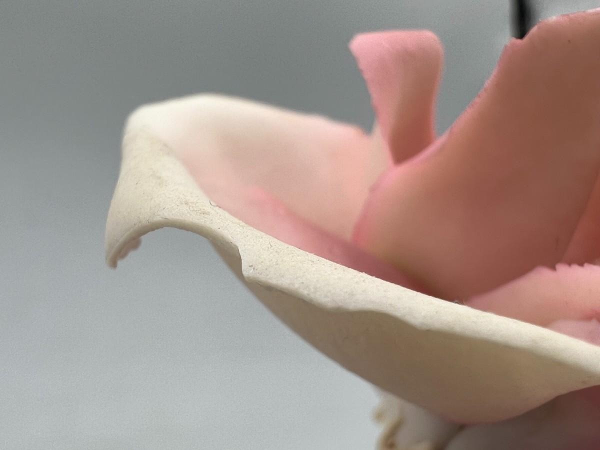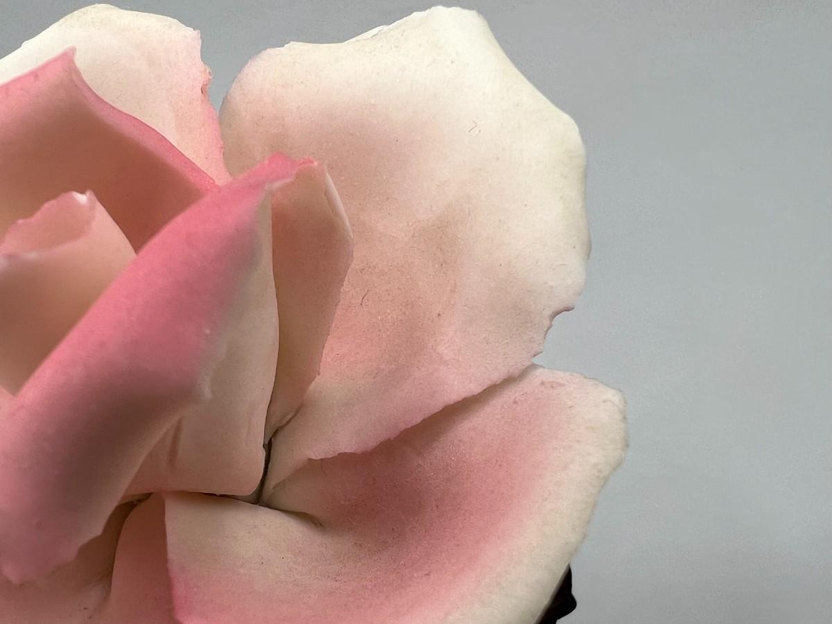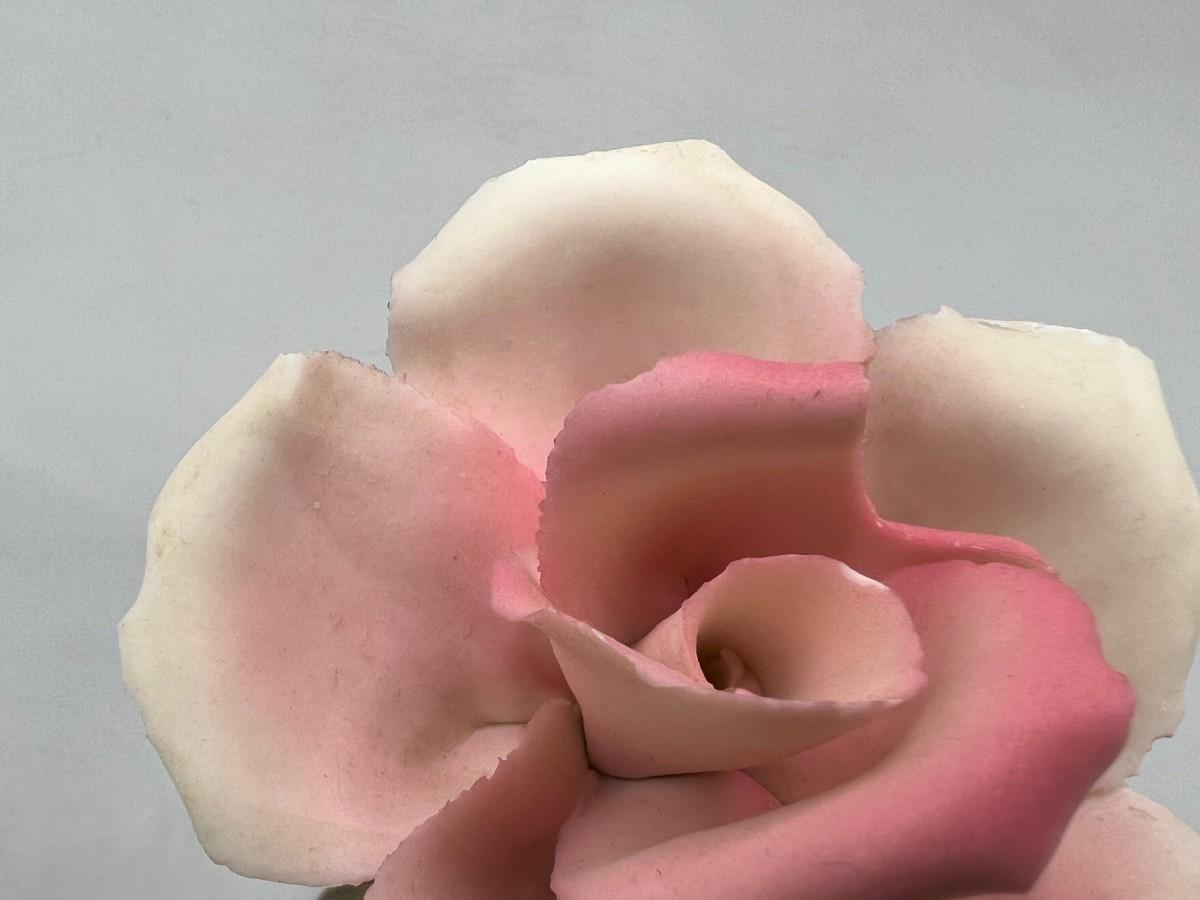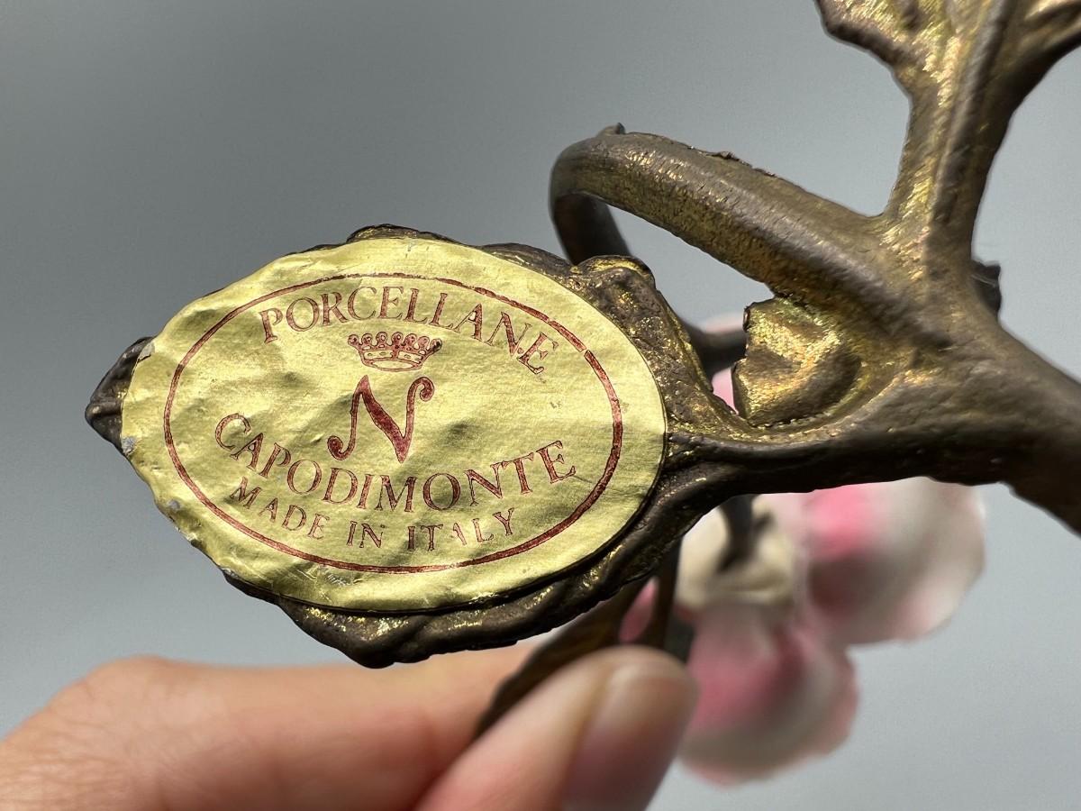 Vintage Brass and Porcelain Capodimonte Pink Rose Figurine. Original sticker attached. There is some chipping along petal edge. Under 5" size.