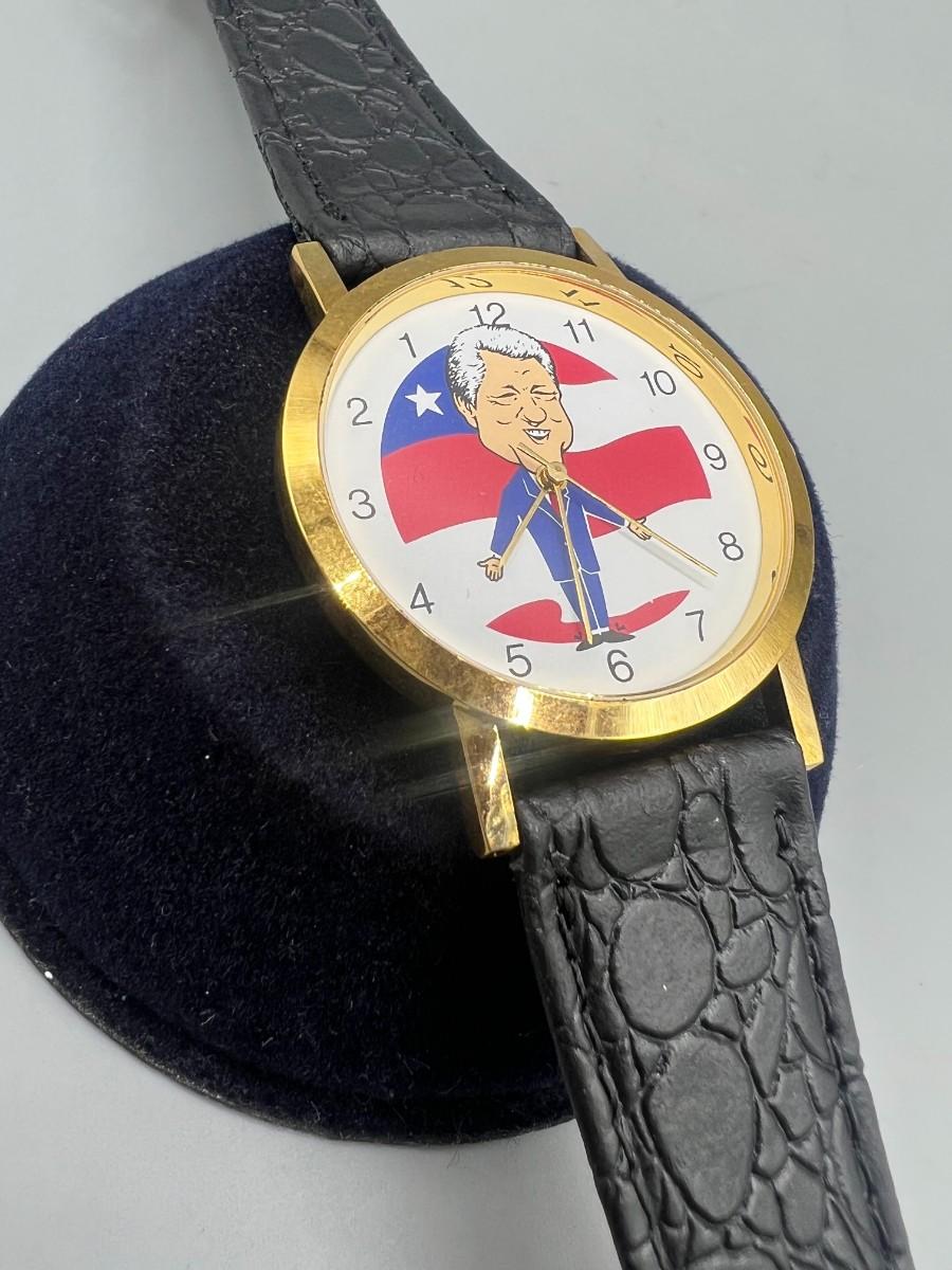 Retro President Bill Clinton Novelty Wristwatch Watch Timepiece. Not running, probably needs a battery change. In good condition.