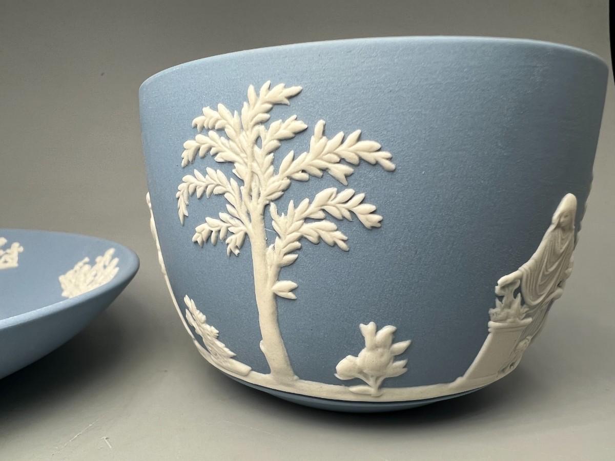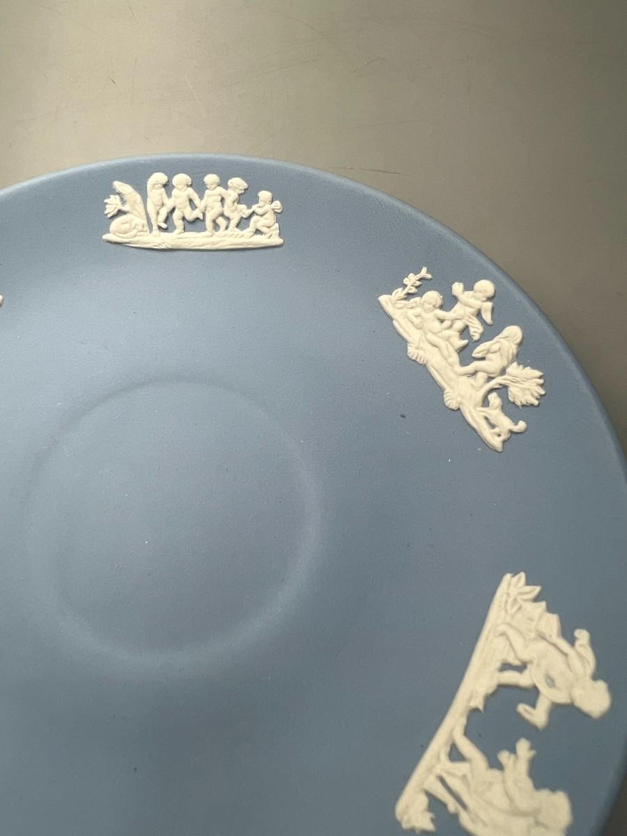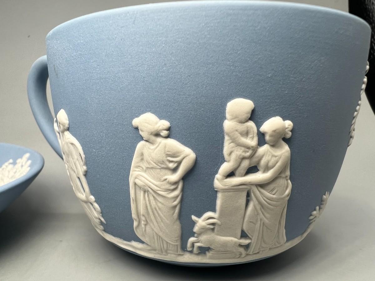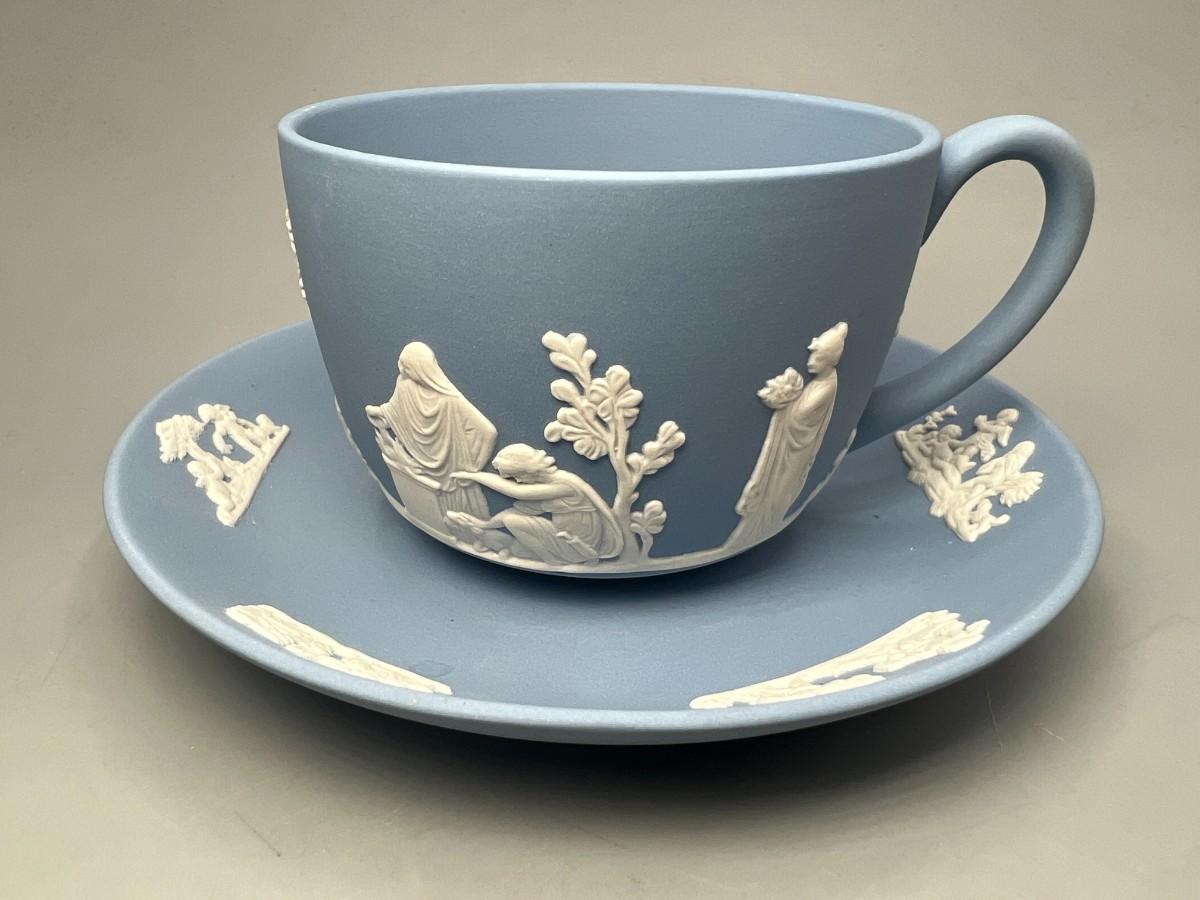 Vintage Wedgewood Pale Blue Jasperware Sacrifice Figures Cherubs Tea Cup & Saucer