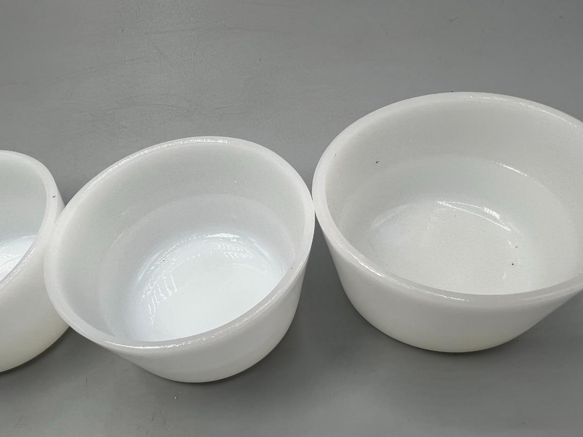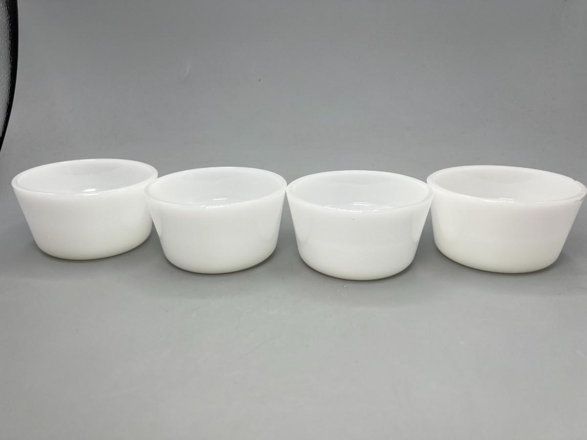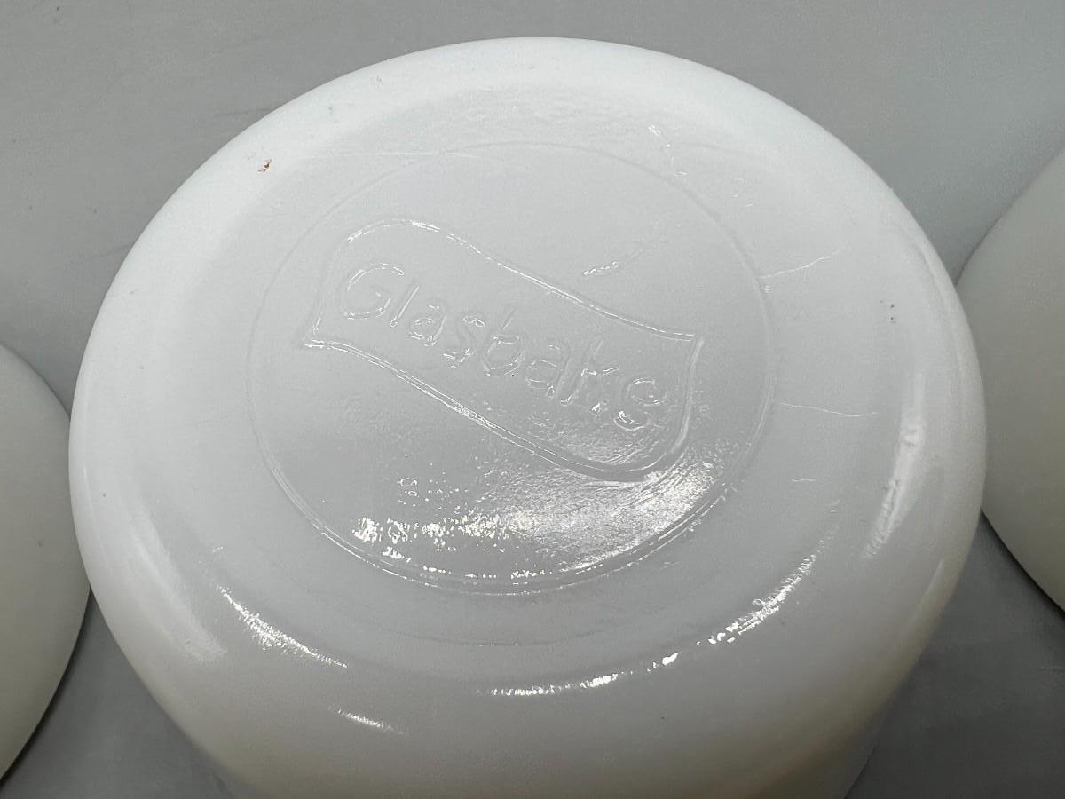 Vintage Set of Glasbake Milk Glass Ramekins Baking Custard Cups