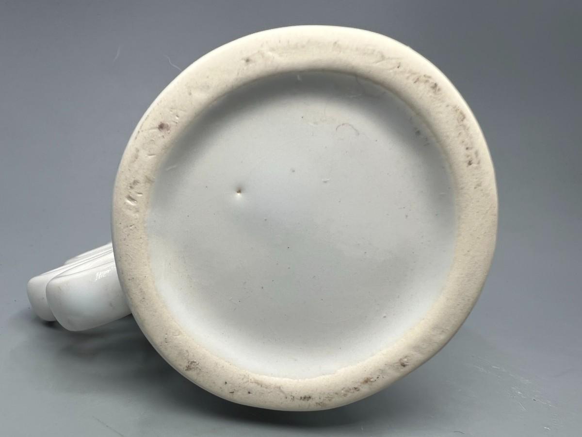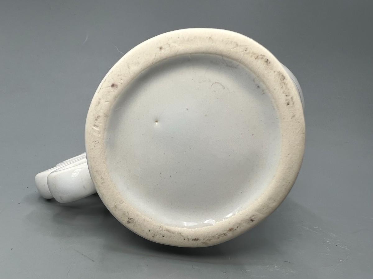 Does not come with a lid. There is a crack on the lip of the lid, but there is no significant damage and is in overall good displayable or usable condition. Check pictures for more details and for sizing.