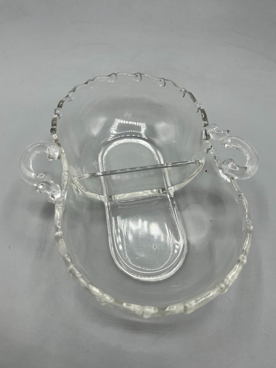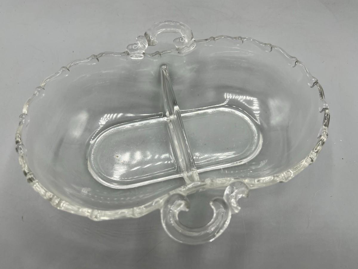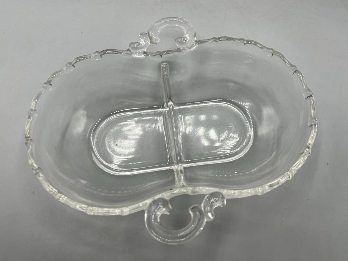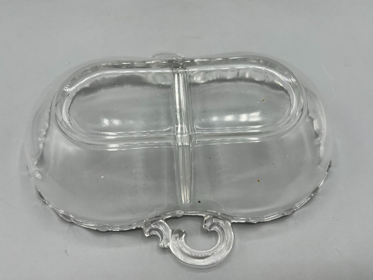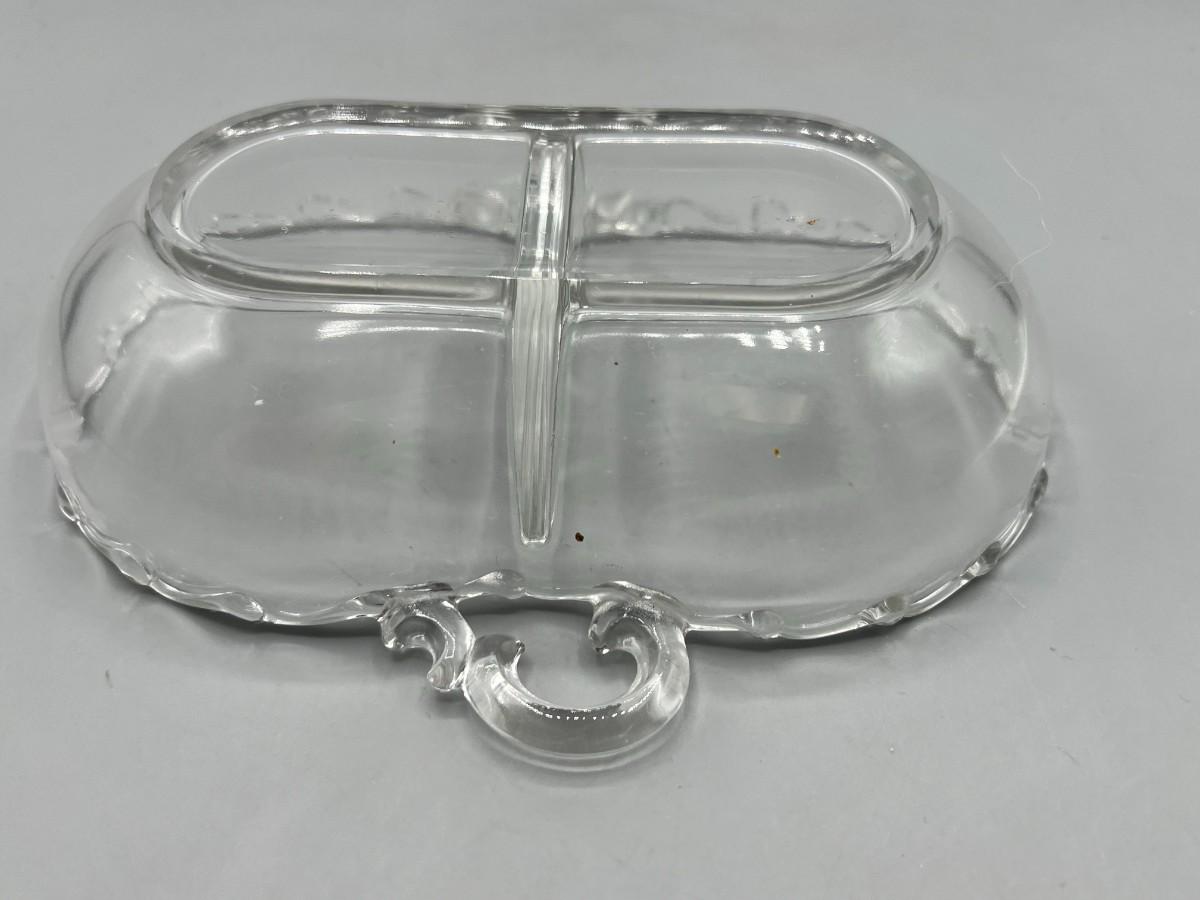 Vintage Mid Century Modern Clear Glass Split Dinnerware Serving Dish