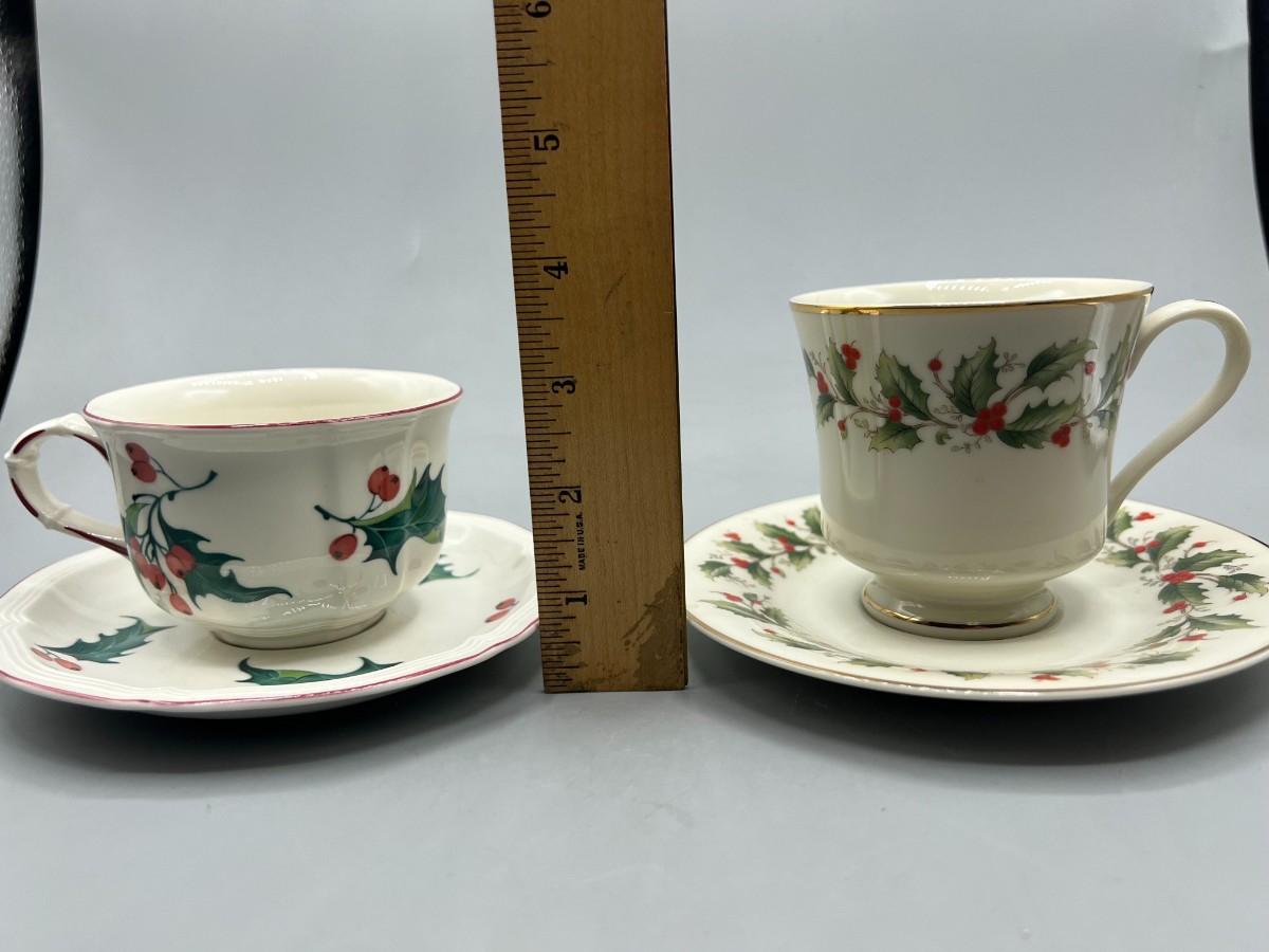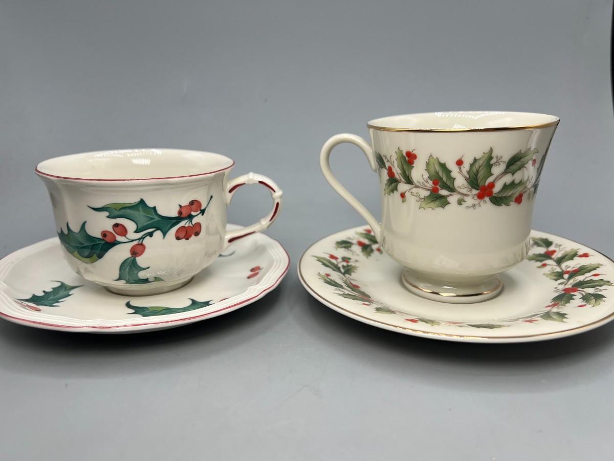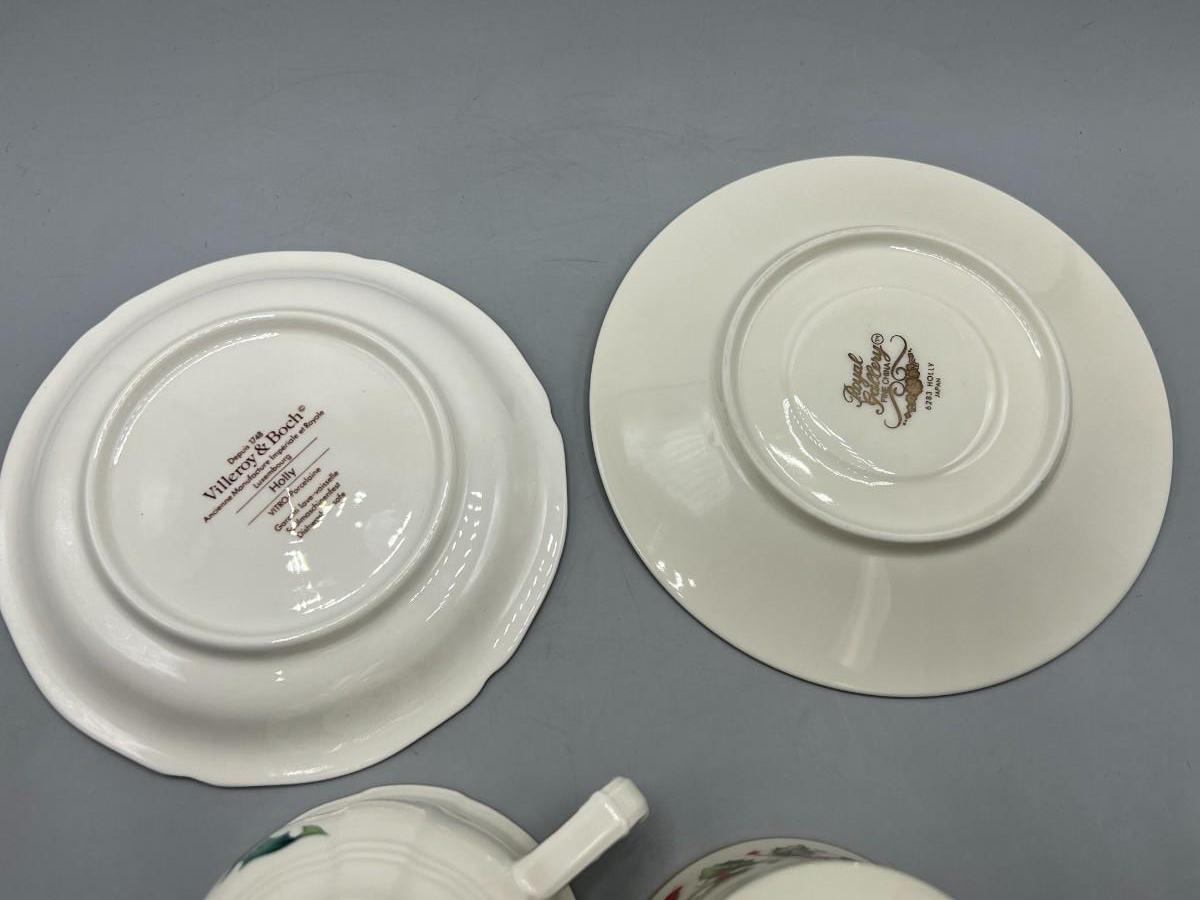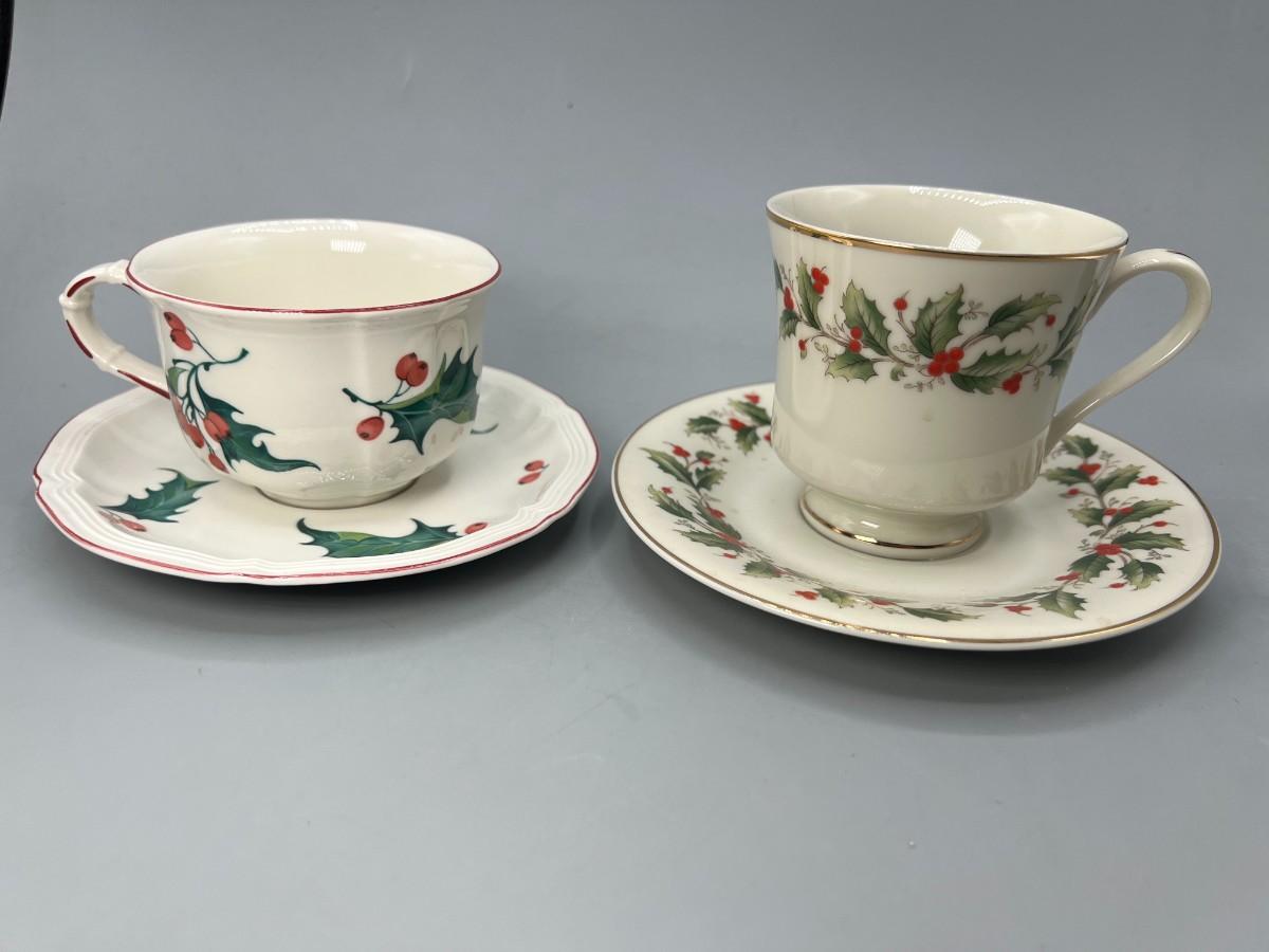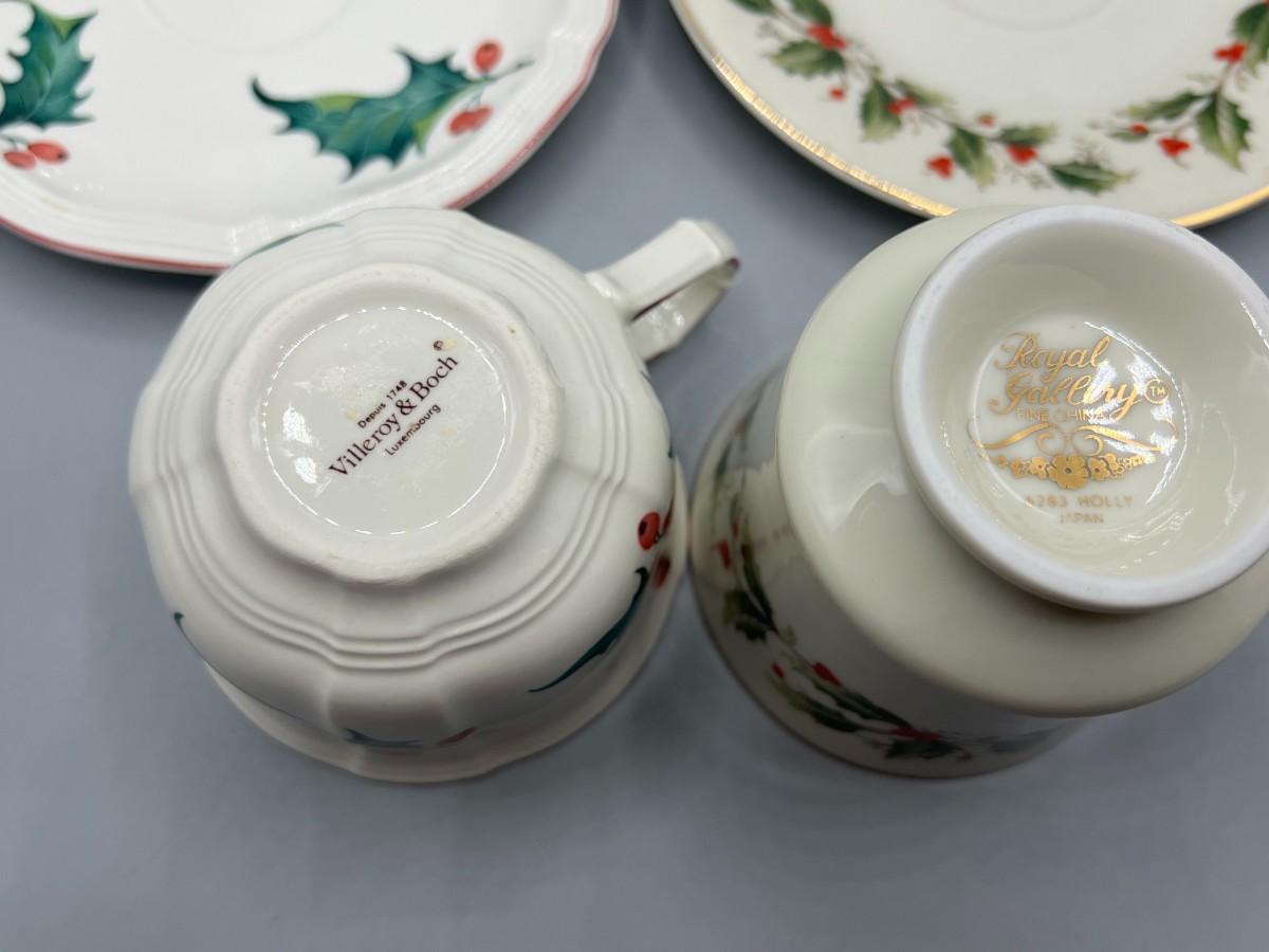 Retro Holiday Christmas Motif Holly Villeroy & Boch and Royal Gallery Fine China Tea Cups & Saucers