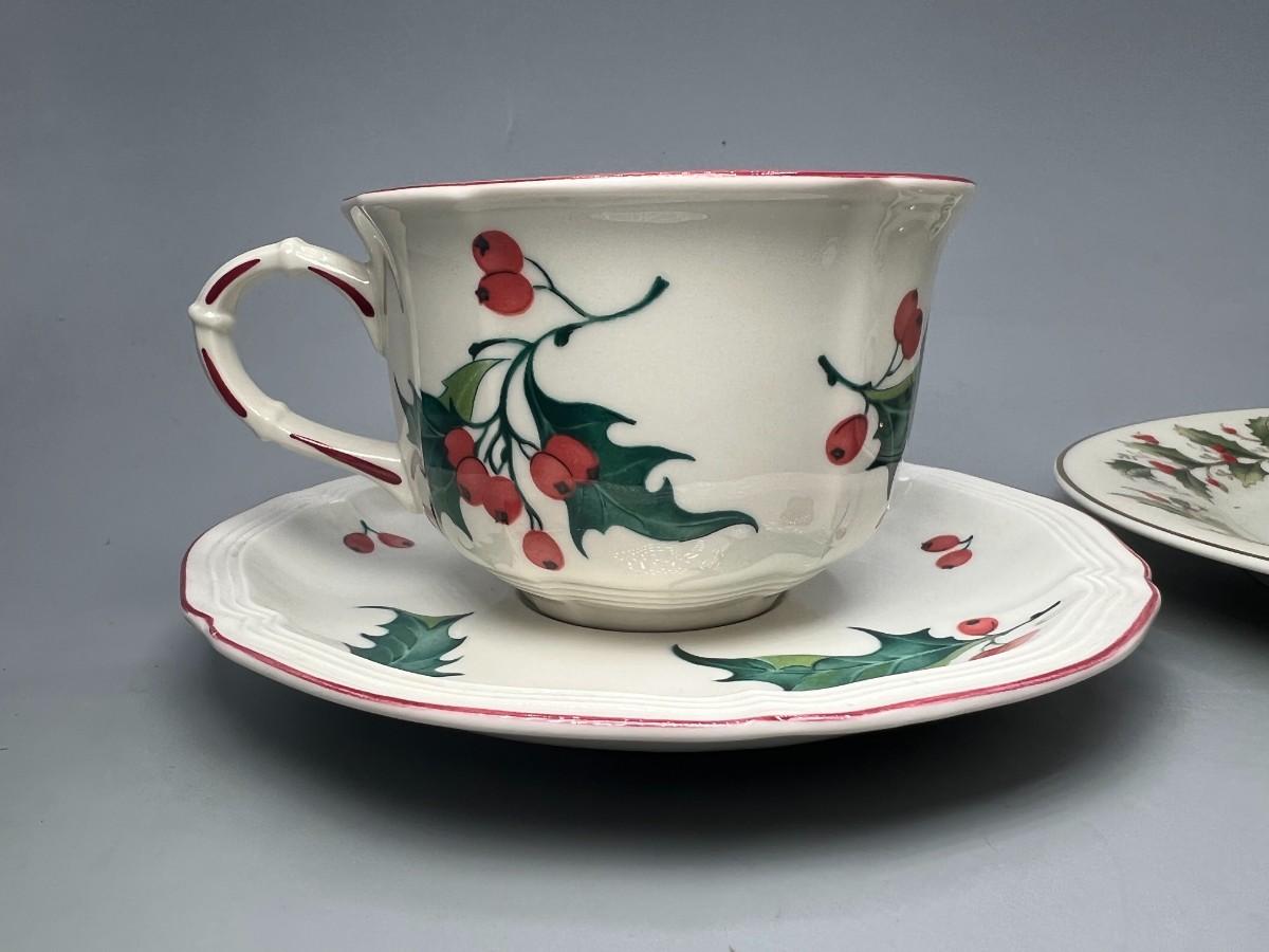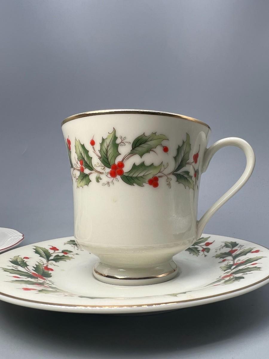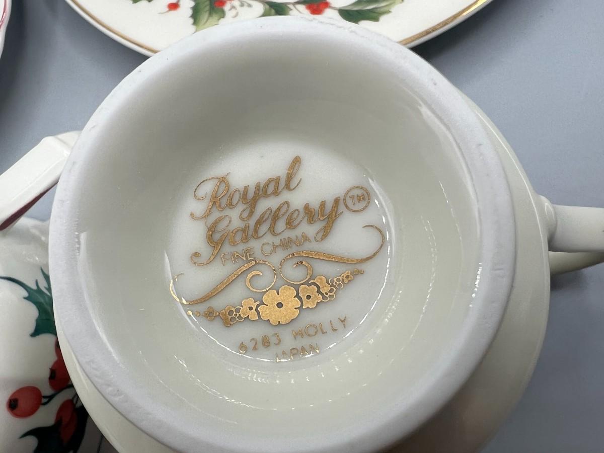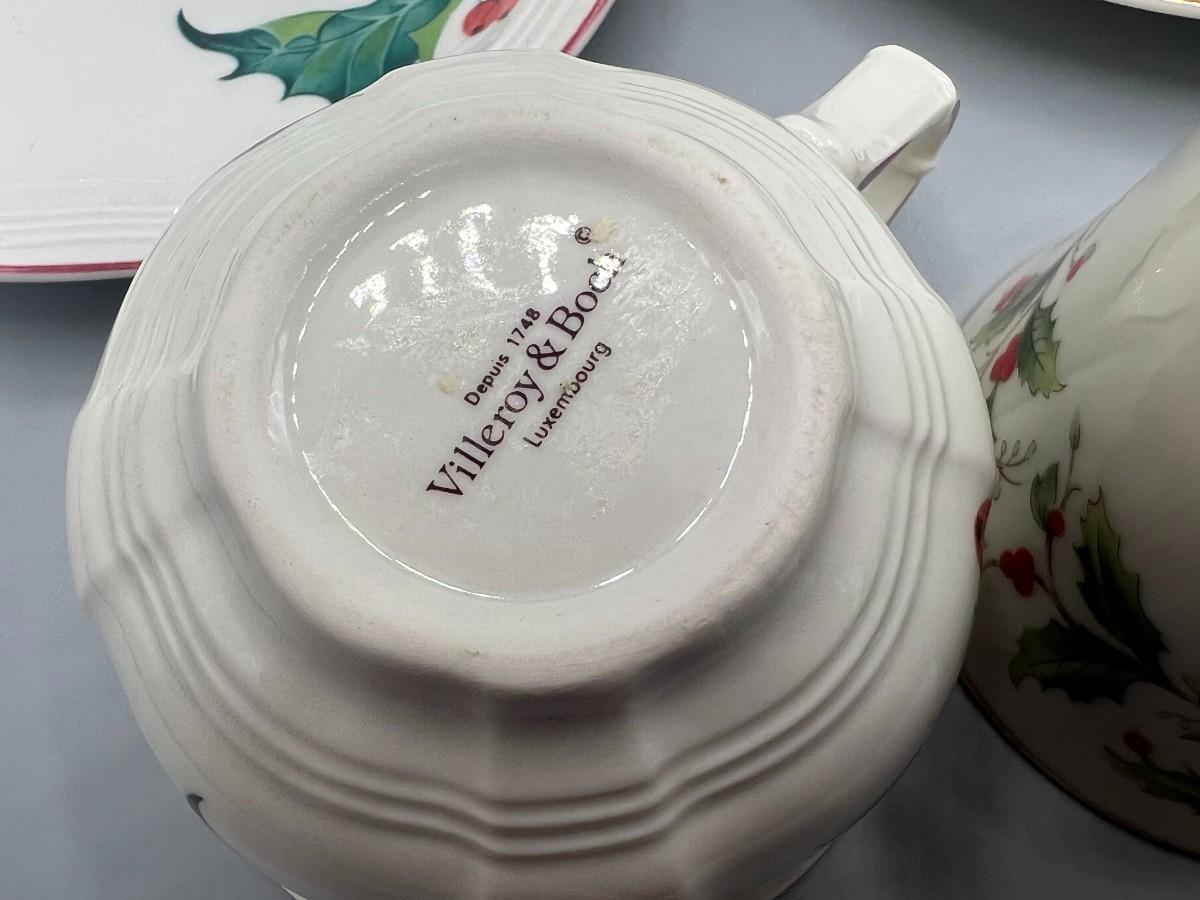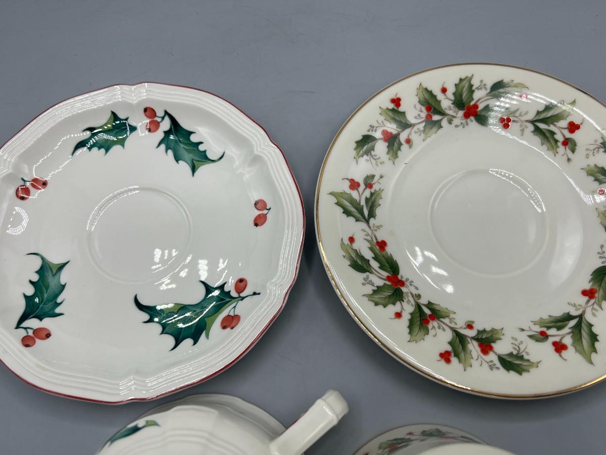 Retro Holiday Christmas Motif Holly Villeroy & Boch and Royal Gallery Fine China Tea Cups & Saucers