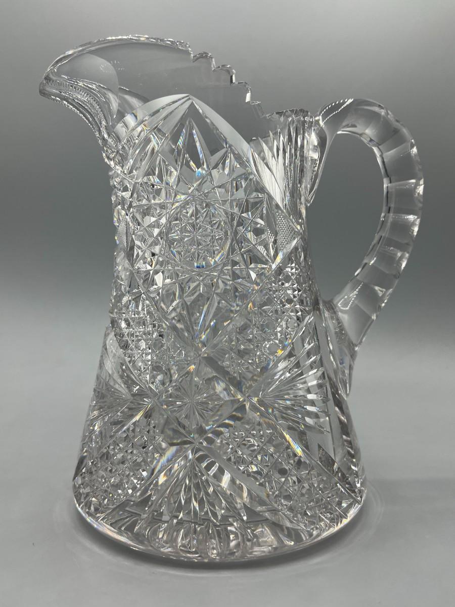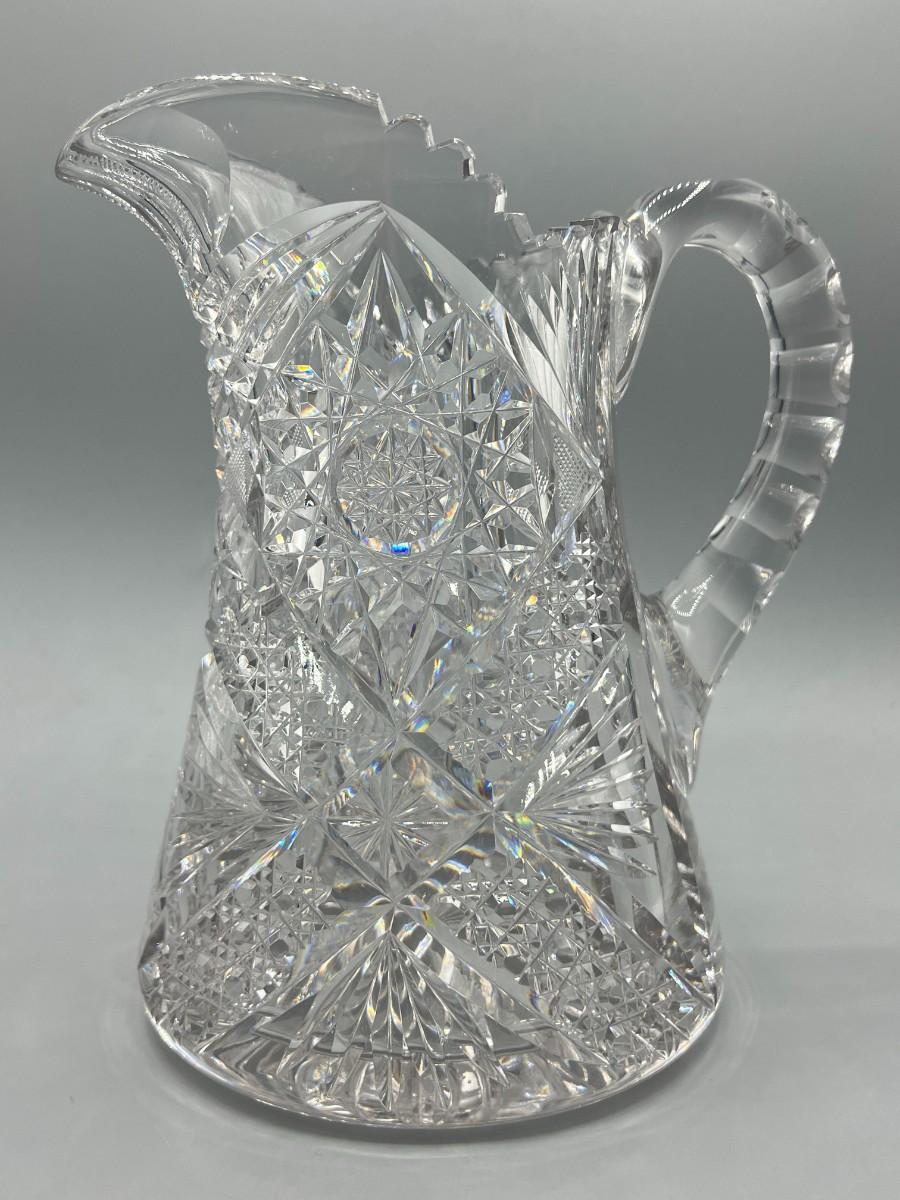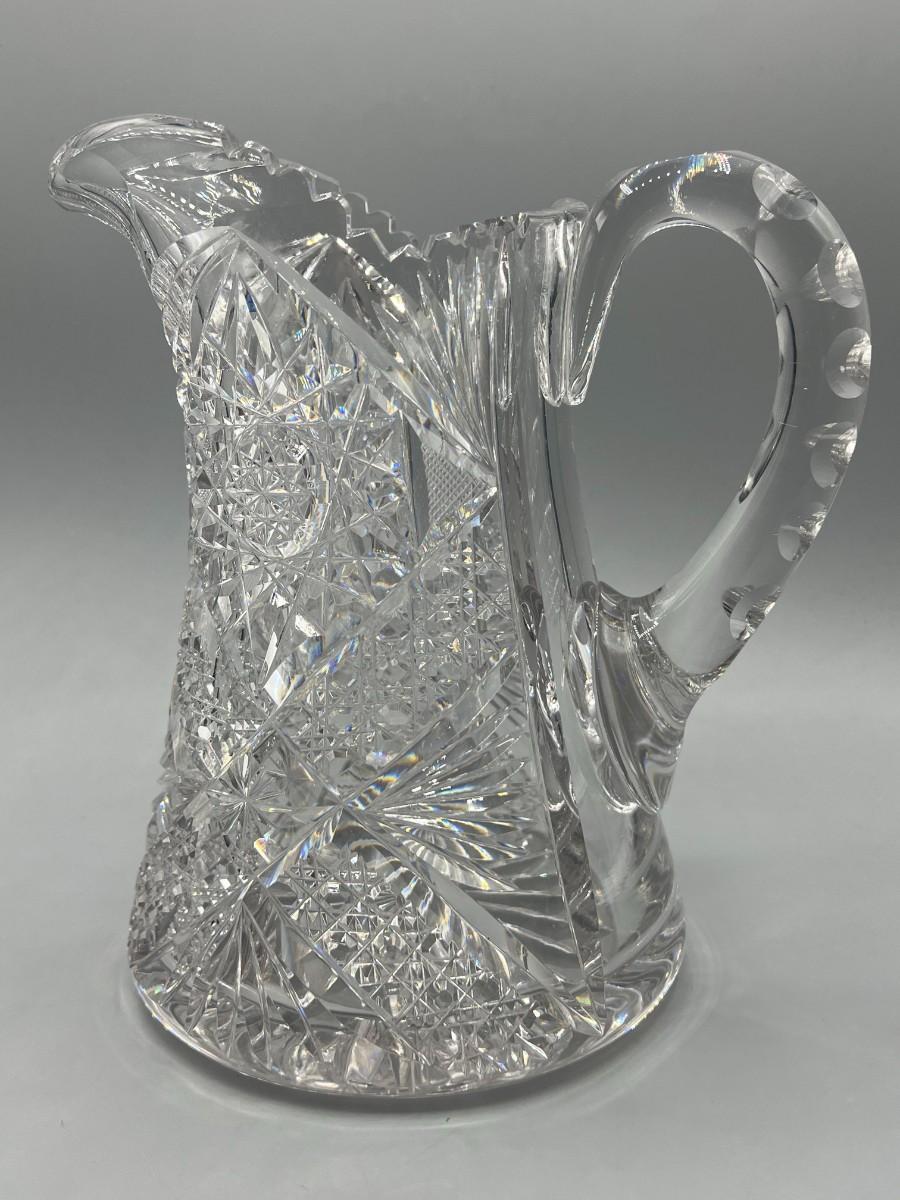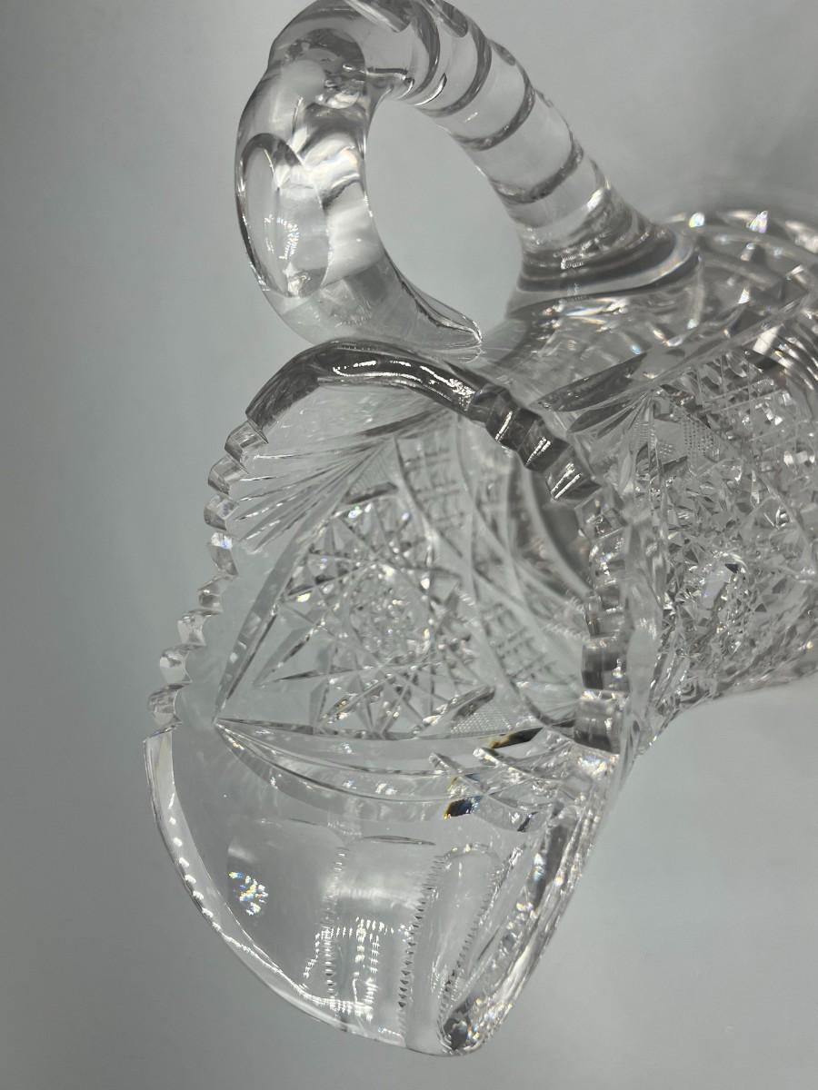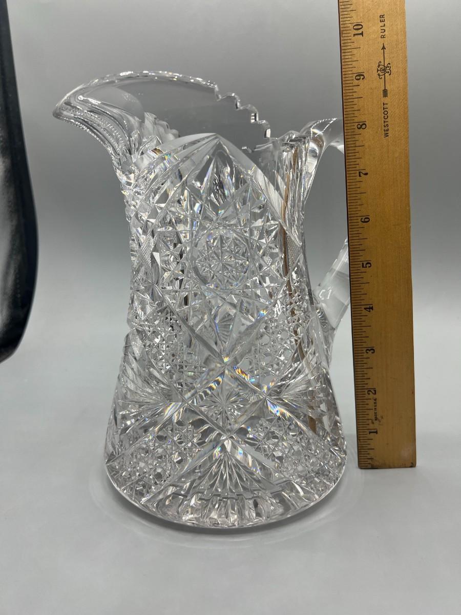 Vintage American Brilliant Style Crystal Cut Glass Heavy Mid Century Sawtooth Pitcher