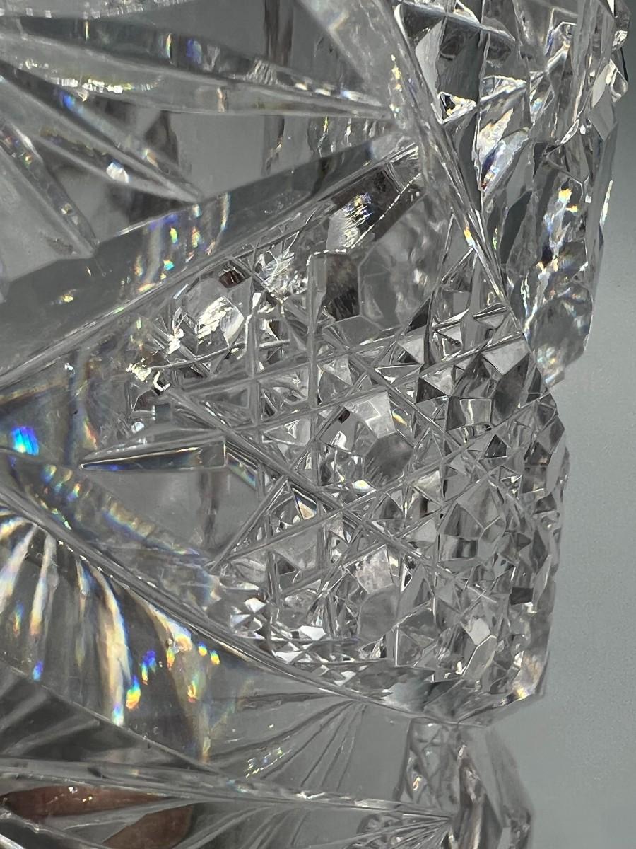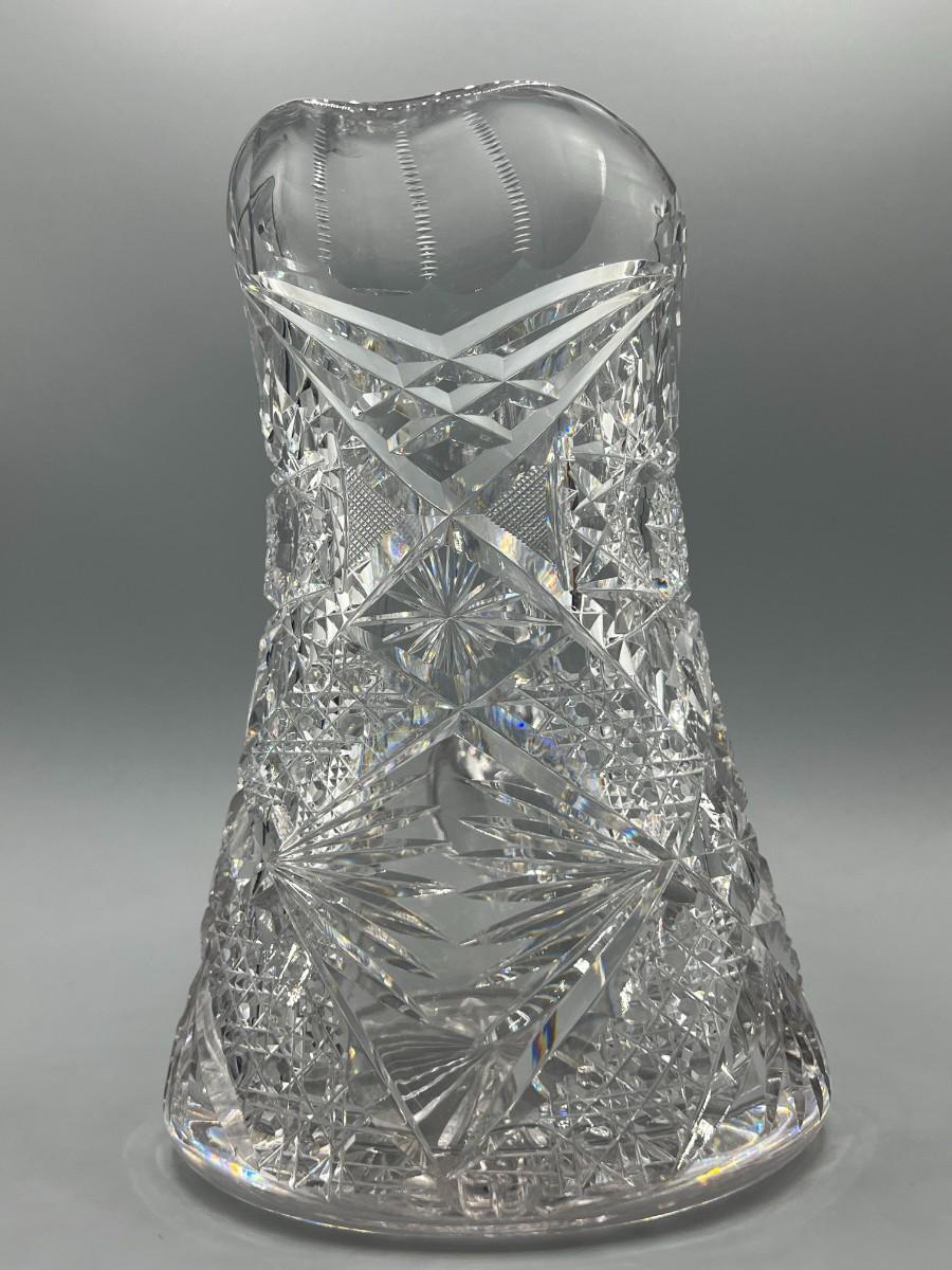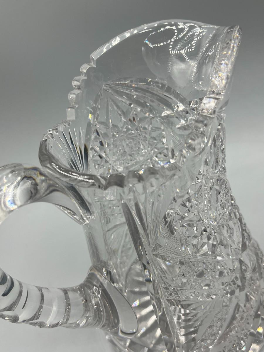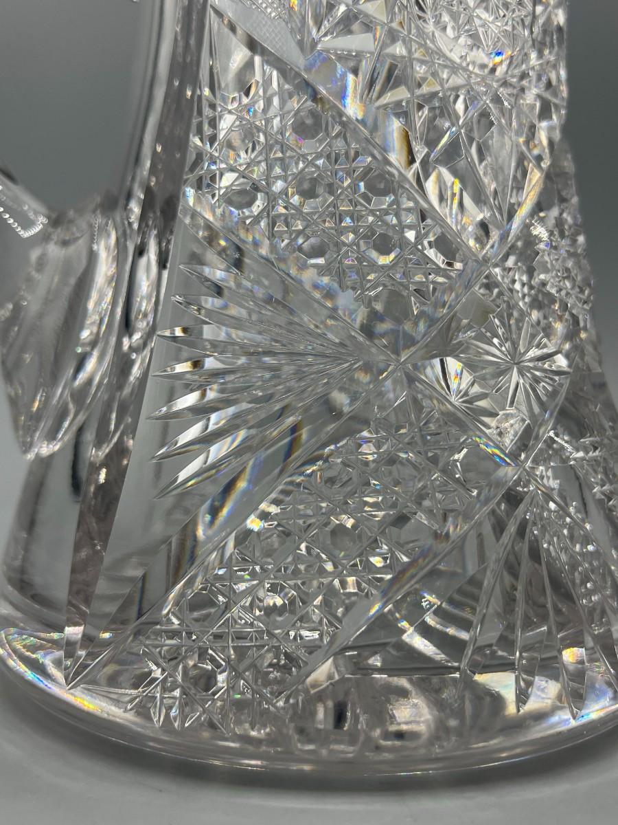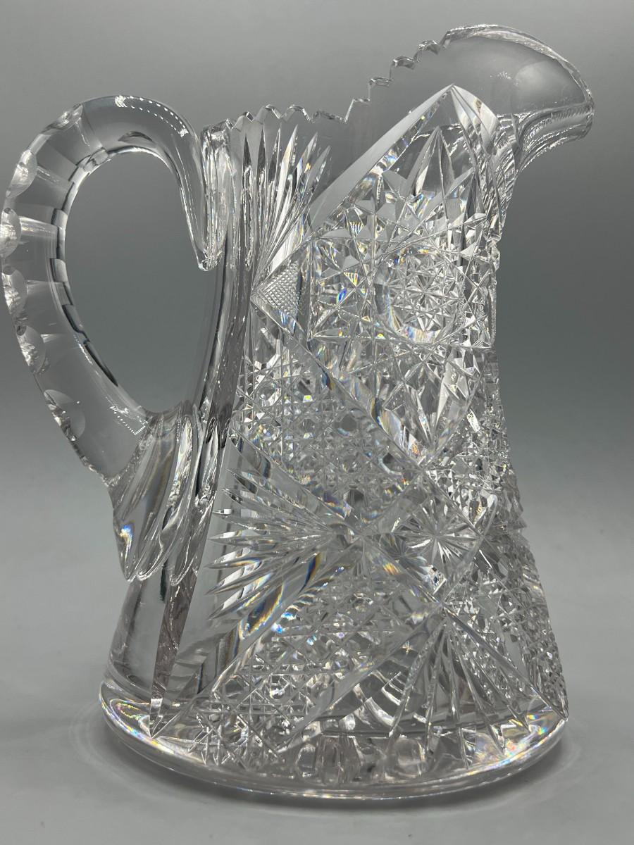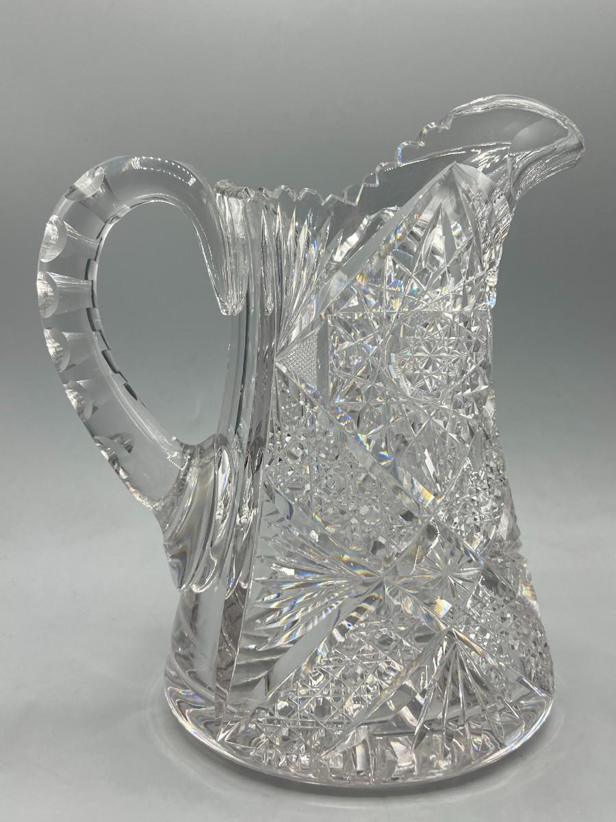 Vintage American Brilliant Style Crystal Cut Glass Heavy Mid Century Sawtooth Pitcher