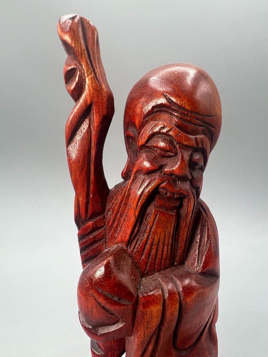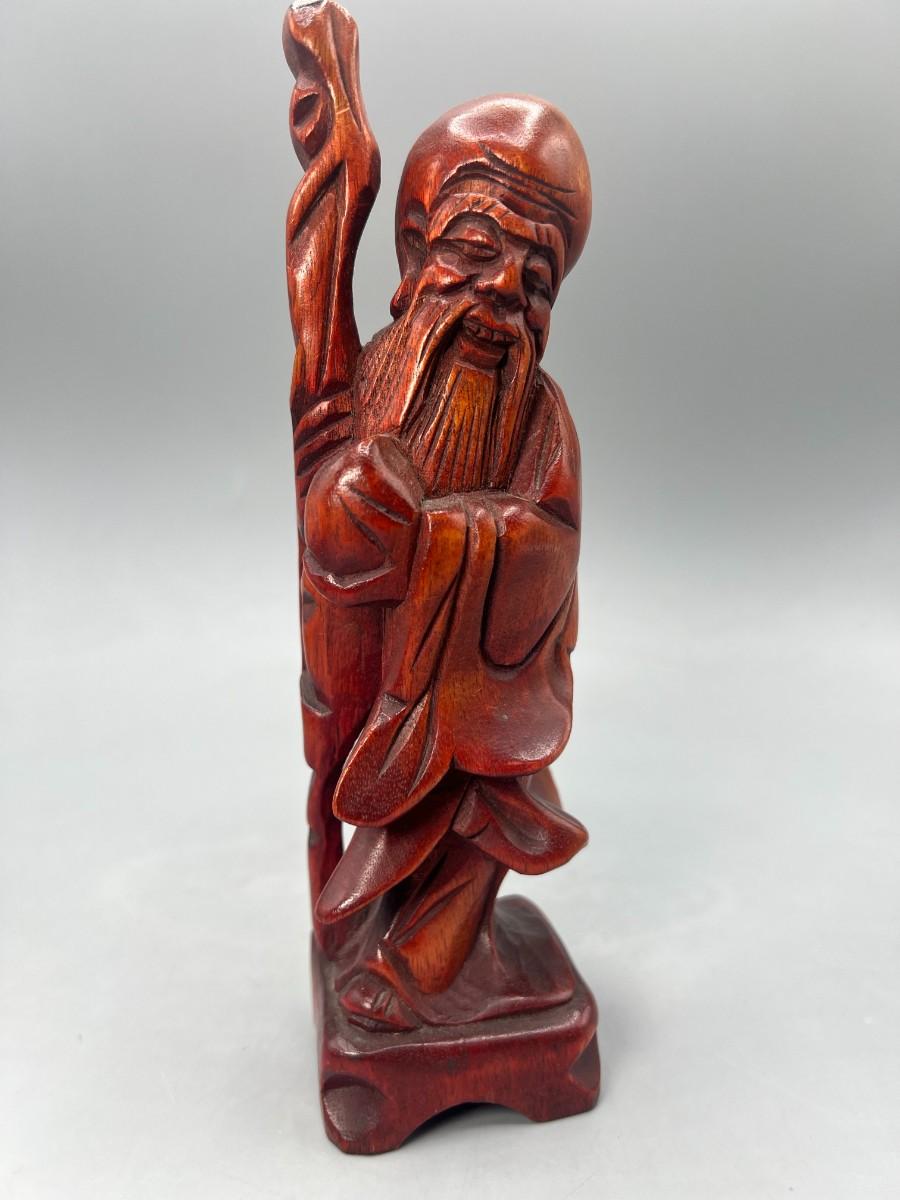 Vintage Republic of China Carved Elder Figurine Wood Statue