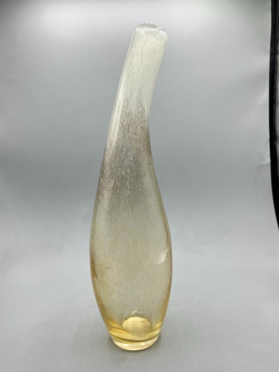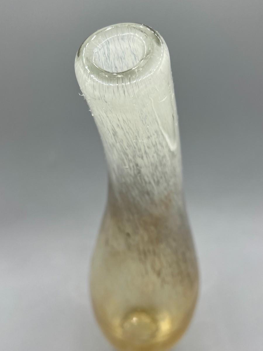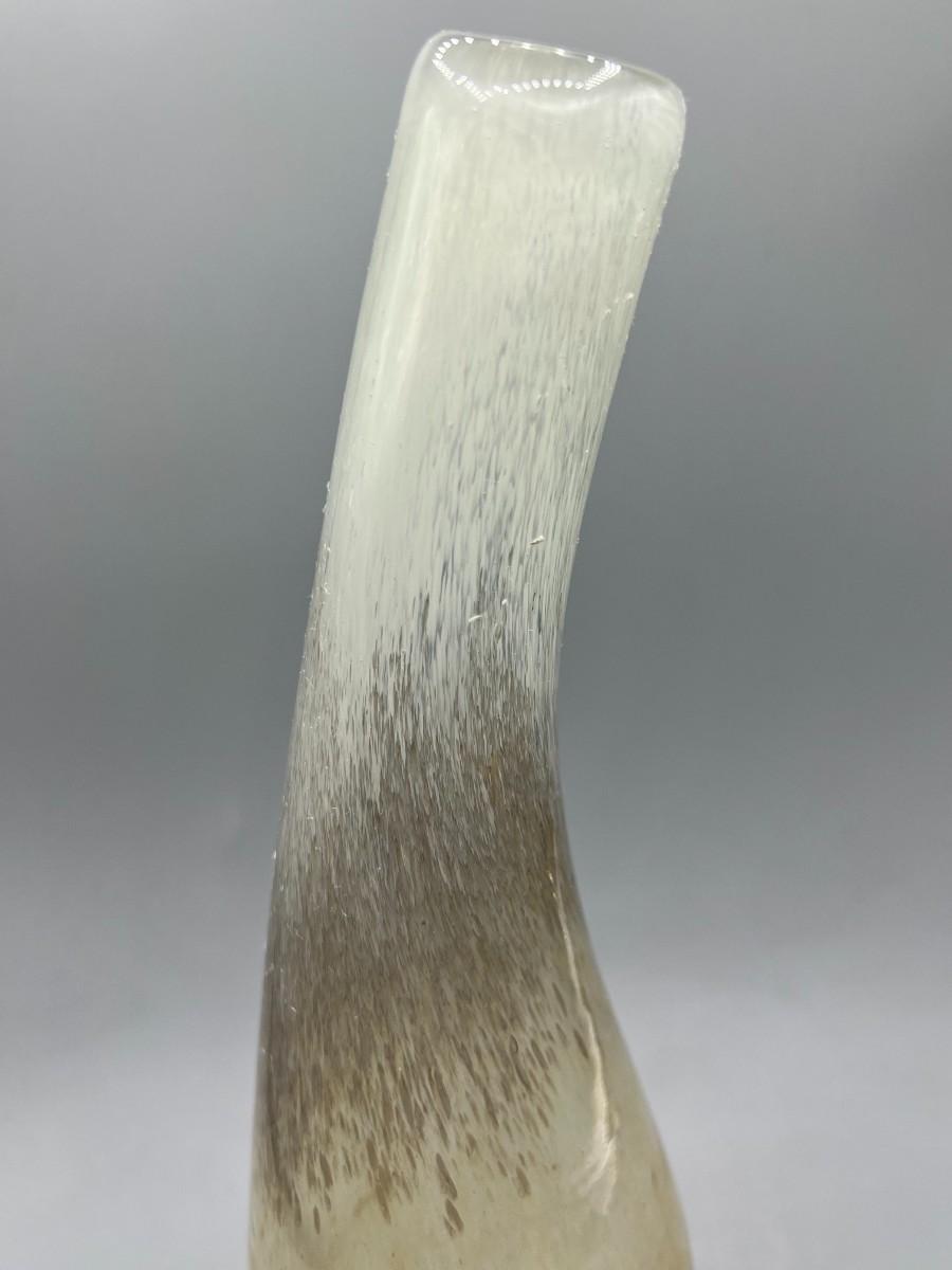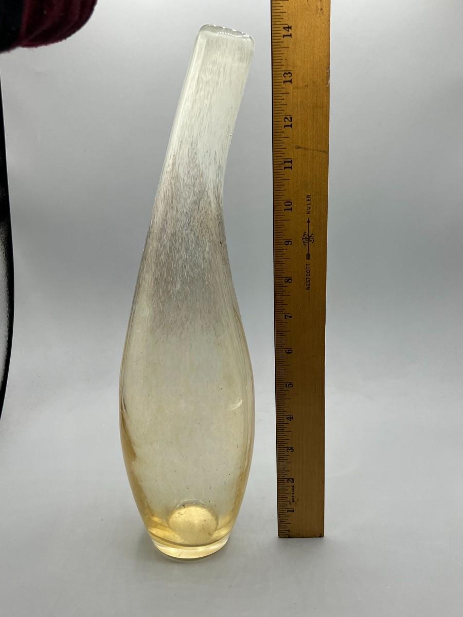 Vintage Hand Blown Curved Spout Clear Splatter Art Glass Vase Pour Container