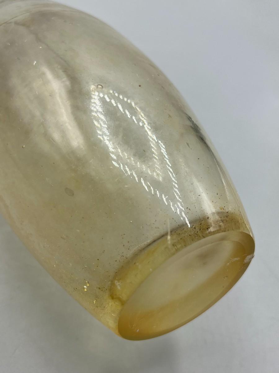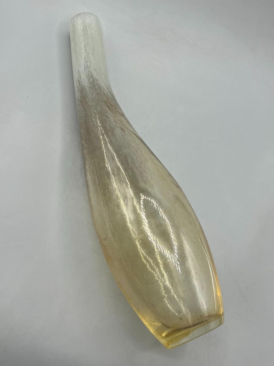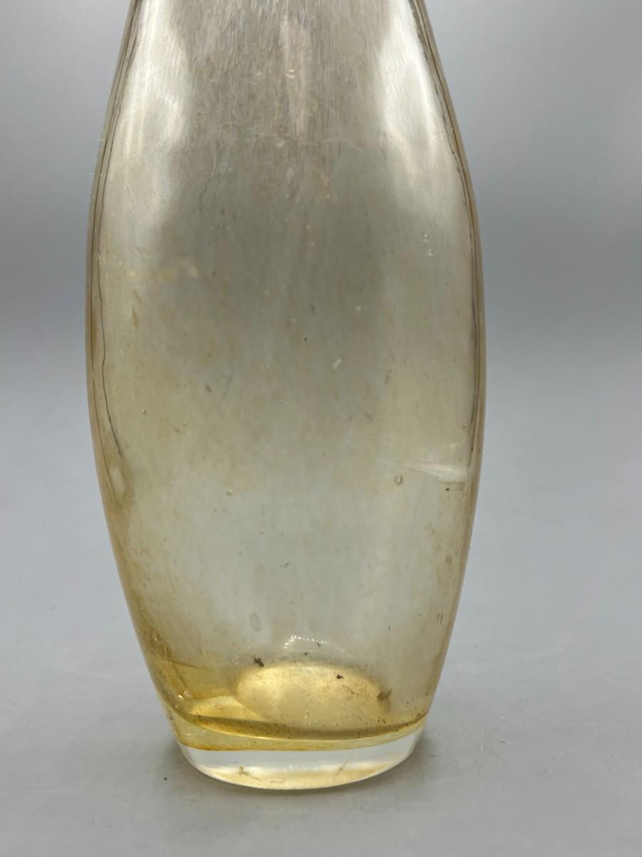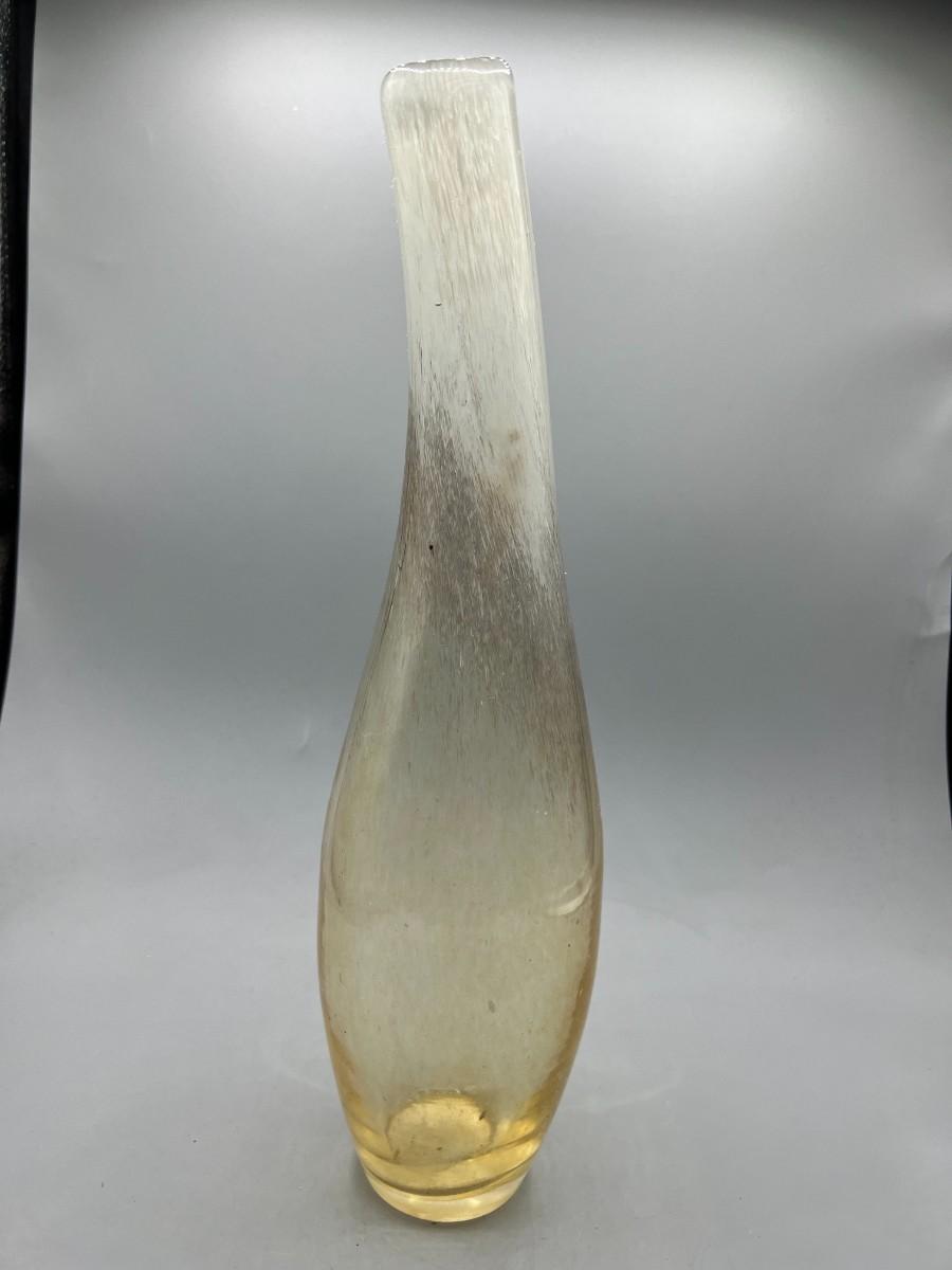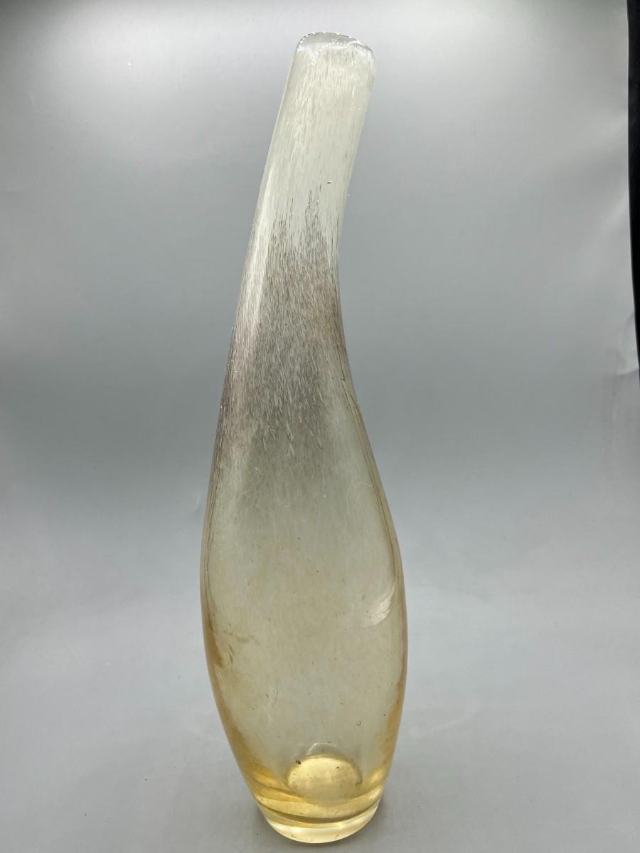 Vintage Hand Blown Curved Spout Clear Splatter Art Glass Vase Pour Container