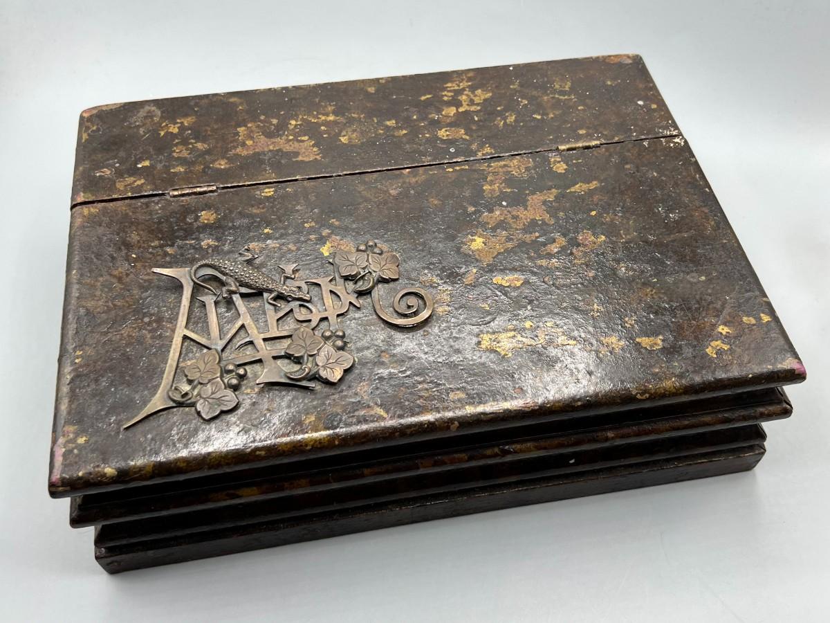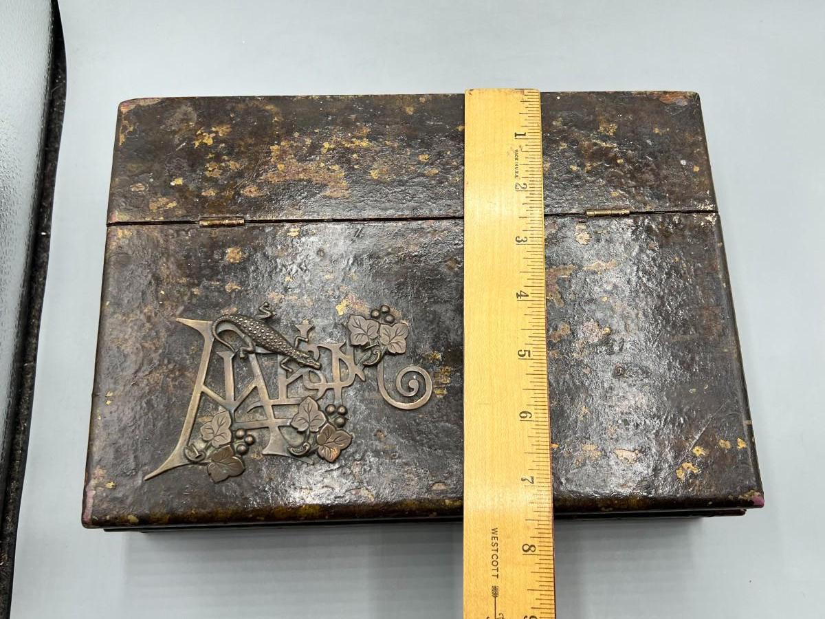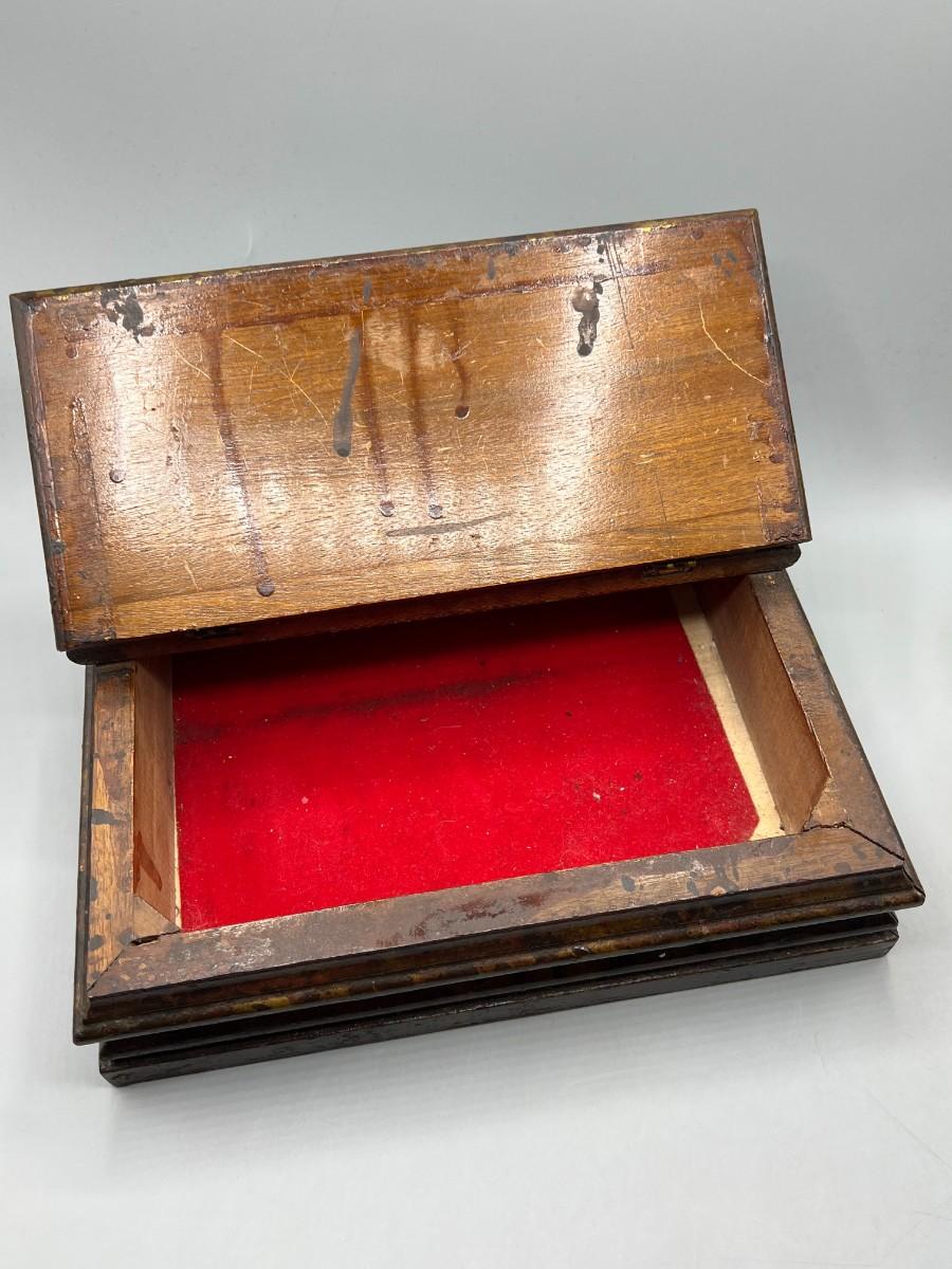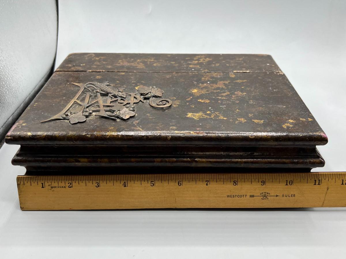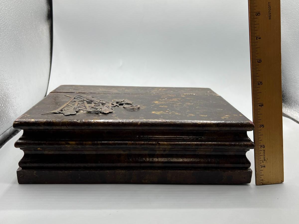 Vintage Art Deco Wooden Metal Insignia Jewelry Box