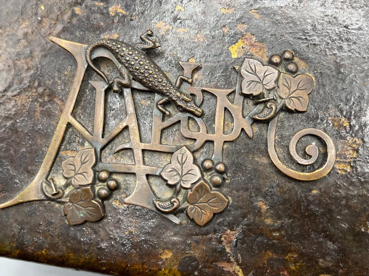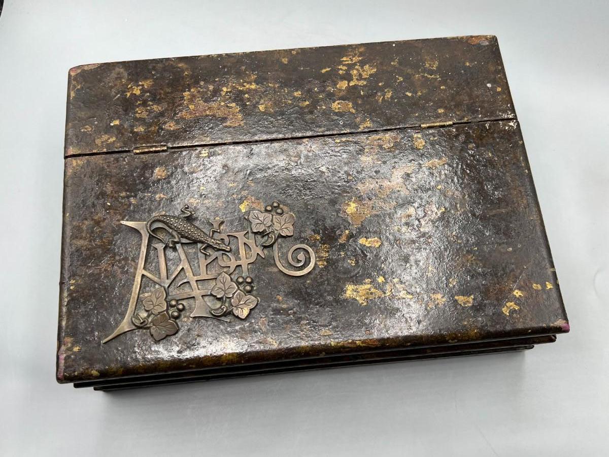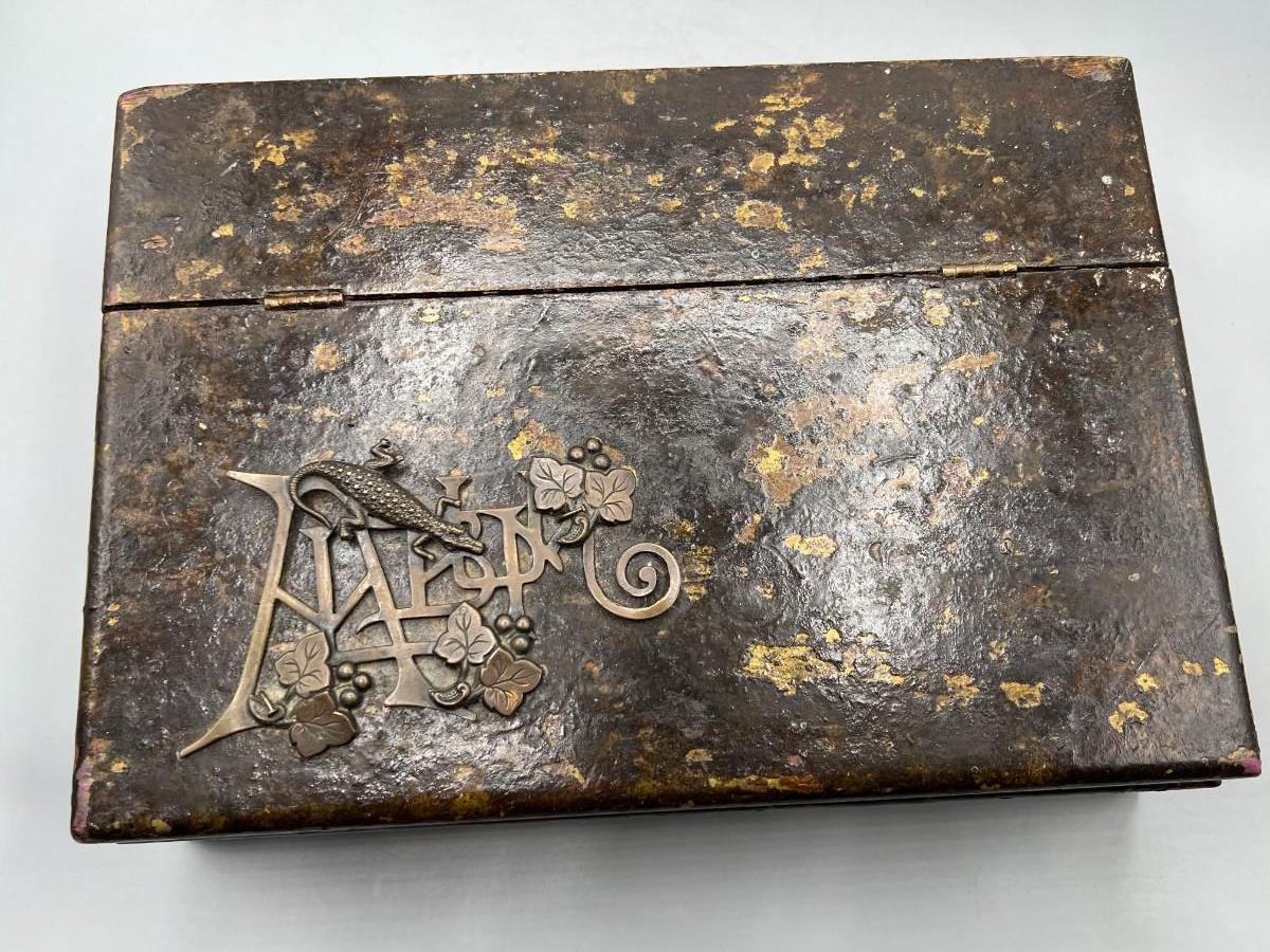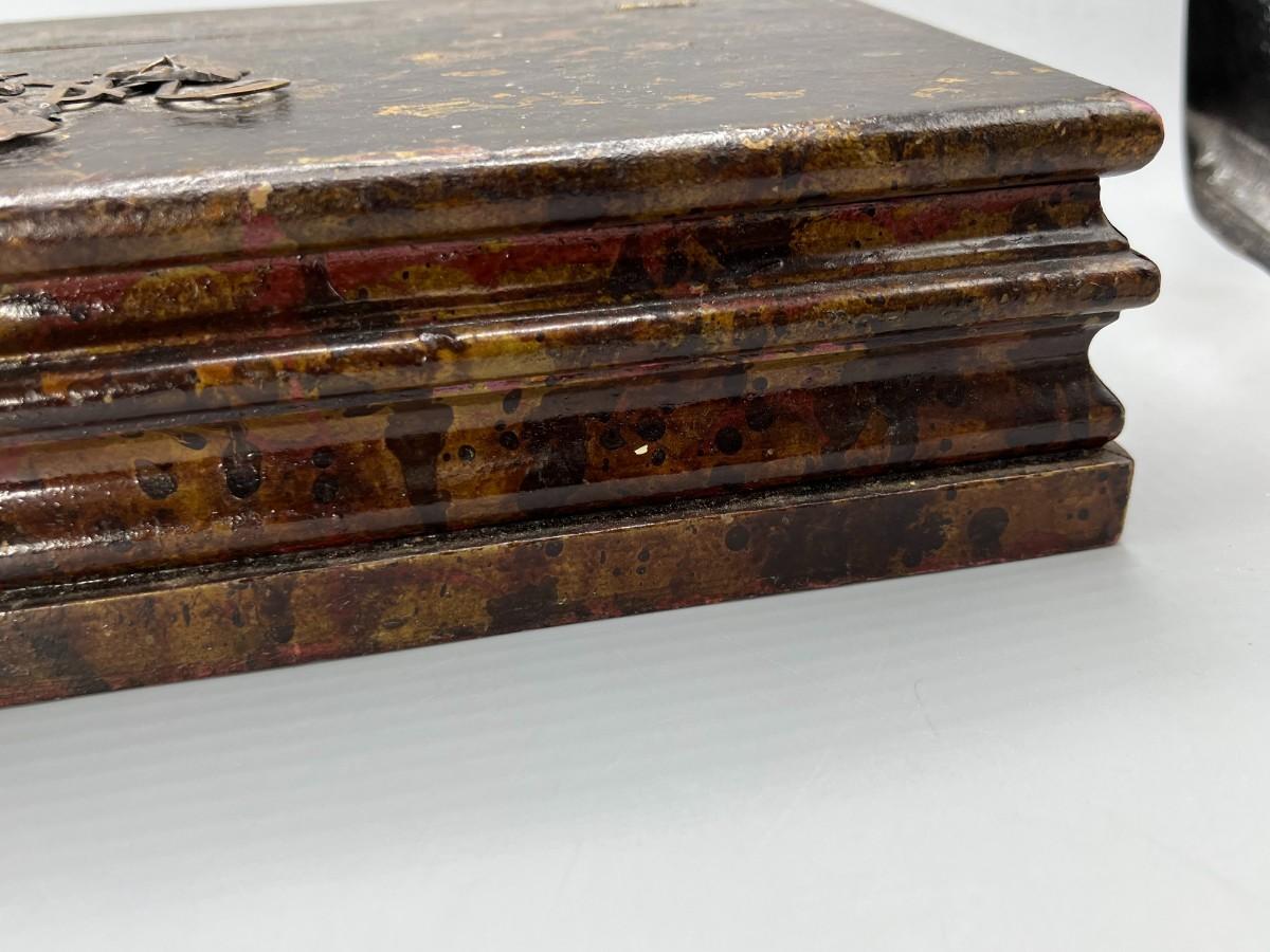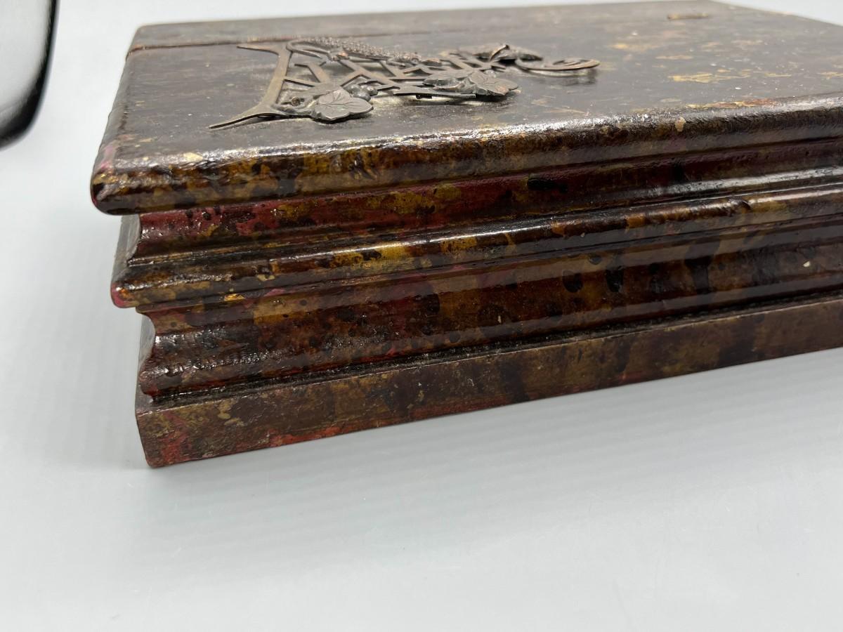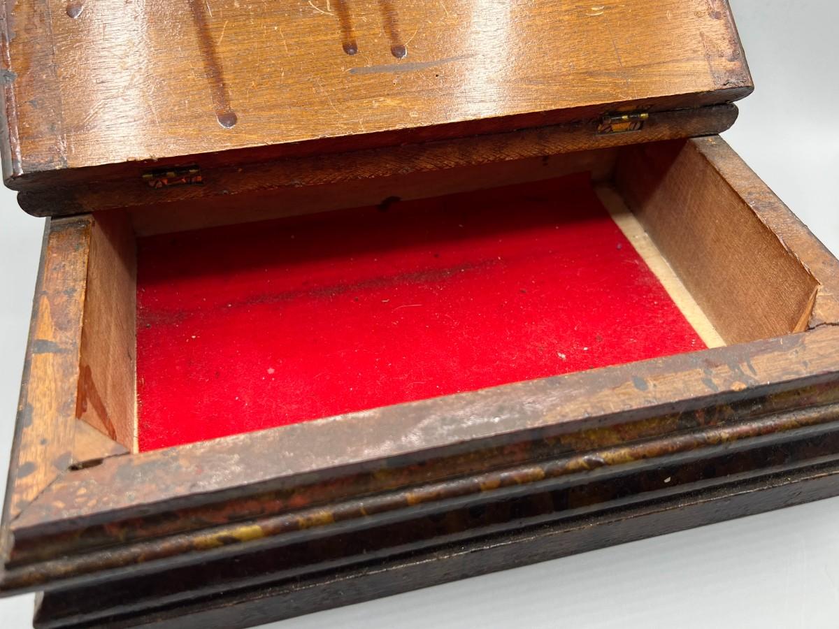 Vintage Art Deco Wooden Metal Insignia Jewelry Box