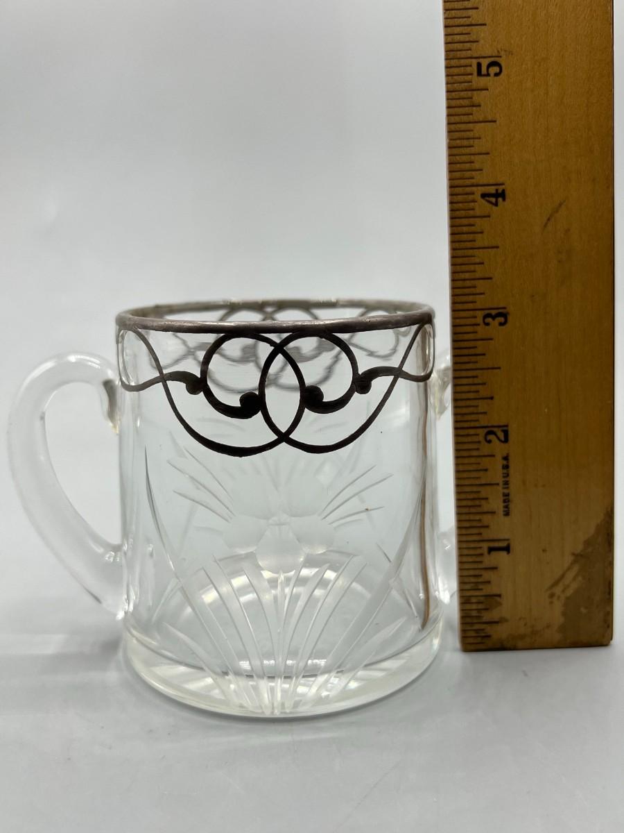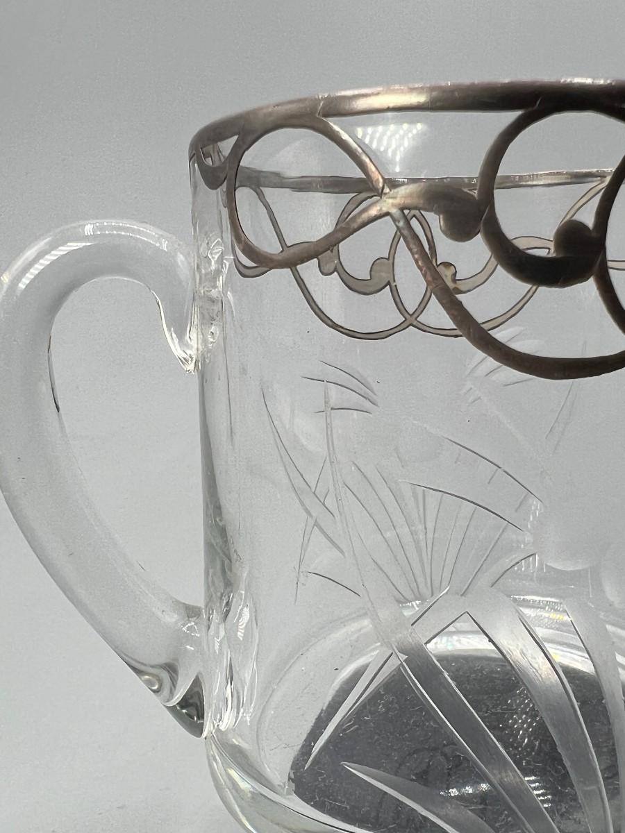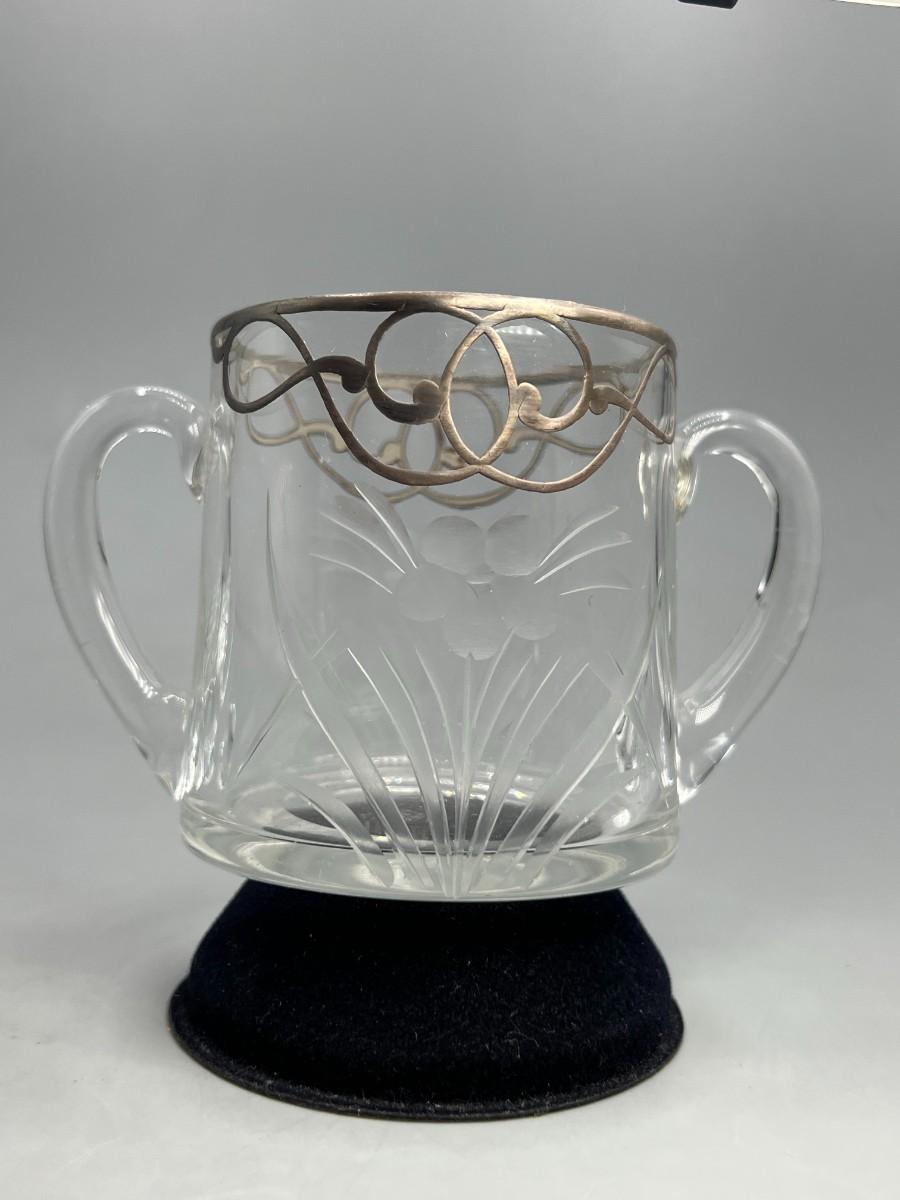 Retro Art Nouveau Scrollwork Flower Motif Handled Glassware