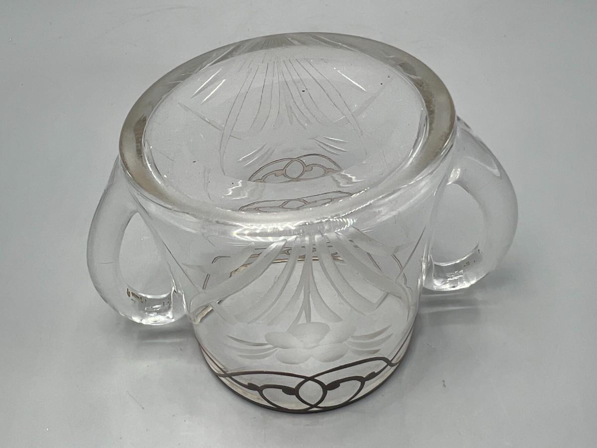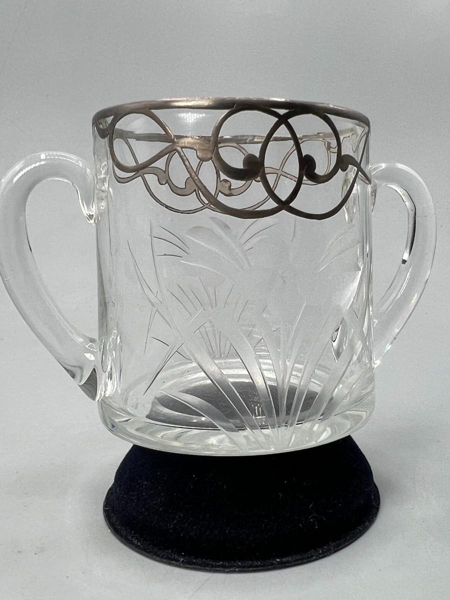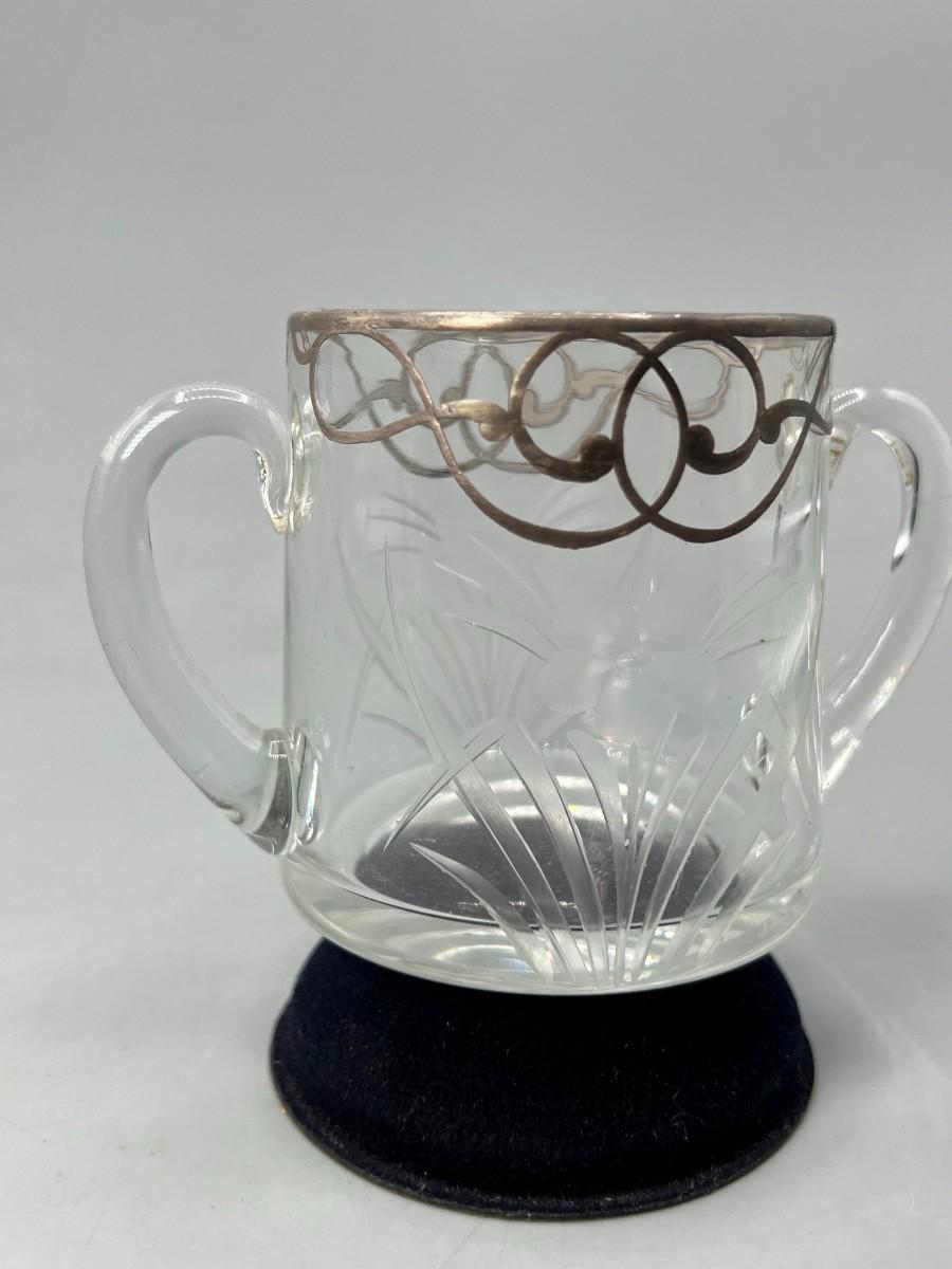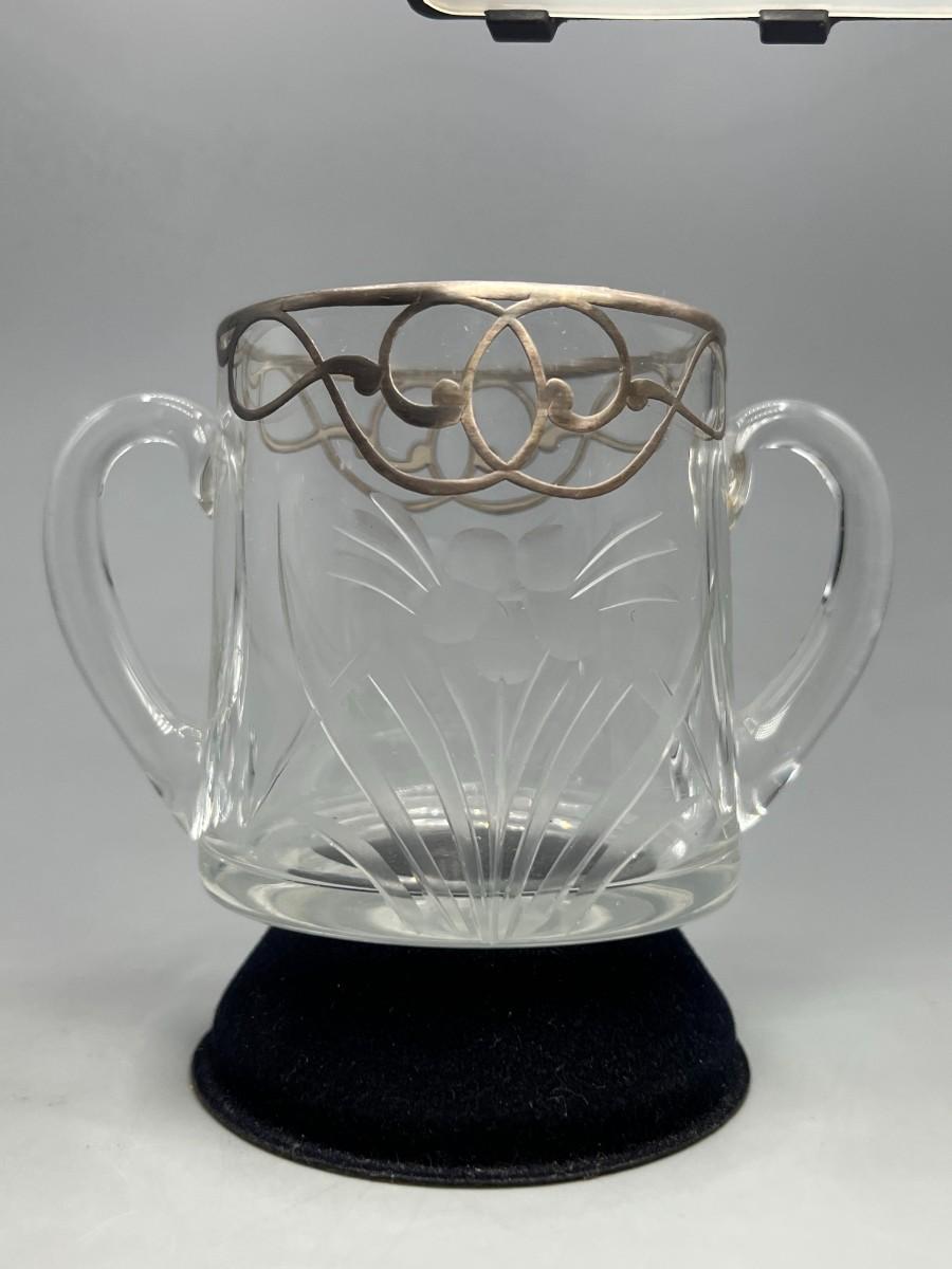 Retro Art Nouveau Scrollwork Flower Motif Handled Glassware